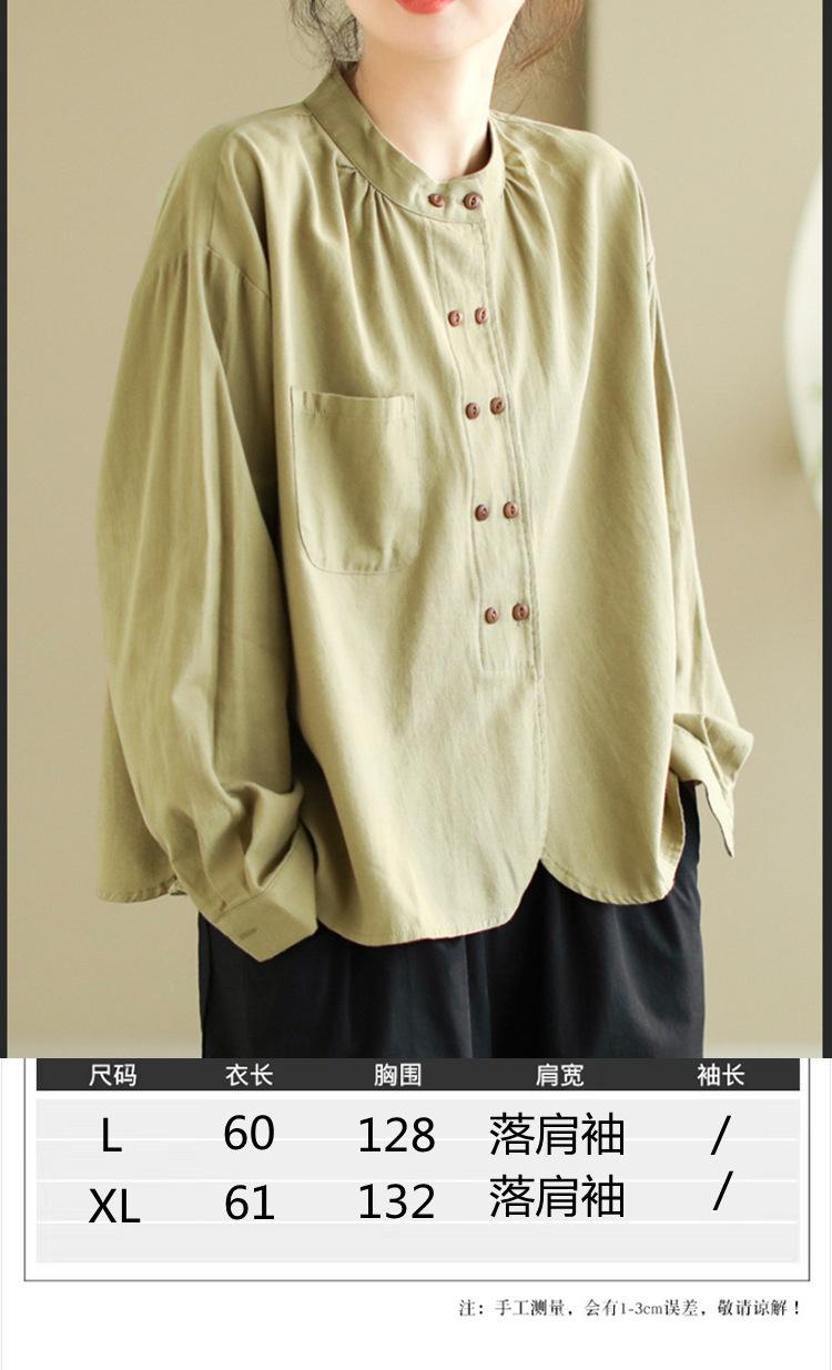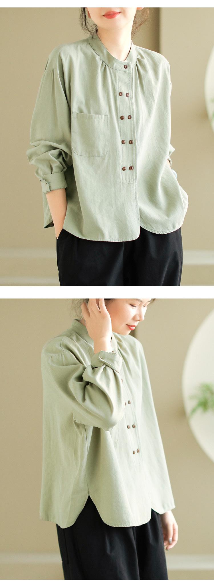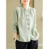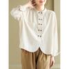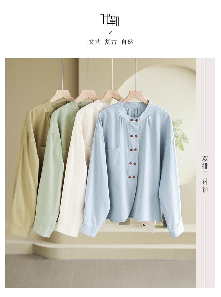 2025 Principios de Otoño Nuevo Color Sólido Doble Botonadura Nuevo Chino Reductor de Edad Todo Algodón Literario Versátil Camisa de Manga Larga para Mujer