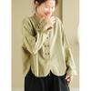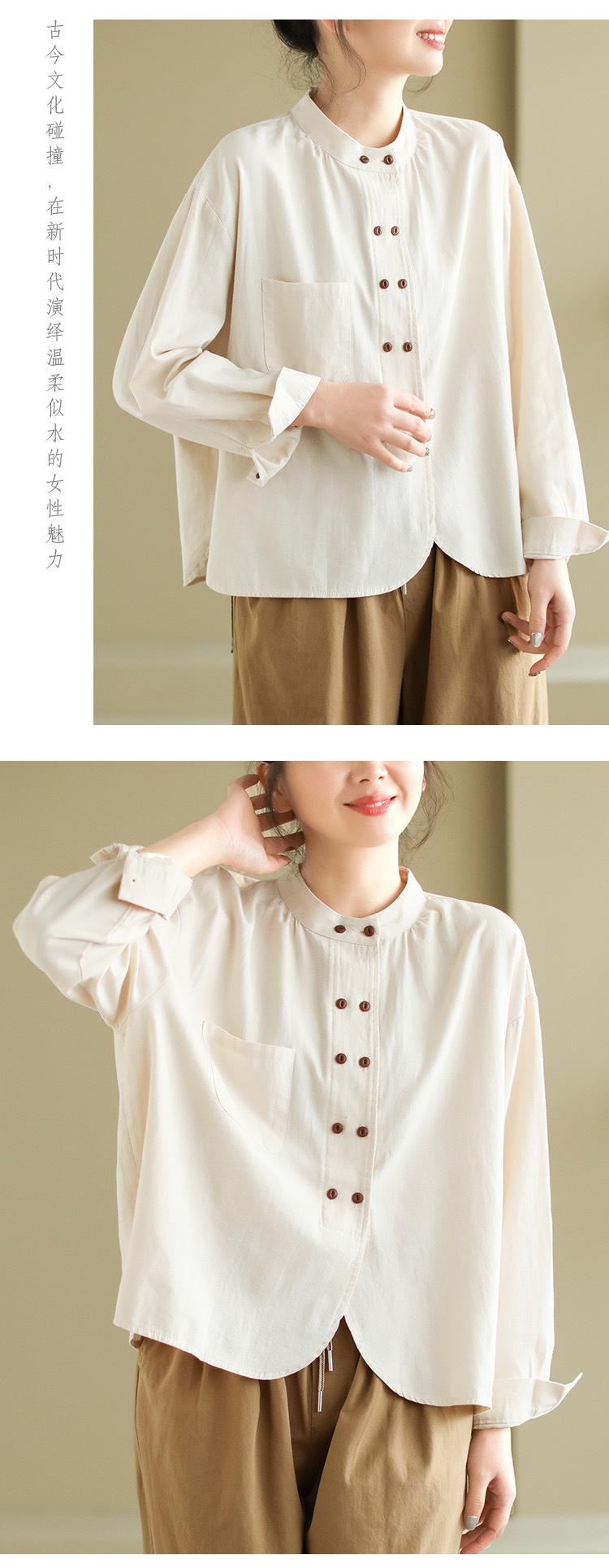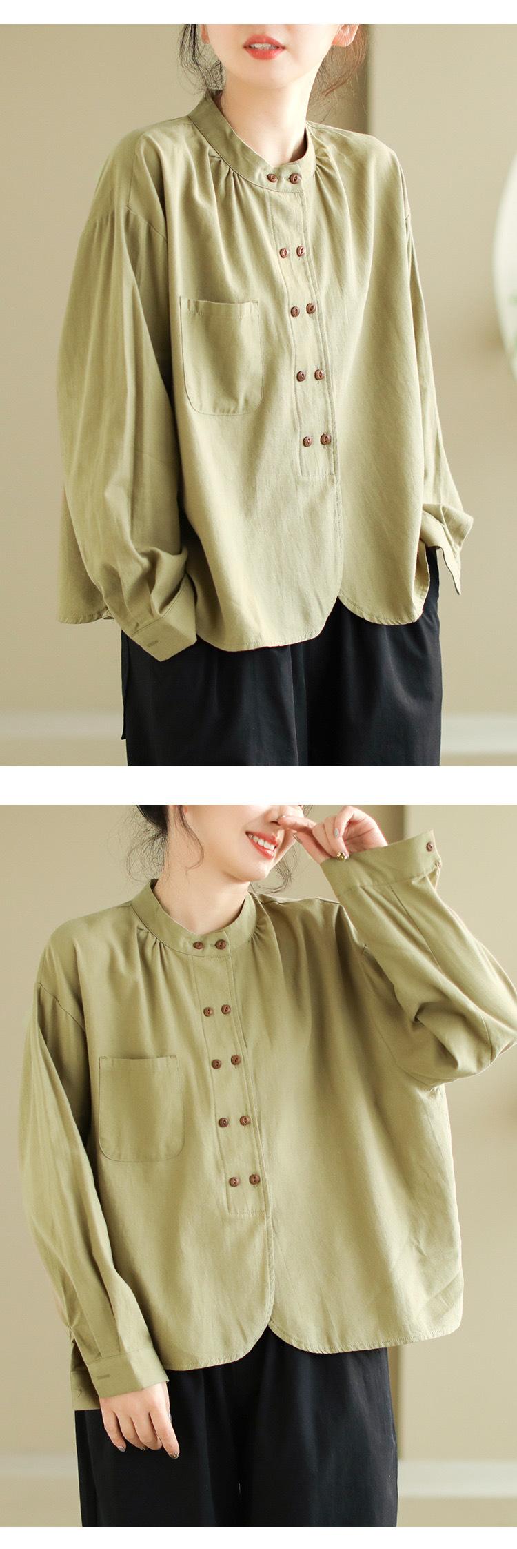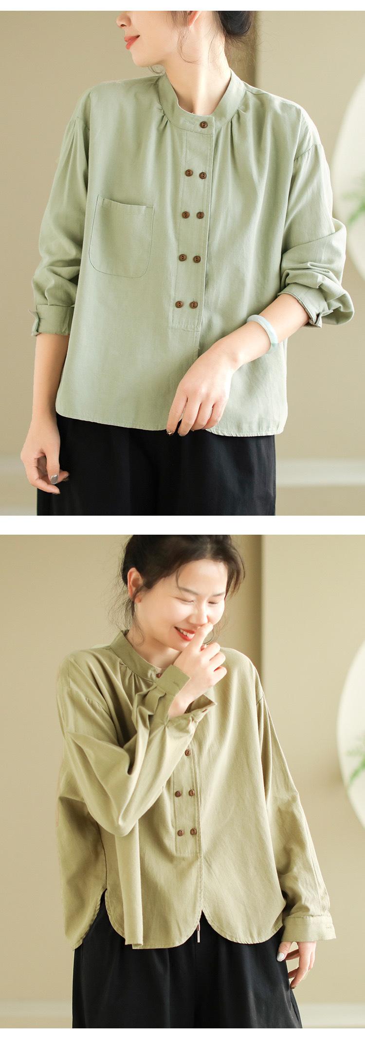 2025 Principios de Otoño Nuevo Color Sólido Doble Botonadura Nuevo Chino Reductor de Edad Todo Algodón Literario Versátil Camisa de Manga Larga para Mujer
