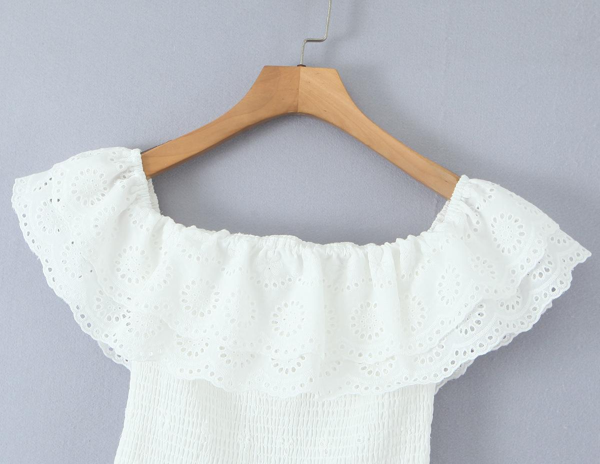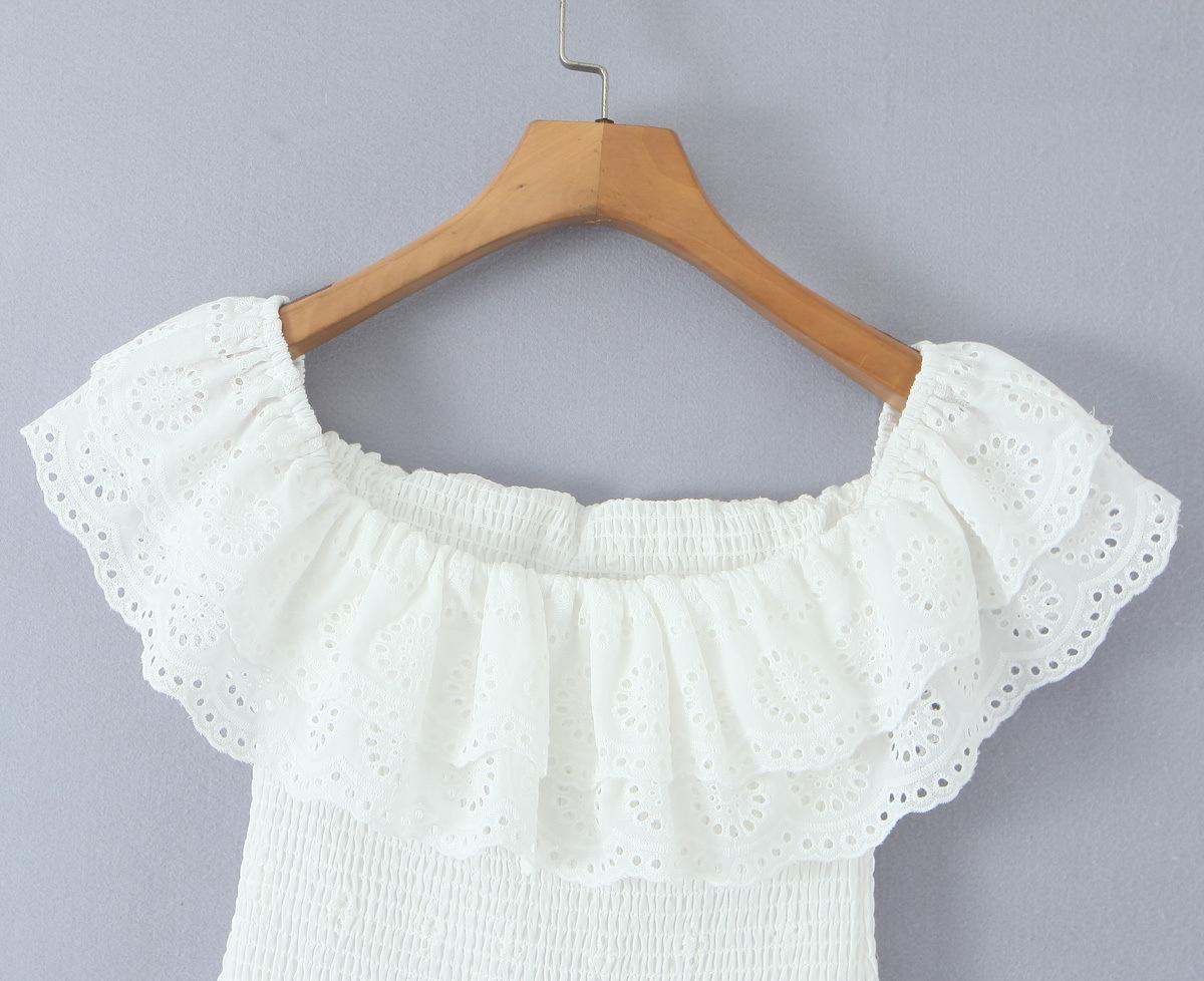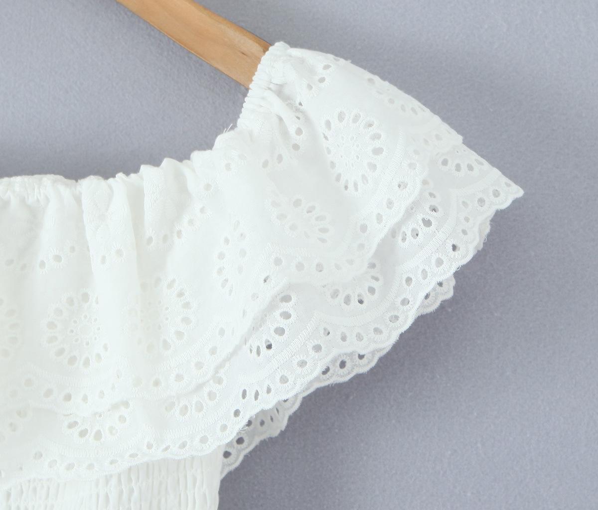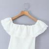 Ropa de Mujer de Comercio Exterior Transfronterizo 2025 Otoño Estilo Europeo y Americano Adorno de Encaje Hombro Descubierto Sin Mangas Corto Abullonado D79783