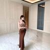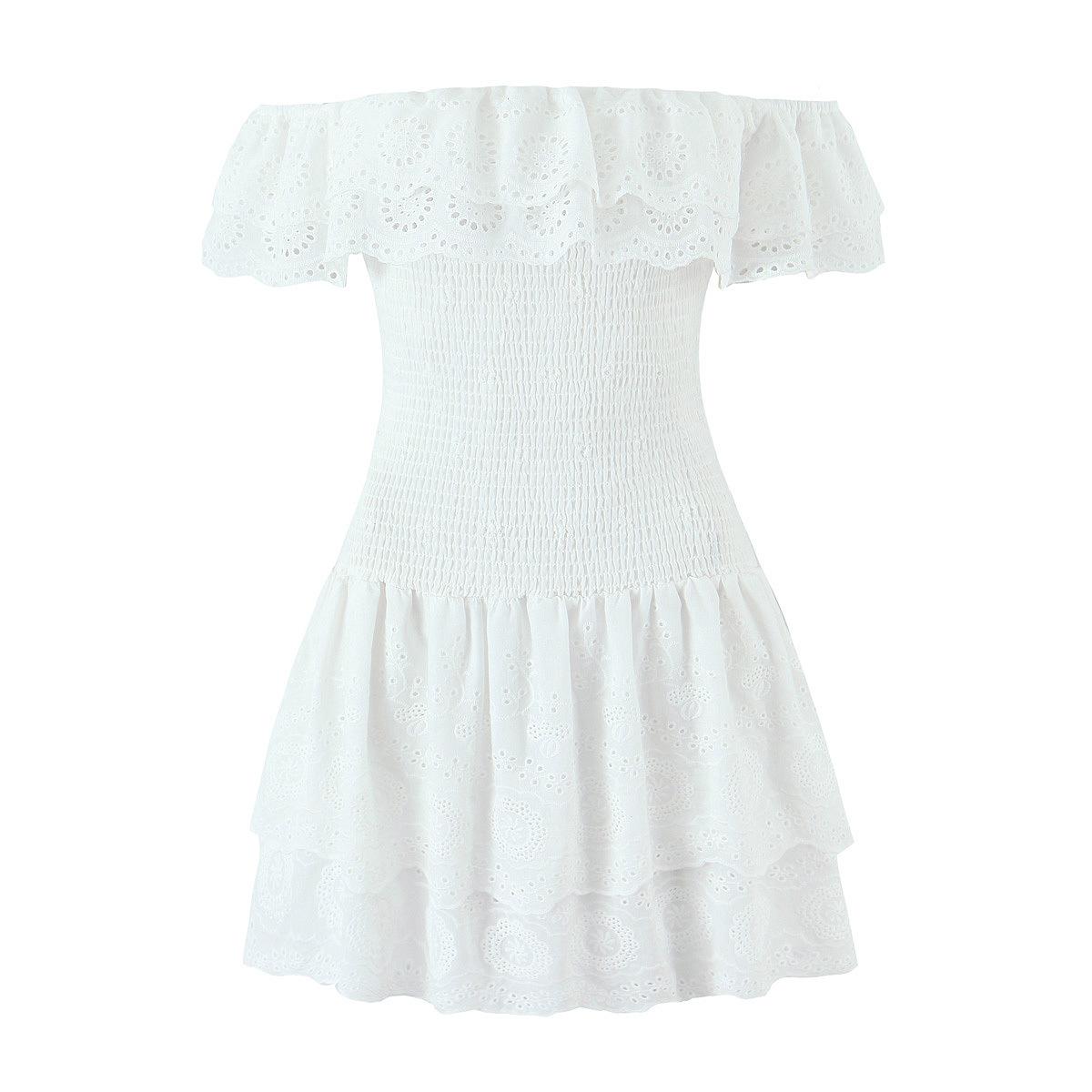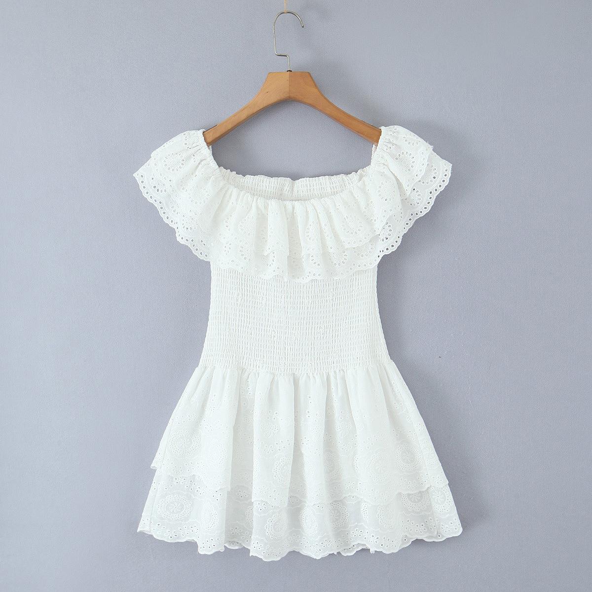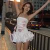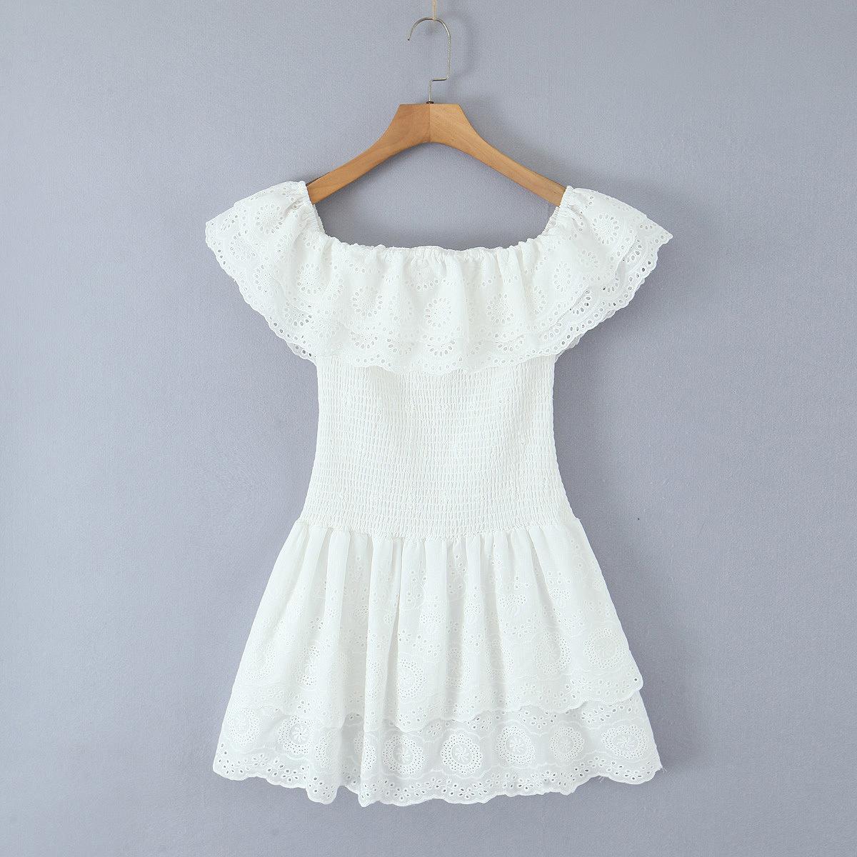 Ropa de Mujer de Comercio Exterior Transfronterizo 2025 Otoño Estilo Europeo y Americano Adorno de Encaje Hombro Descubierto Sin Mangas Corto Abullonado D79783