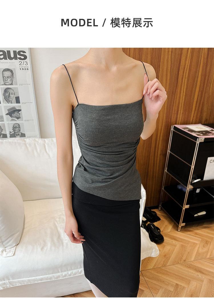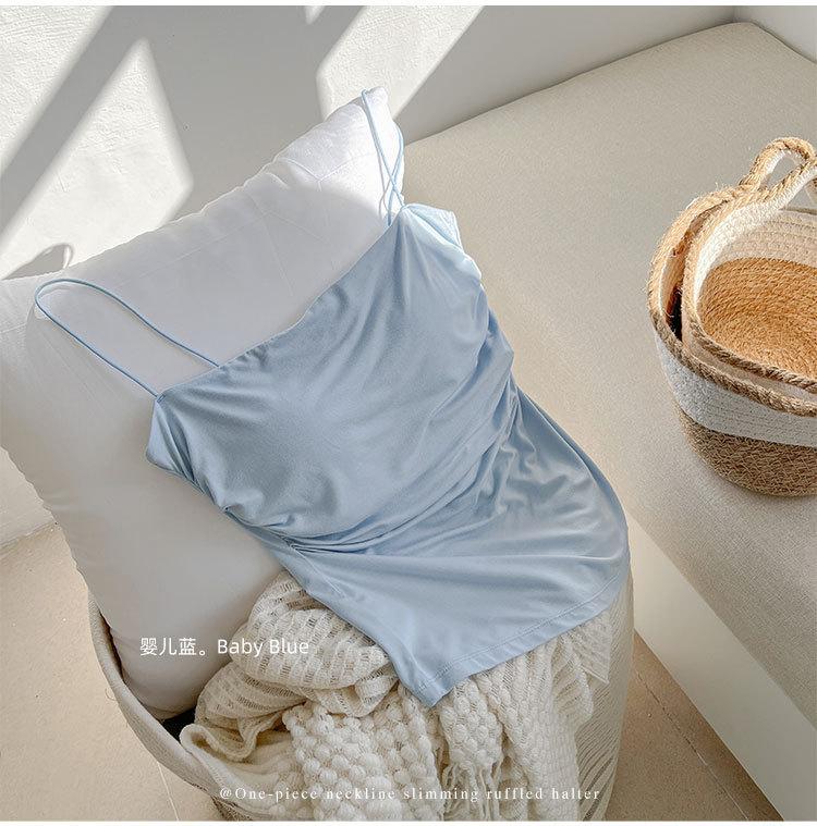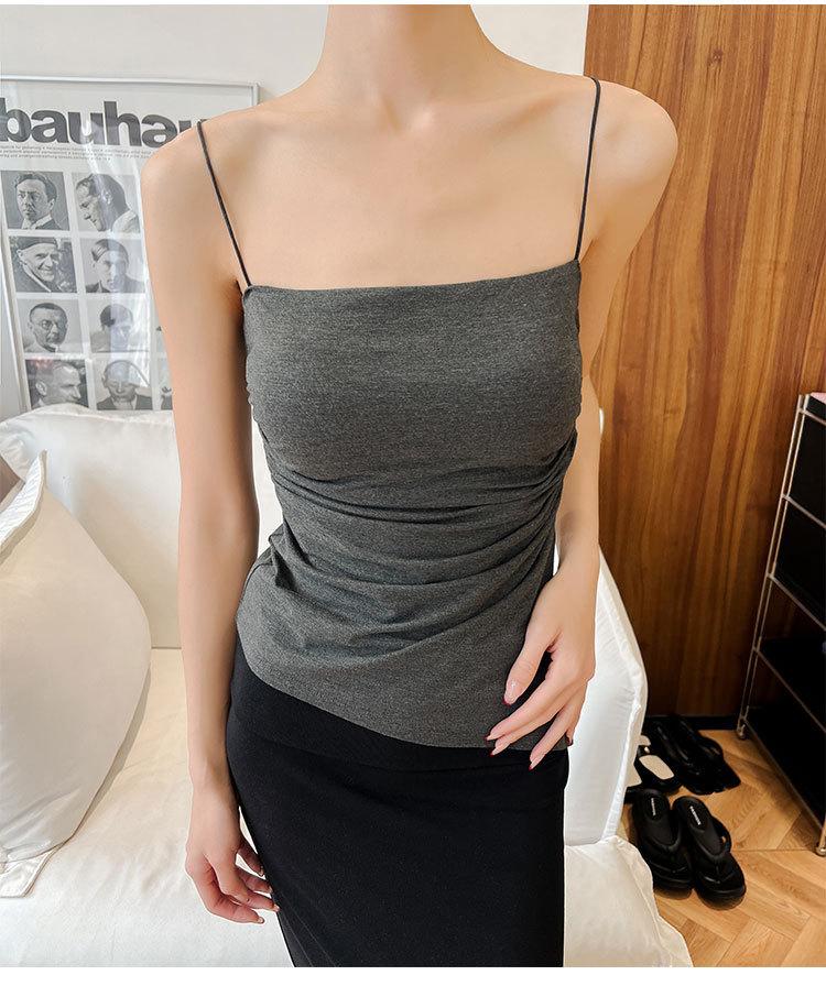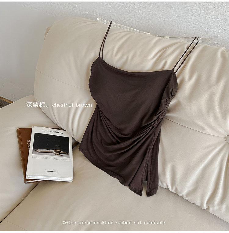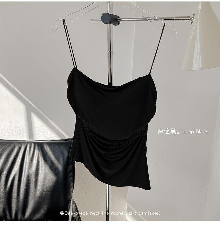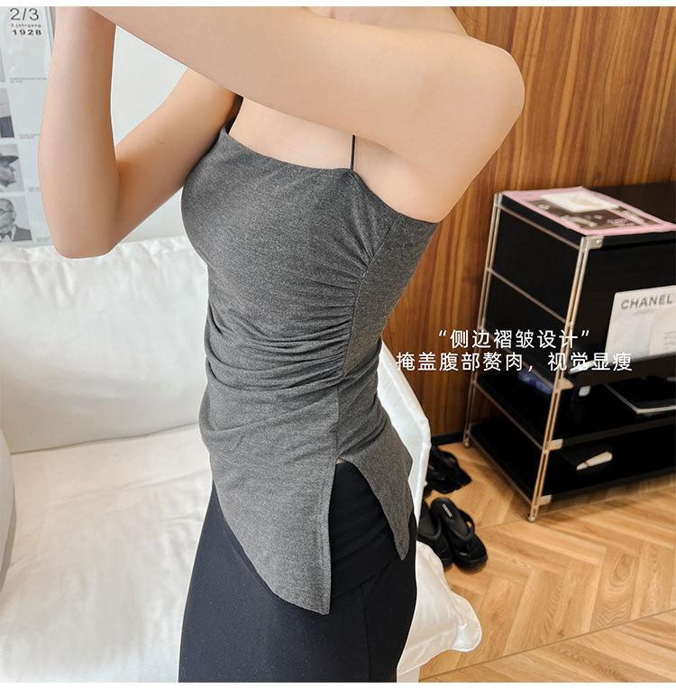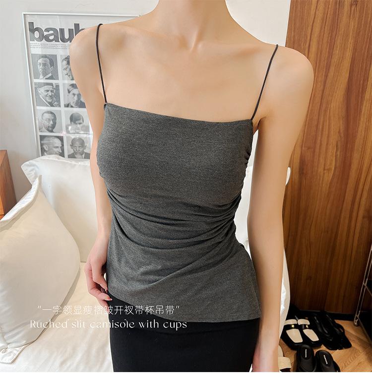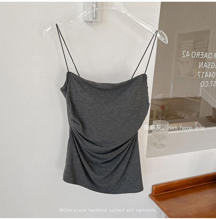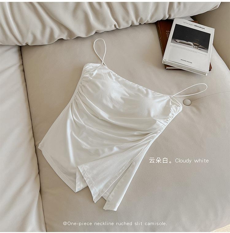 Camisola Estilo Deseo Puro para Mujer Primavera y Verano 2025 Ropa Exterior con Almohadilla en el Pecho Hermoso Diseño de Espalda con Sentido Arrugado Sin Mangas Top Básico