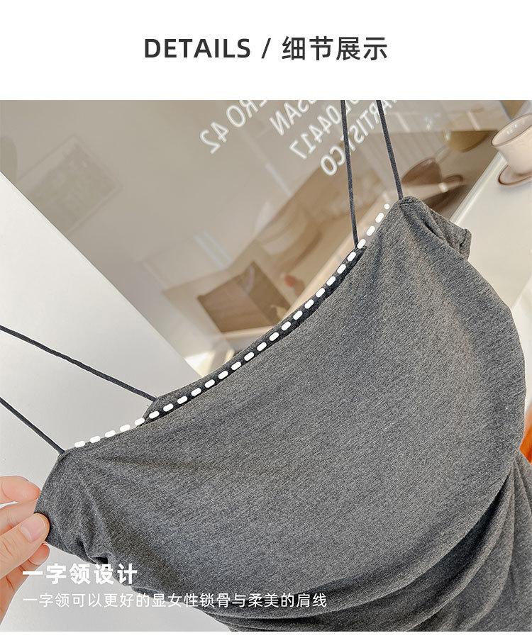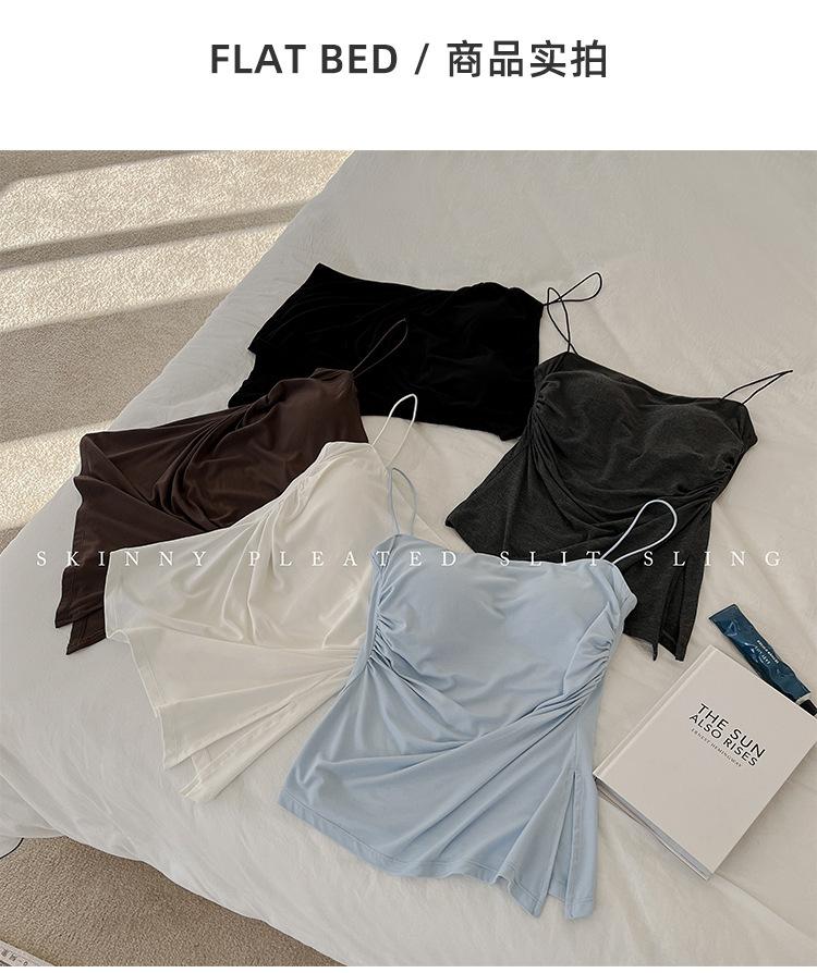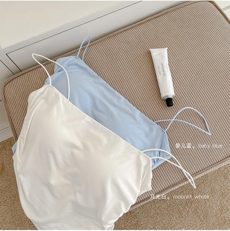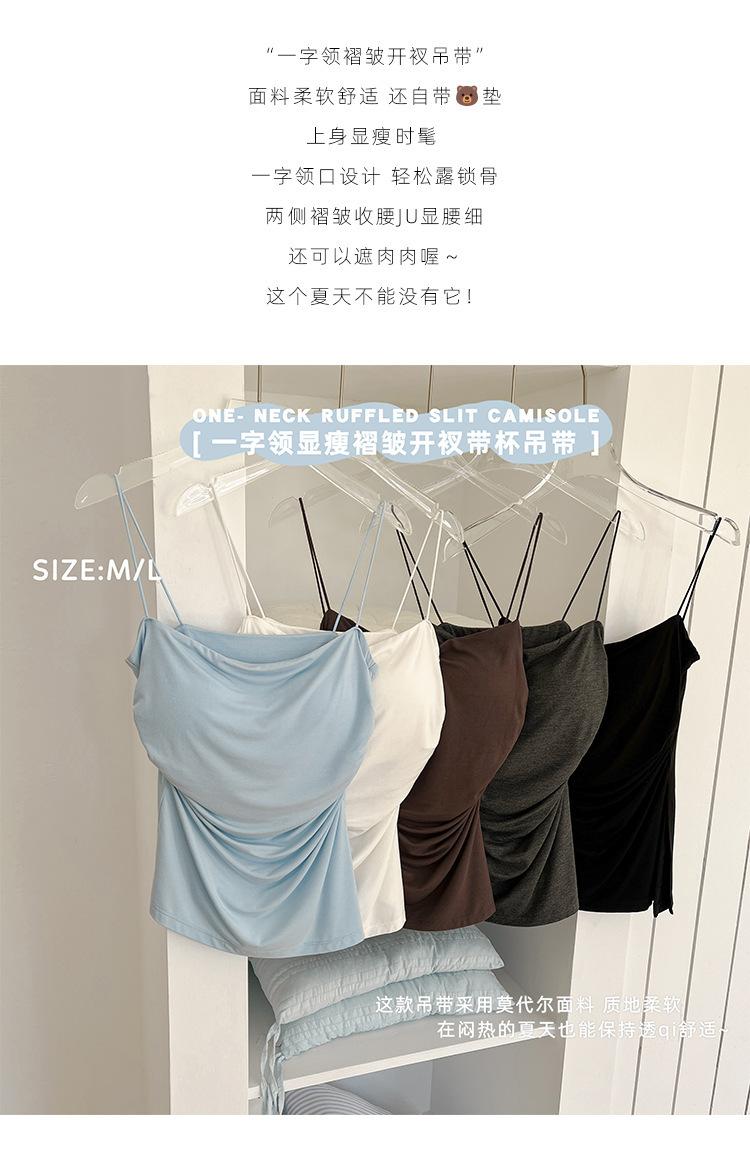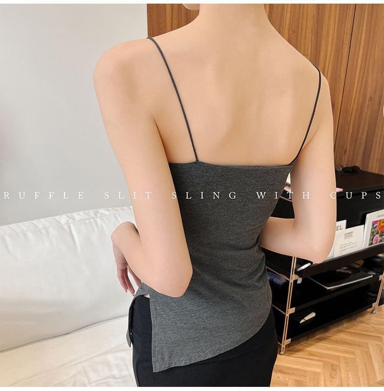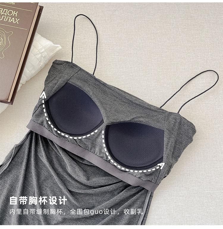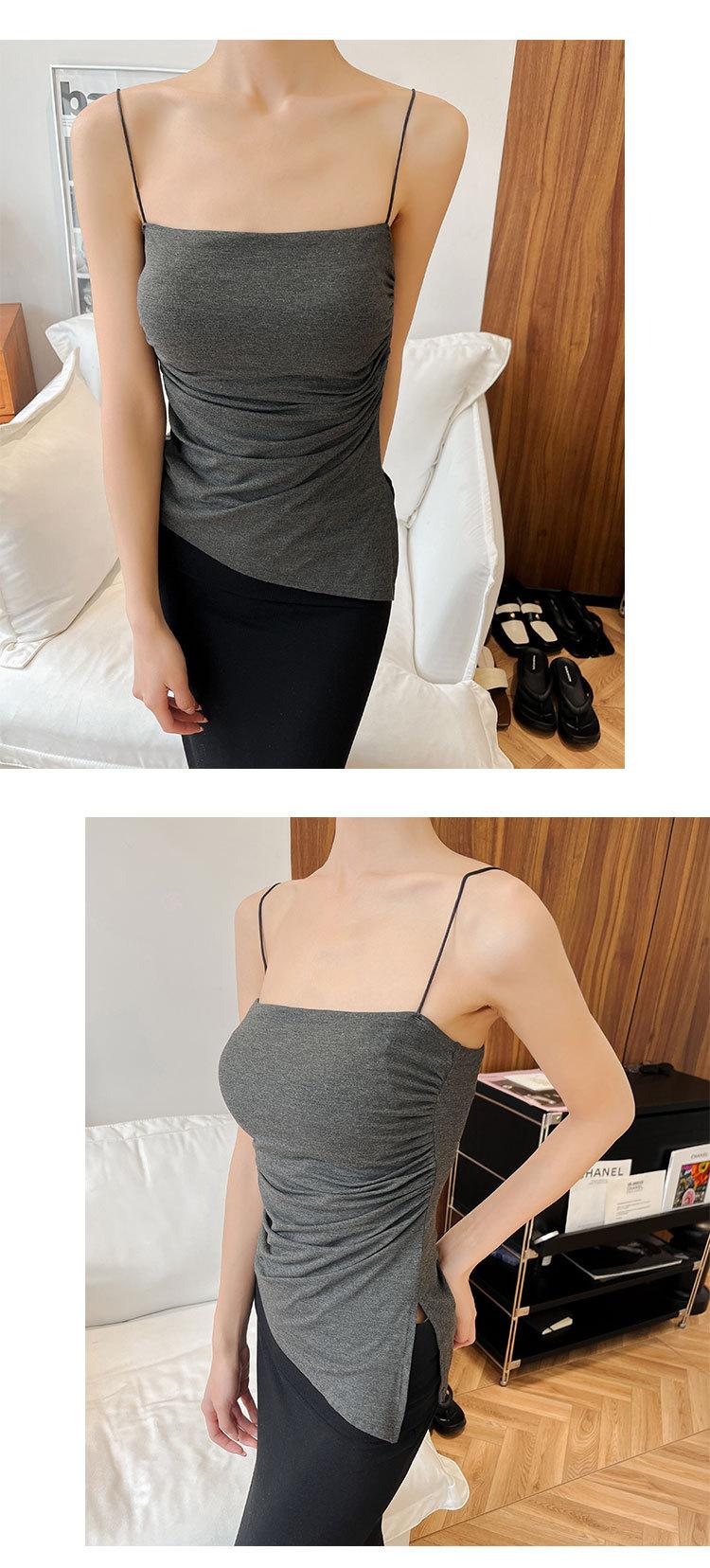 Camisola Estilo Deseo Puro para Mujer Primavera y Verano 2025 Ropa Exterior con Almohadilla en el Pecho Hermoso Diseño de Espalda con Sentido Arrugado Sin Mangas Top Básico