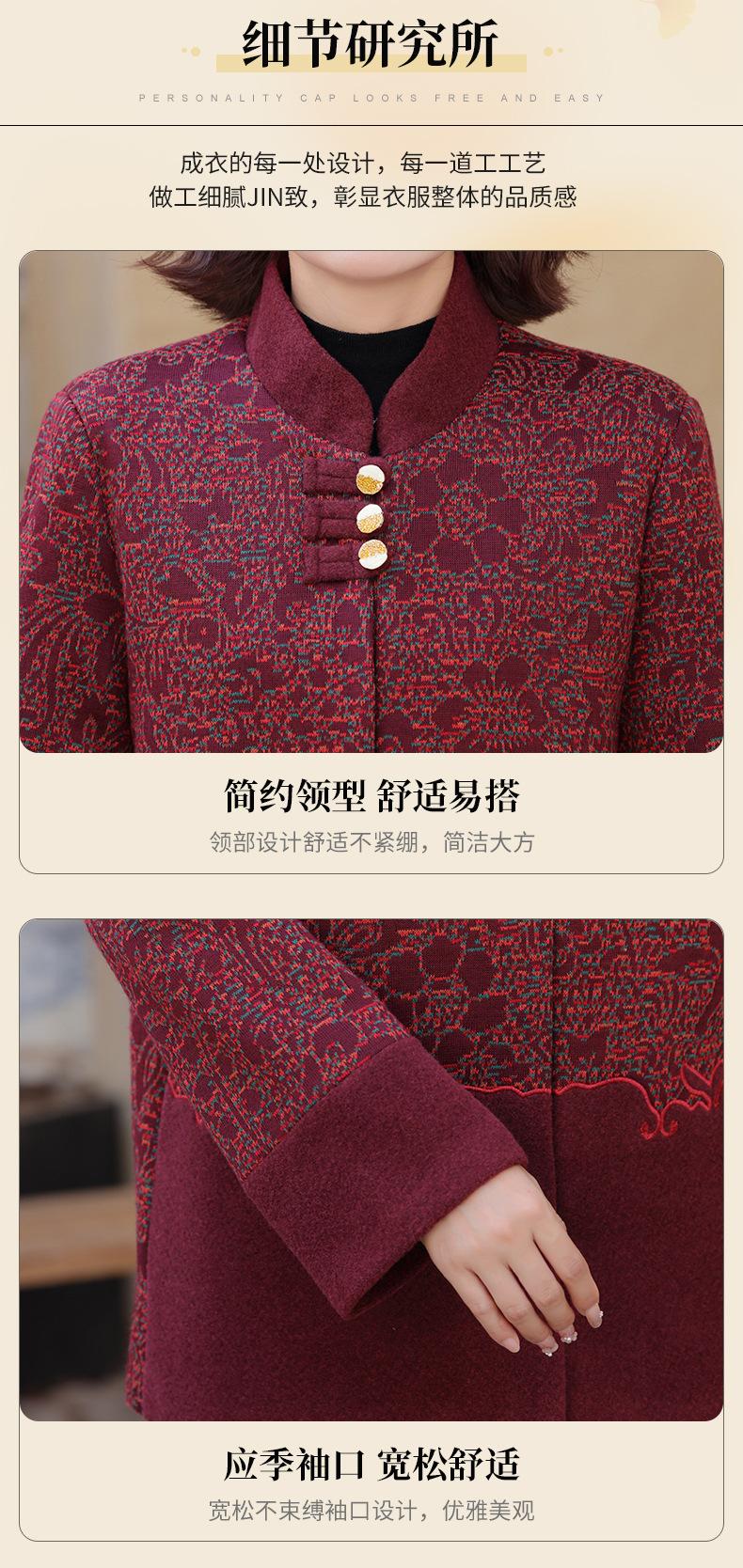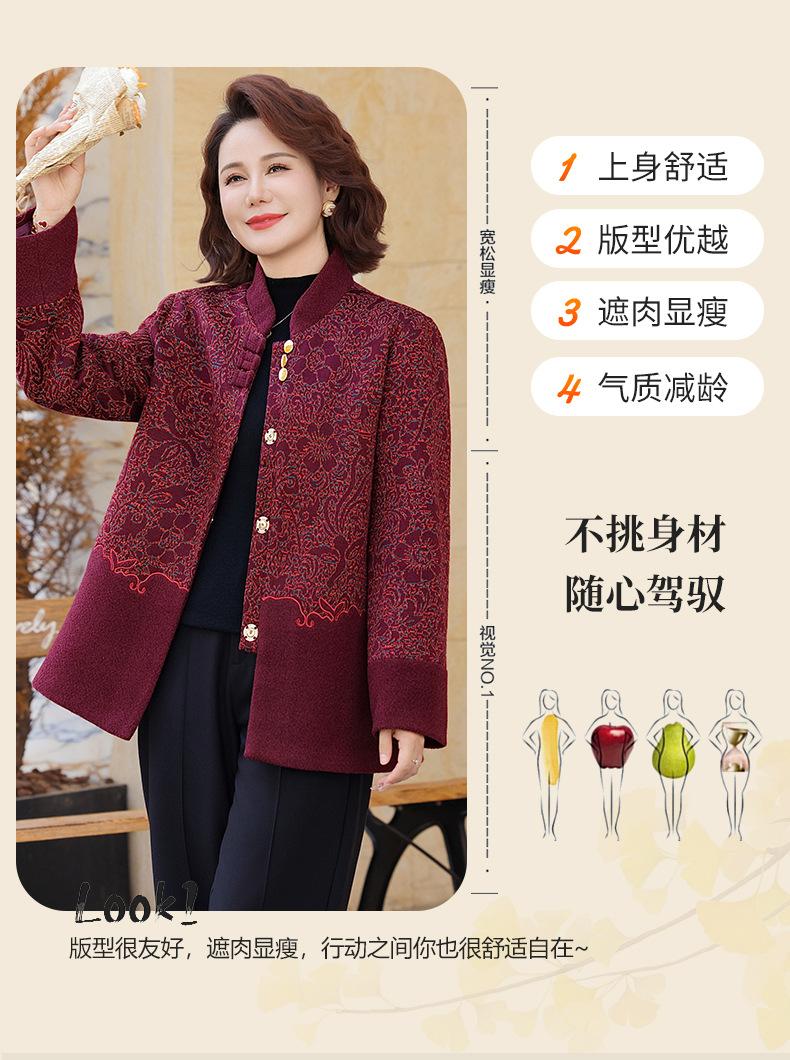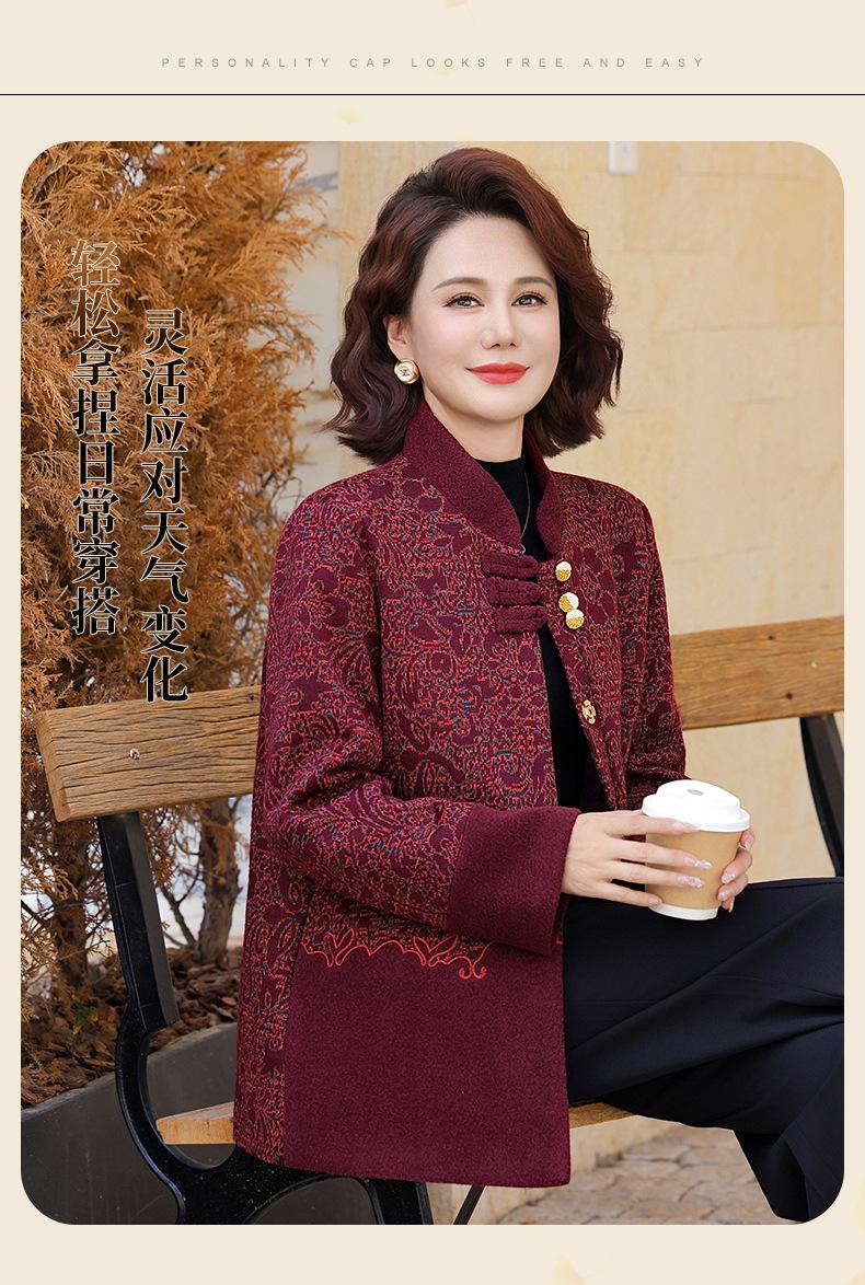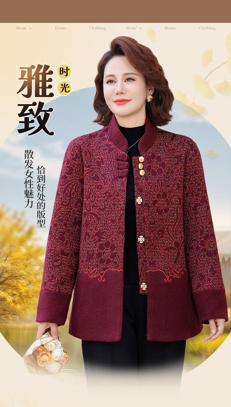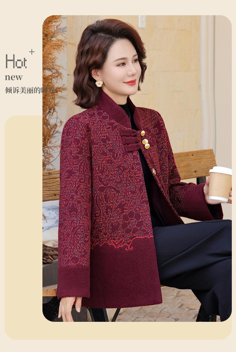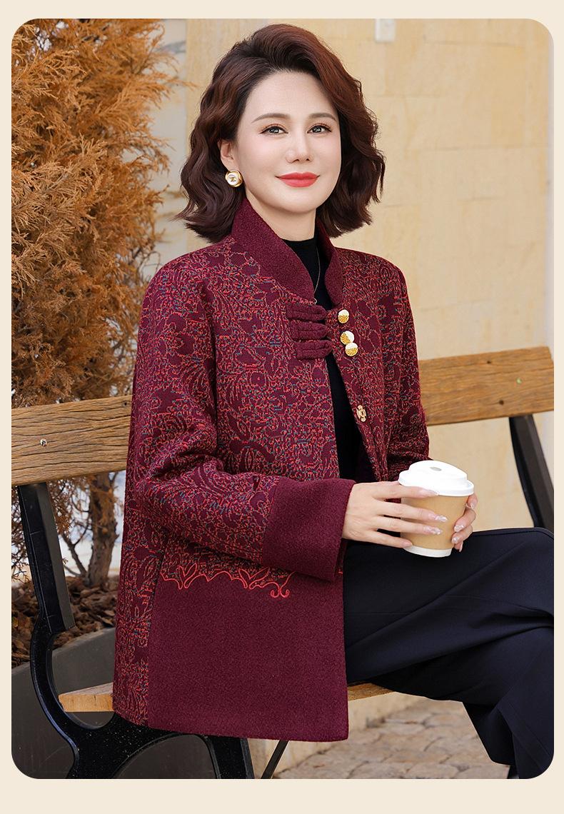 Moda para mamá de mediana edad abrigo de lana elegante para mujer 2025 otoño e invierno nuevo estilo mediana edad y ancianos nuevo estilo chino abrigo de lana