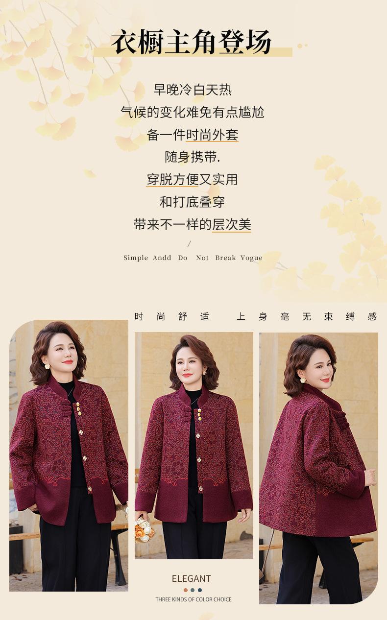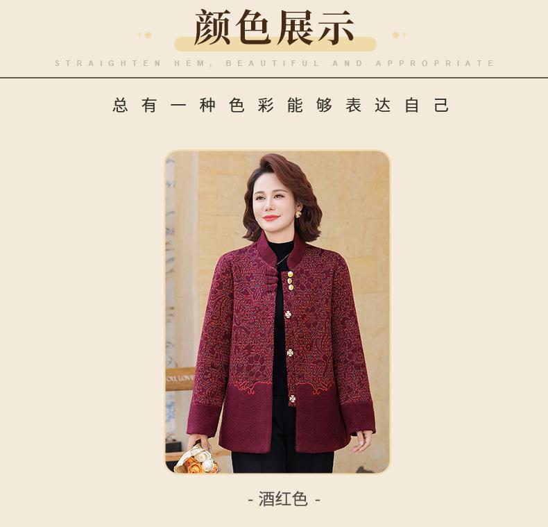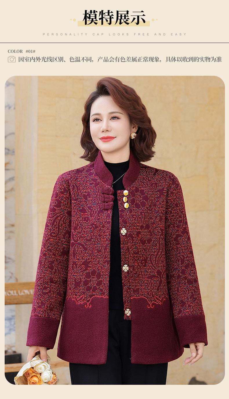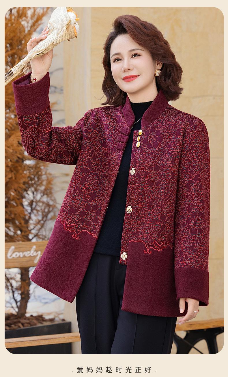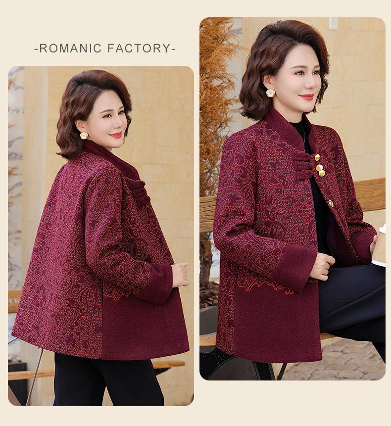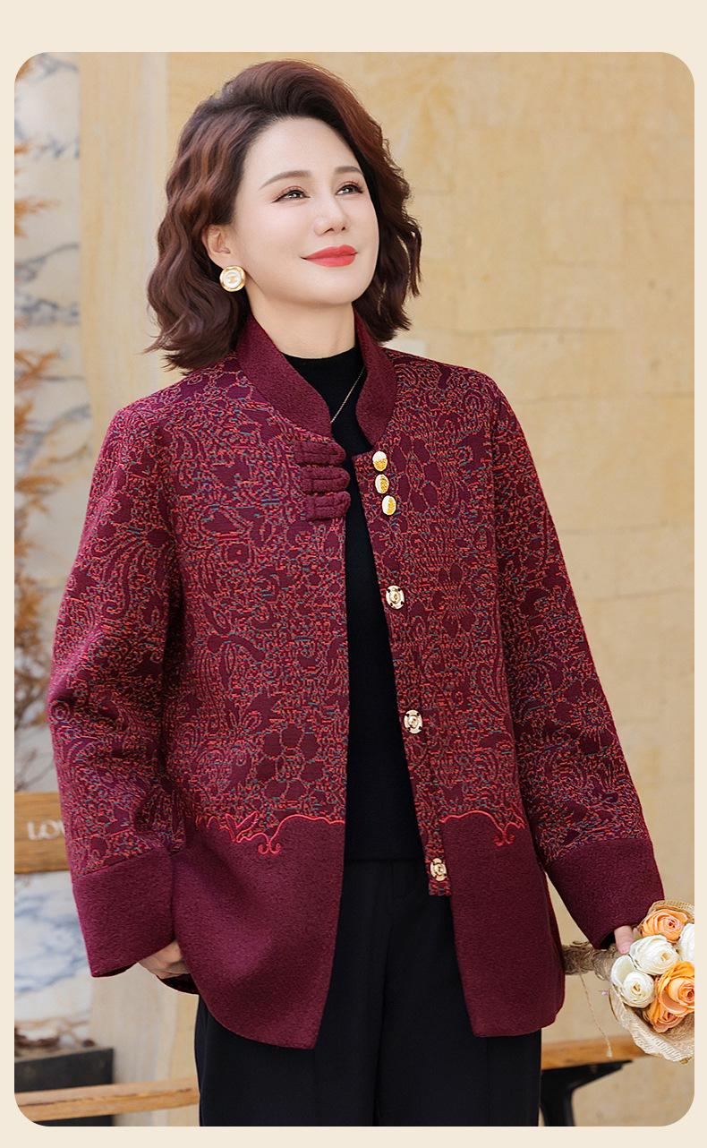 Moda para mamá de mediana edad abrigo de lana elegante para mujer 2025 otoño e invierno nuevo estilo mediana edad y ancianos nuevo estilo chino abrigo de lana