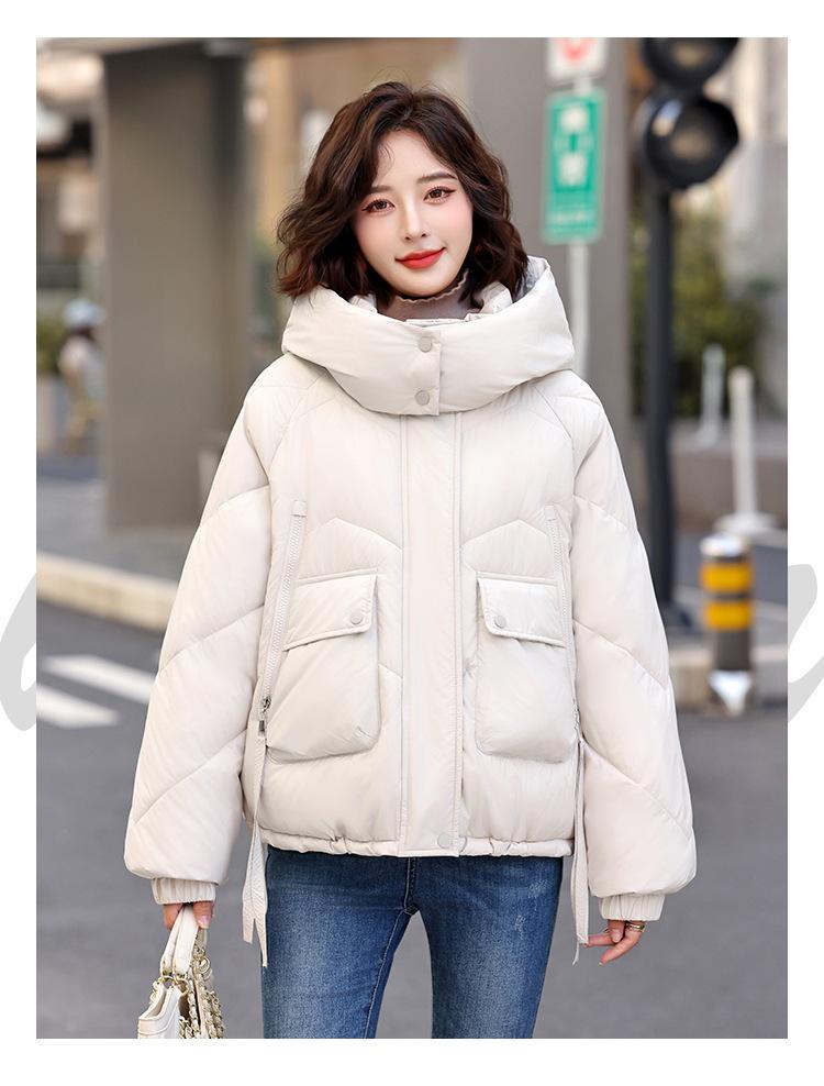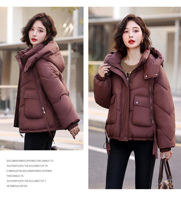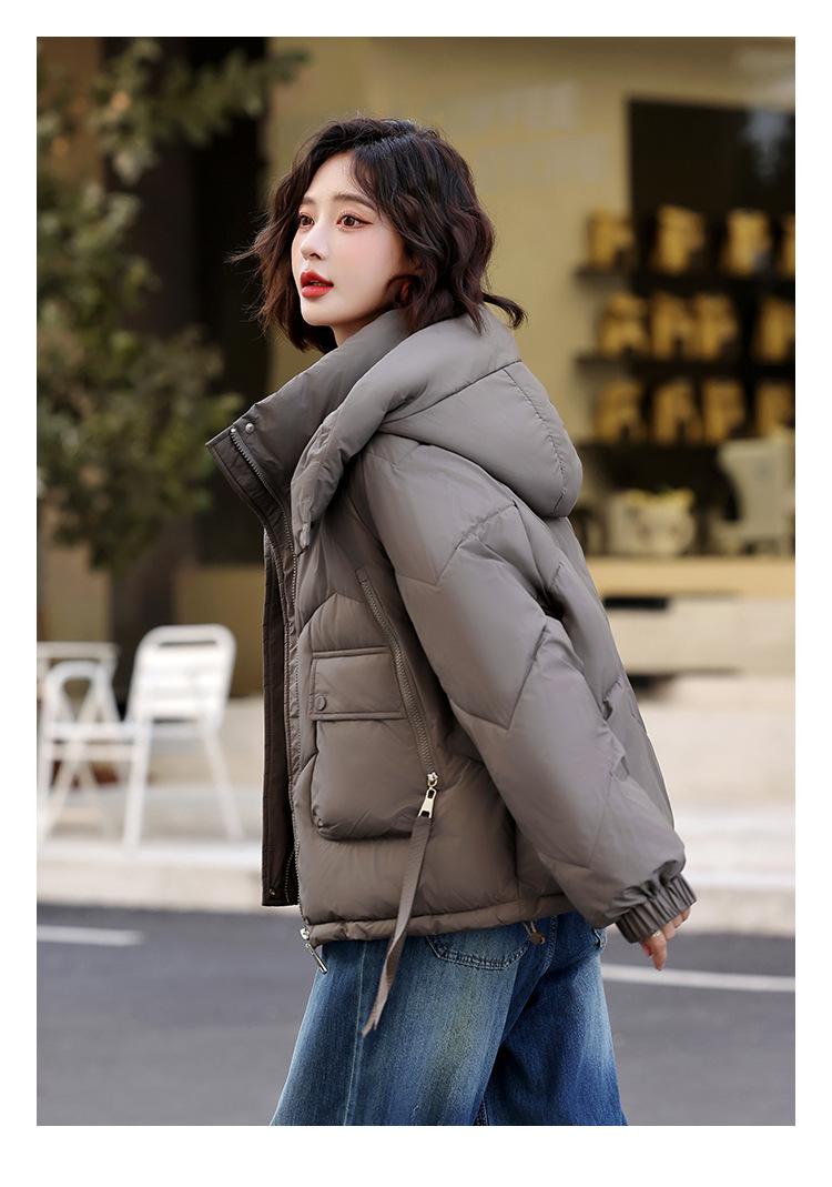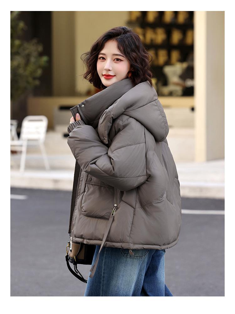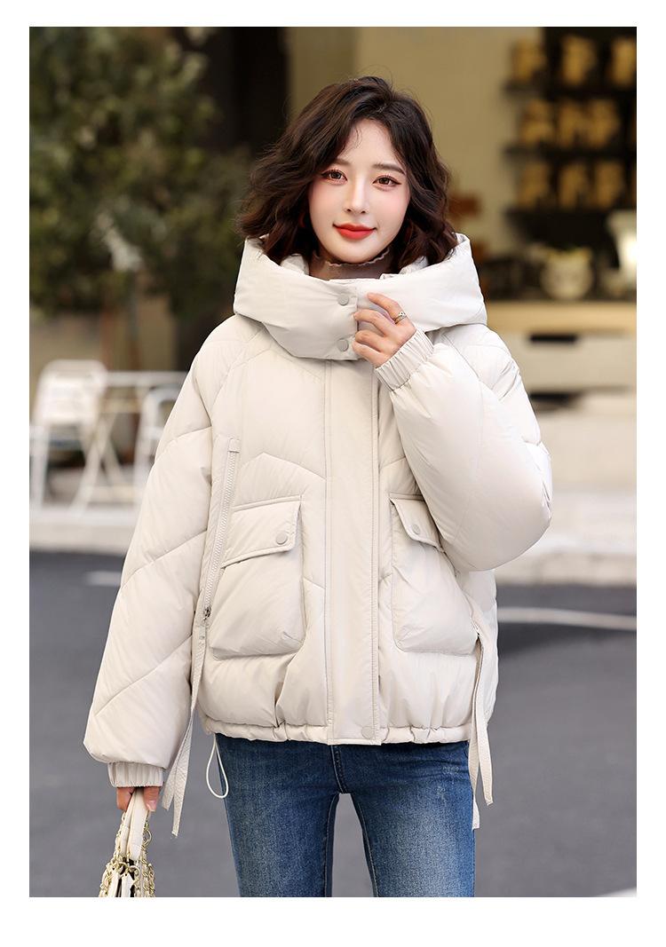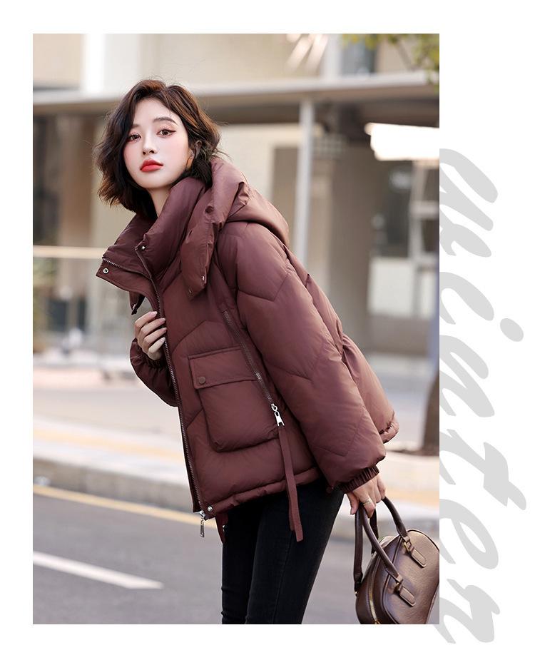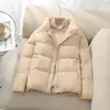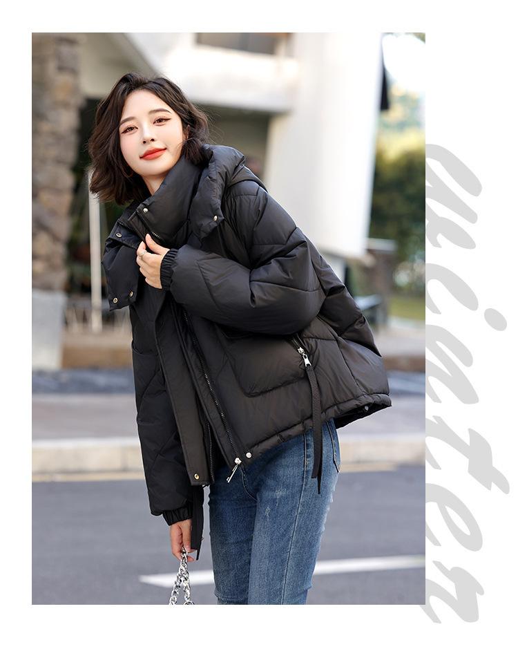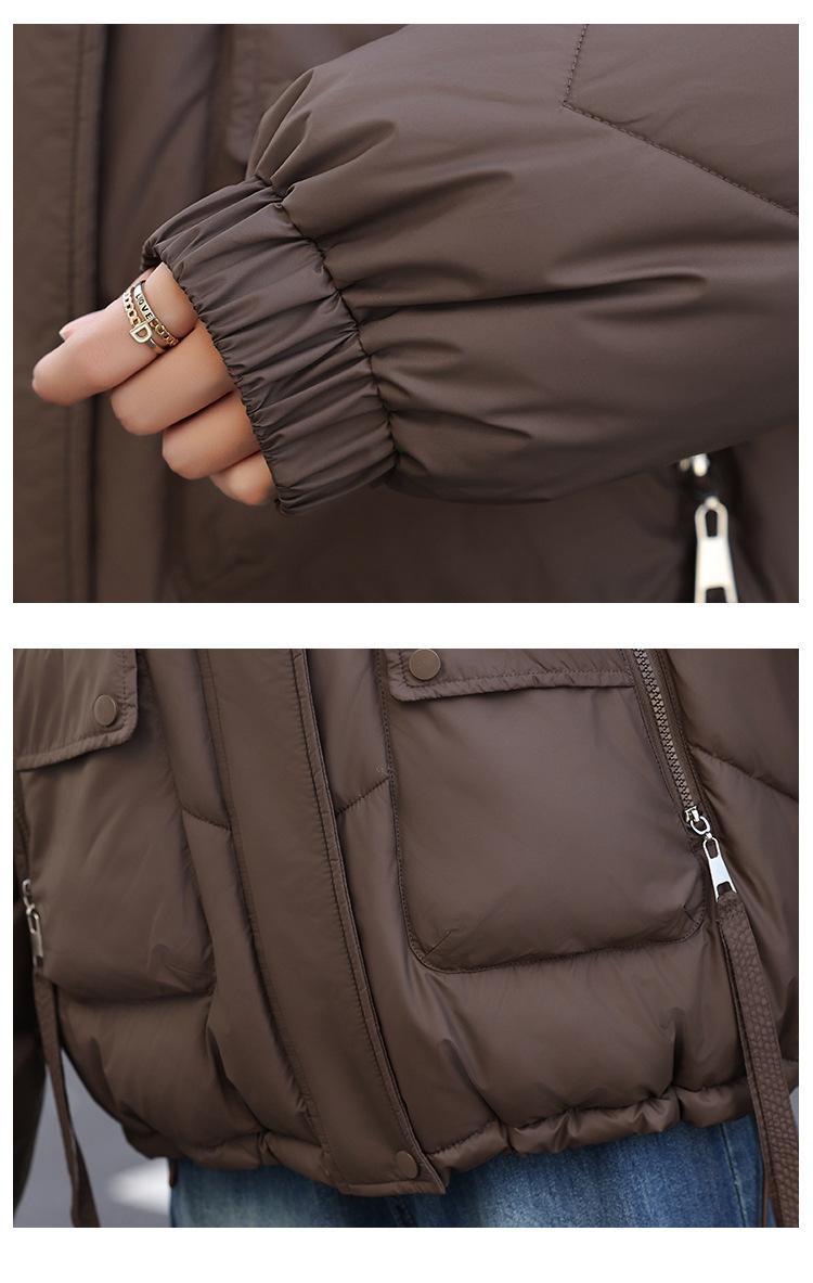 Abrigo de Algodón Plumón Super Caliente para Mujer Nuevo Diseño Creativo de Doble Bolsillo con Cierre Lateral Color Sólido Moda Nicho Versátil Chaqueta de Algodón Holgada