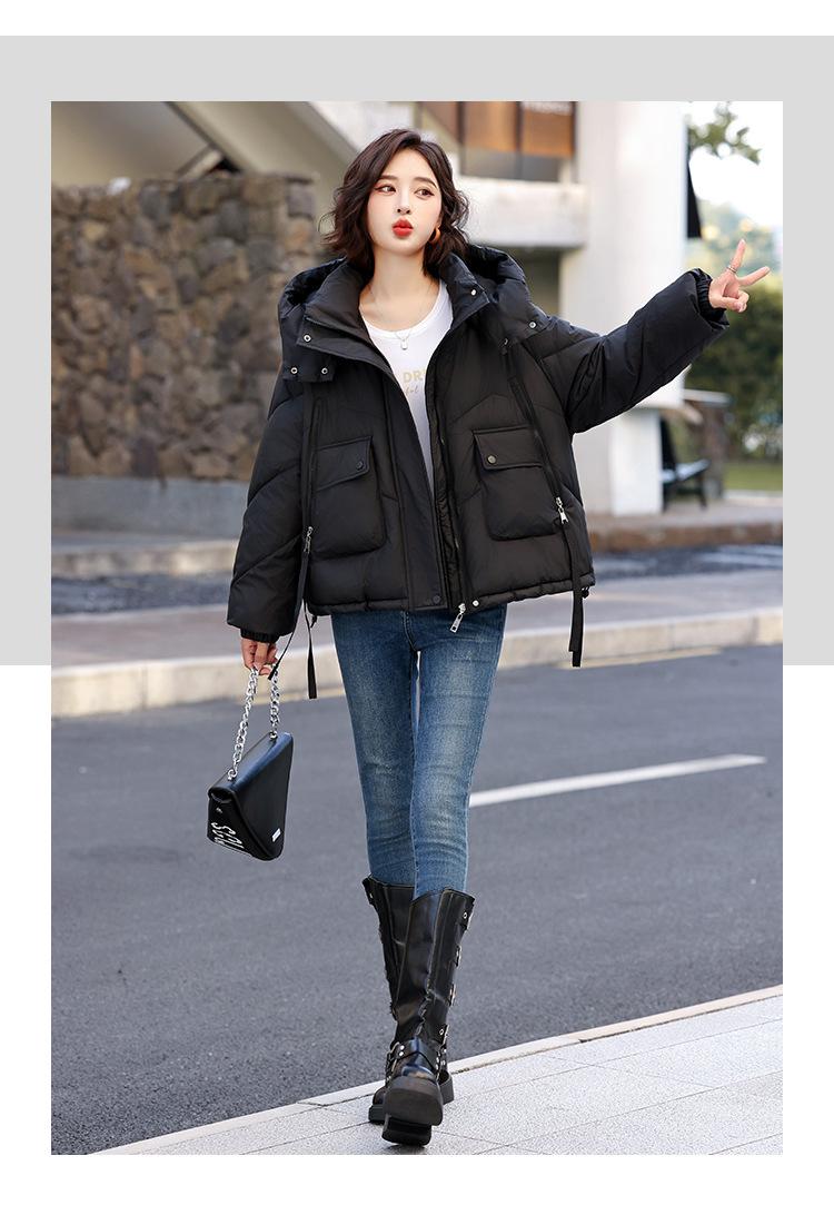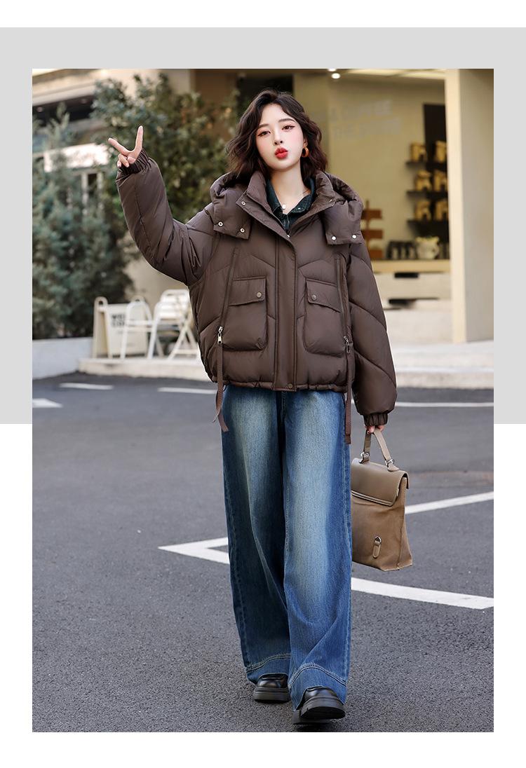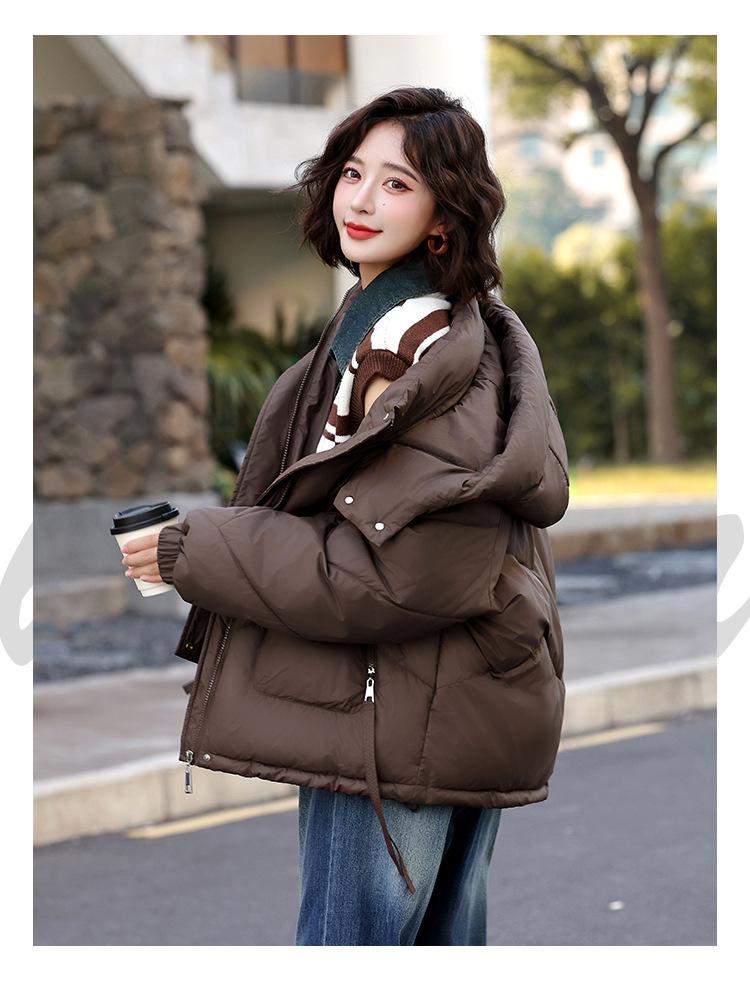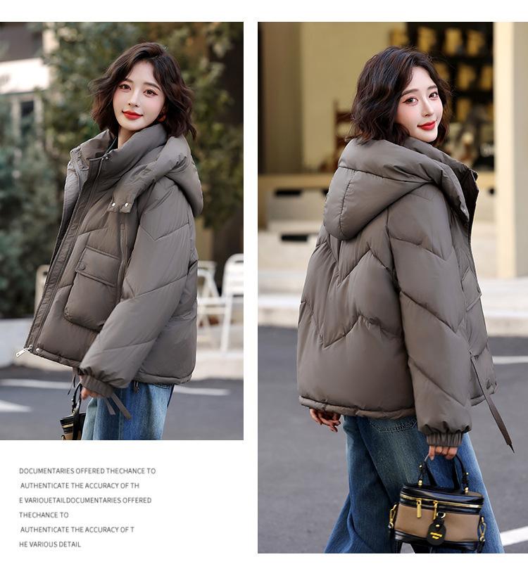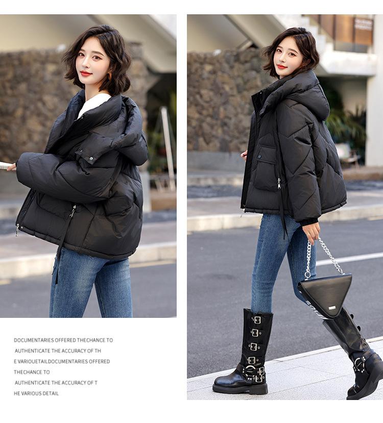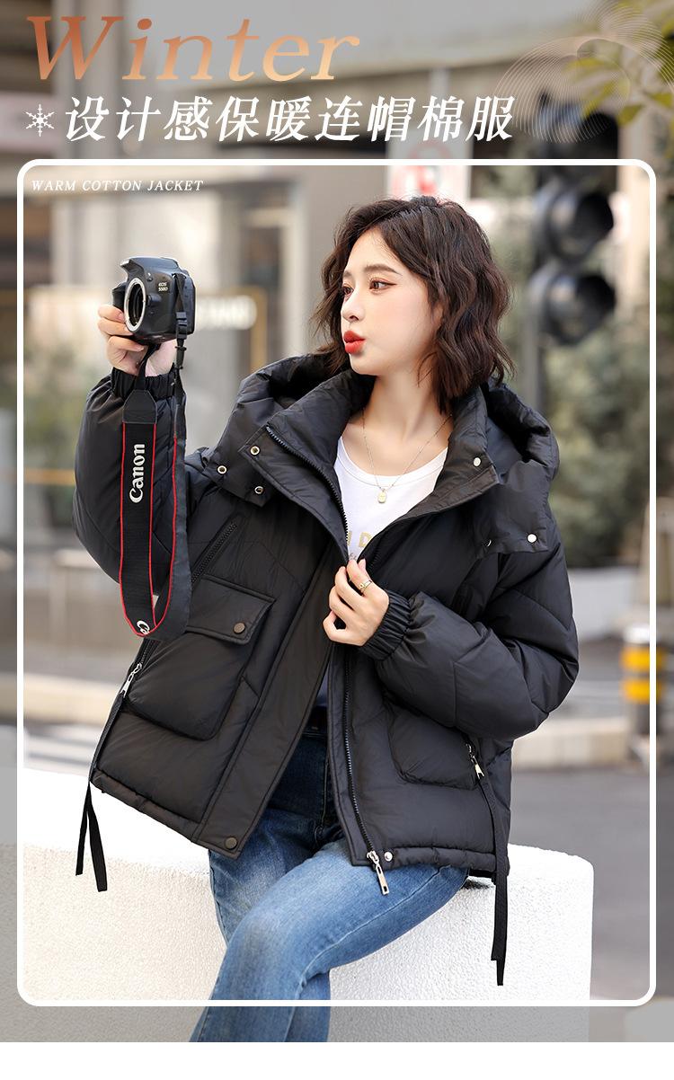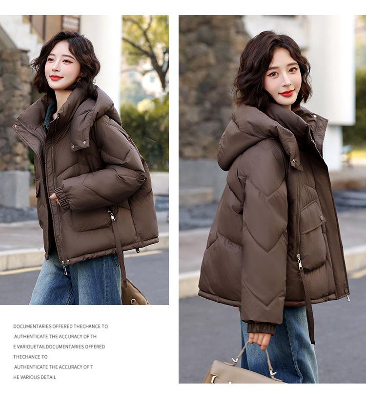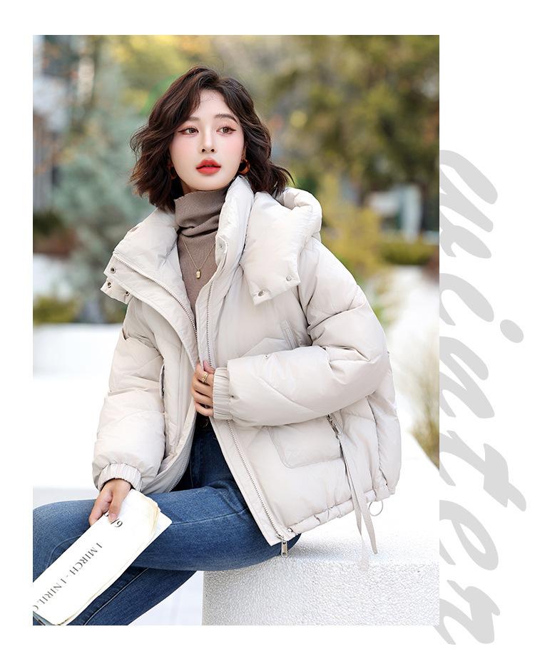 Abrigo de Algodón Plumón Super Caliente para Mujer Nuevo Diseño Creativo de Doble Bolsillo con Cierre Lateral Color Sólido Moda Nicho Versátil Chaqueta de Algodón Holgada