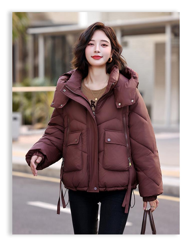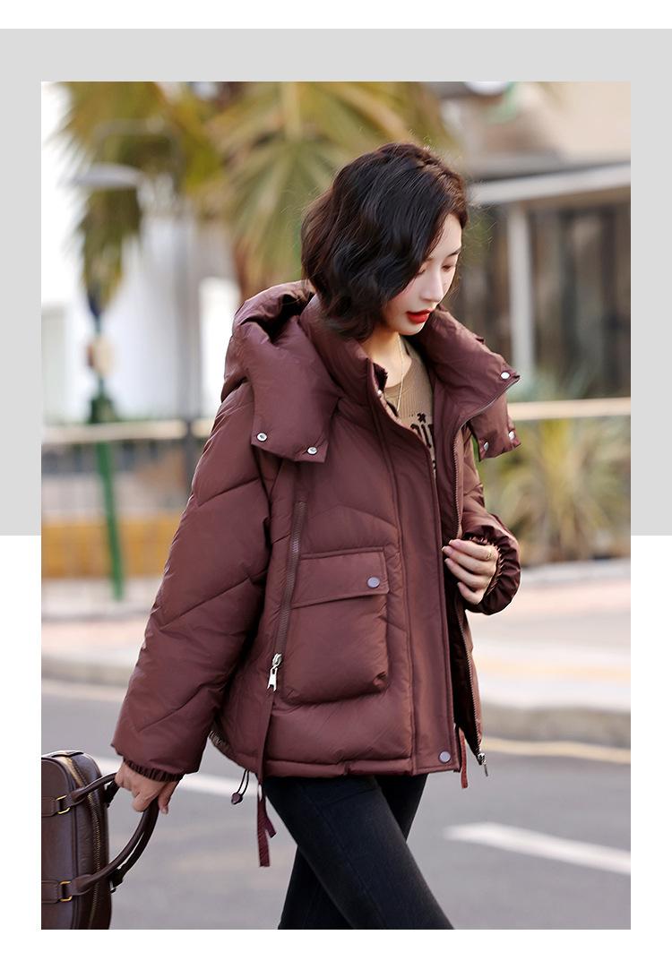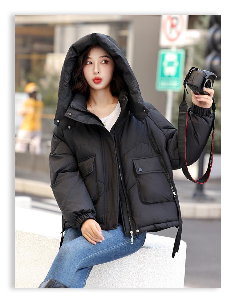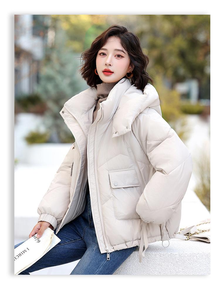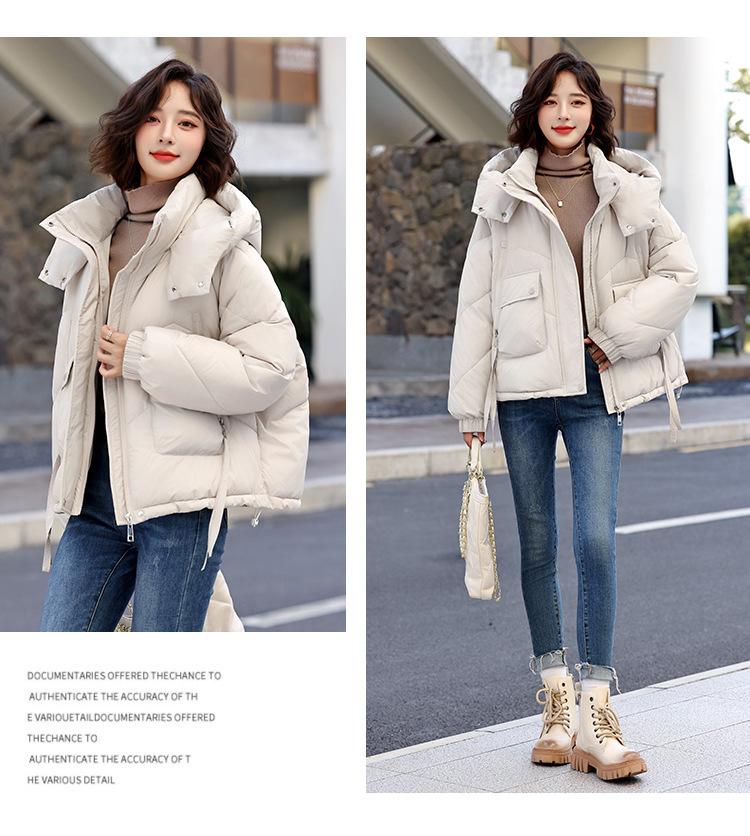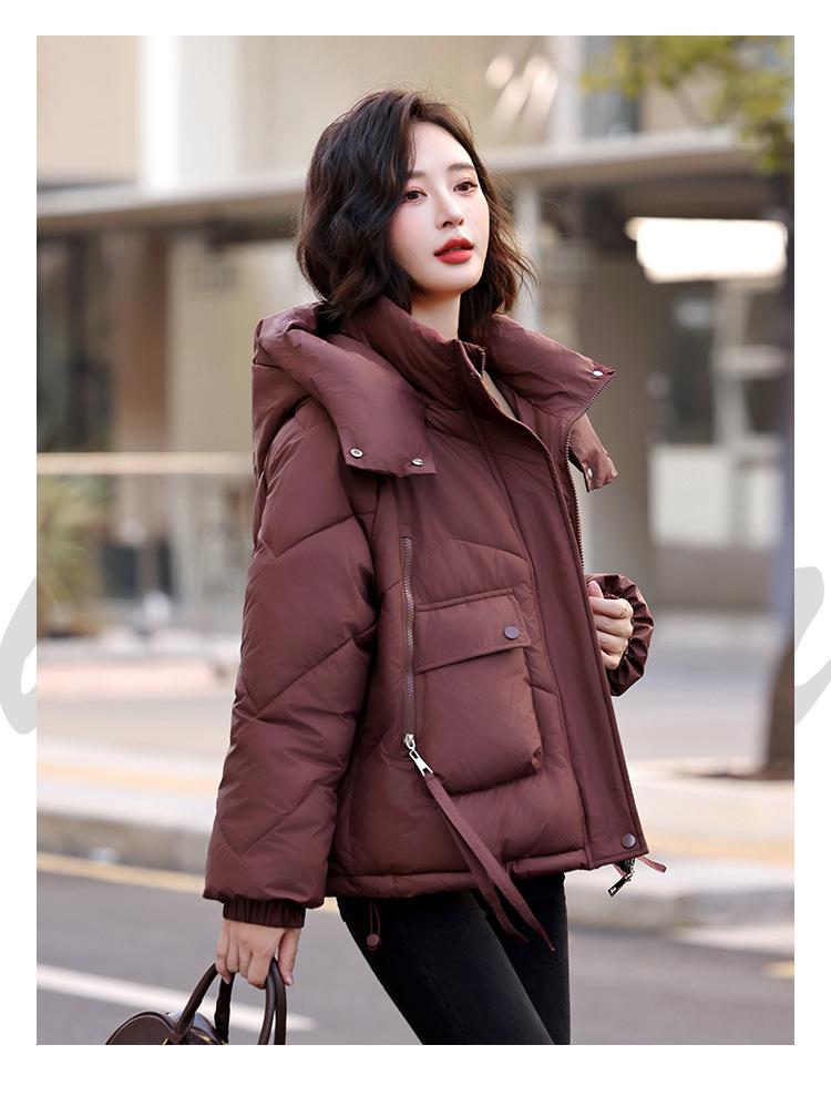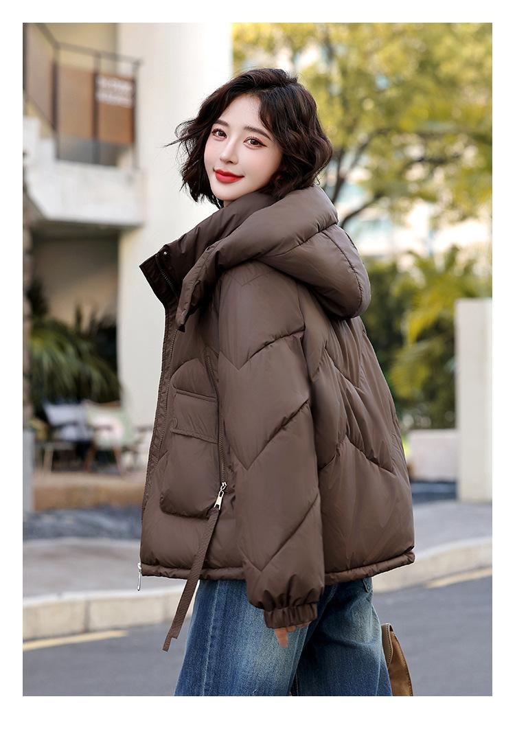Abrigo de Algodón Plumón Super Caliente para Mujer Nuevo Diseño Creativo de Doble Bolsillo con Cierre Lateral Color Sólido Moda Nicho Versátil Chaqueta de Algodón Holgada