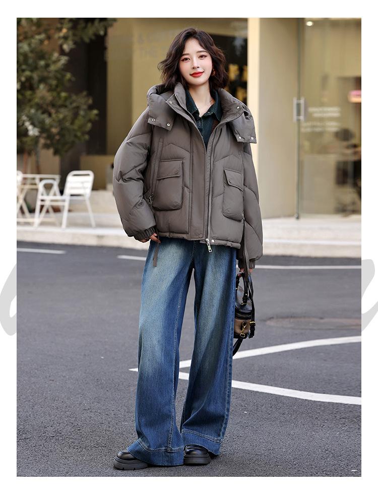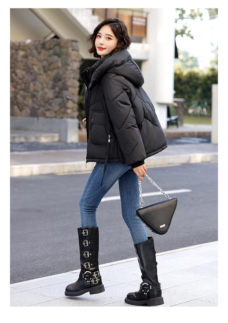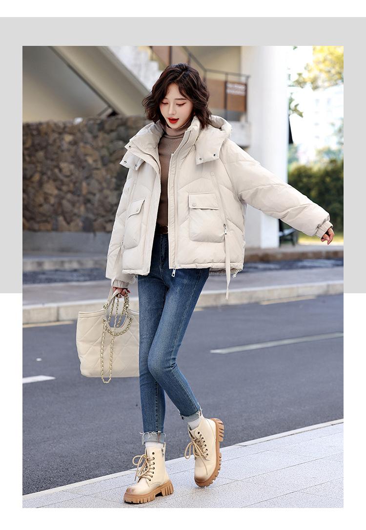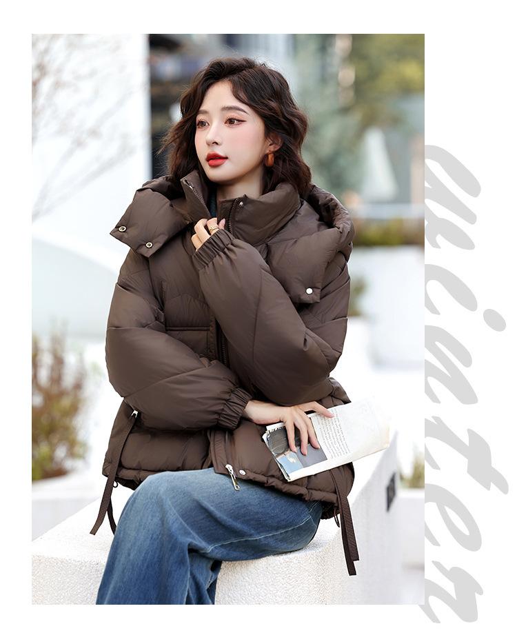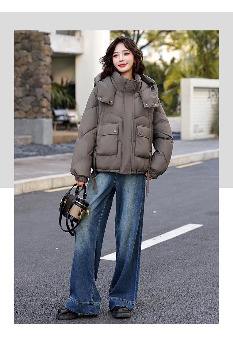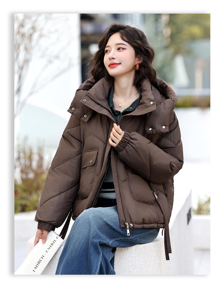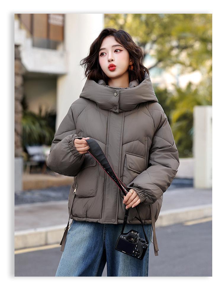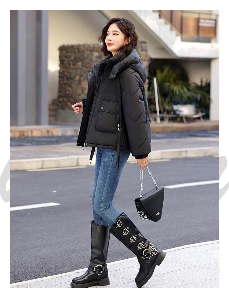 Abrigo de Algodón Plumón Super Caliente para Mujer Nuevo Diseño Creativo de Doble Bolsillo con Cierre Lateral Color Sólido Moda Nicho Versátil Chaqueta de Algodón Holgada