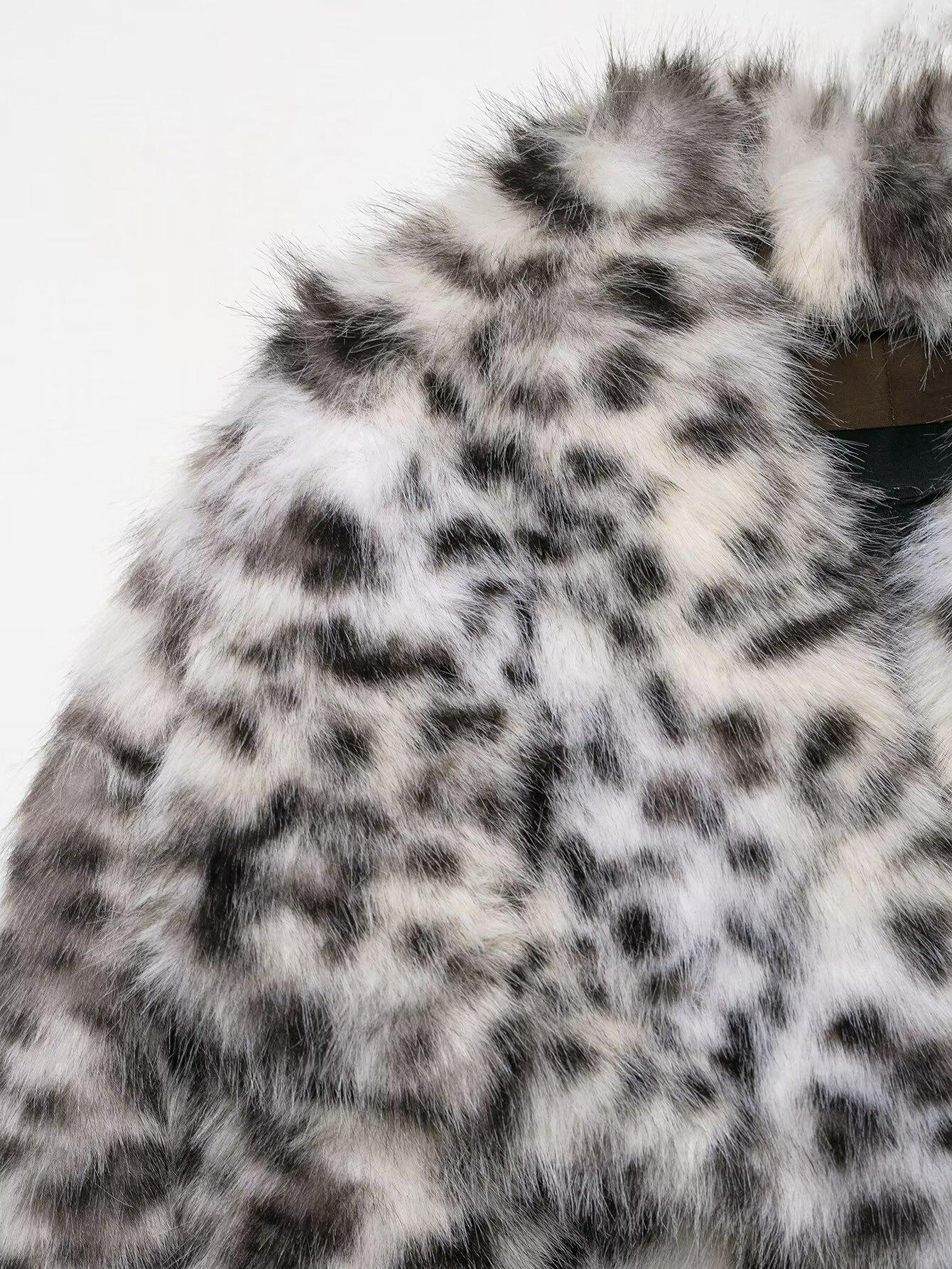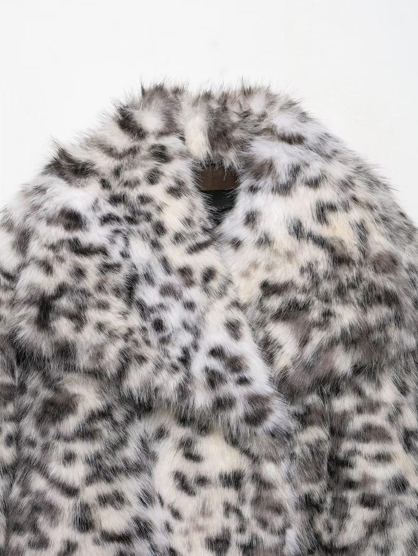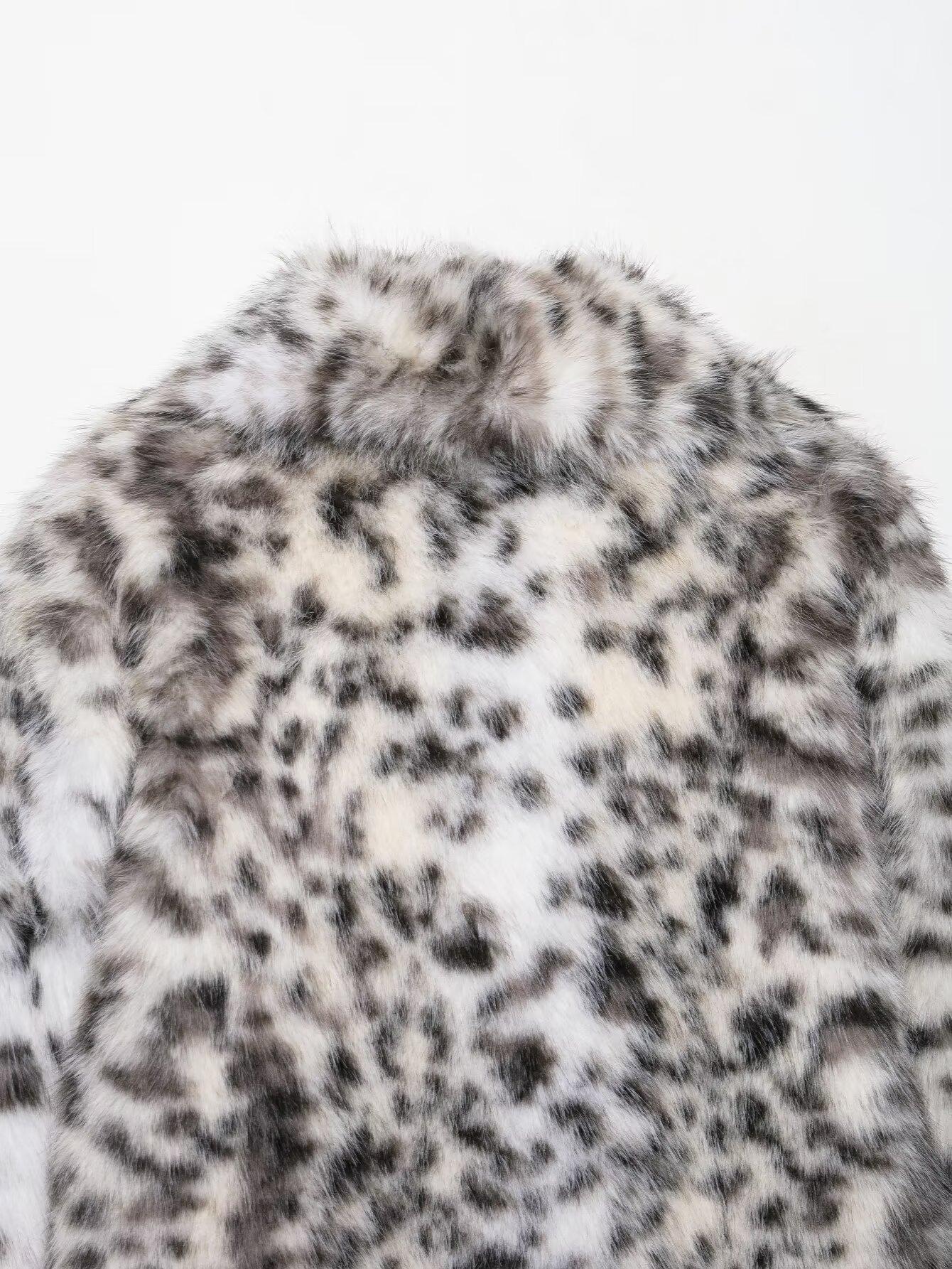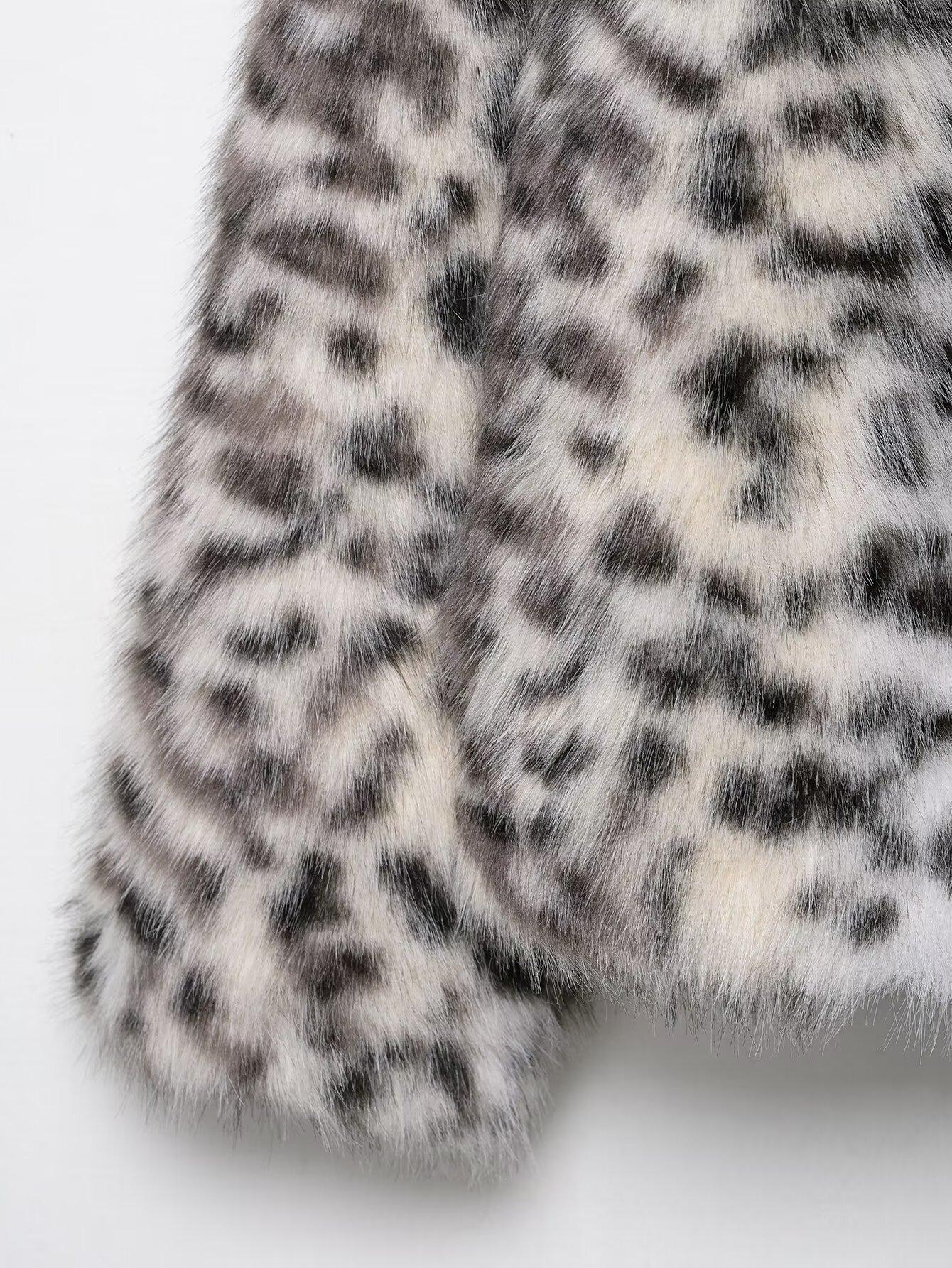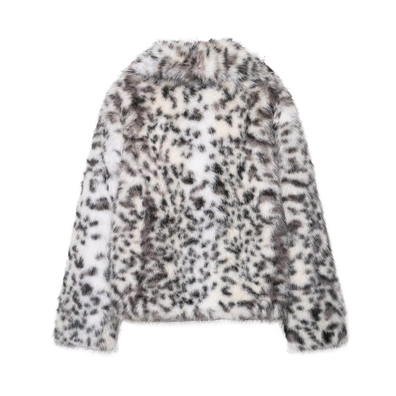 Ropa de mujer de comercio exterior transfronterizo 2025 invierno estilo europeo y americano estampado animal chaqueta abrigo de piel sintética mujer D63108