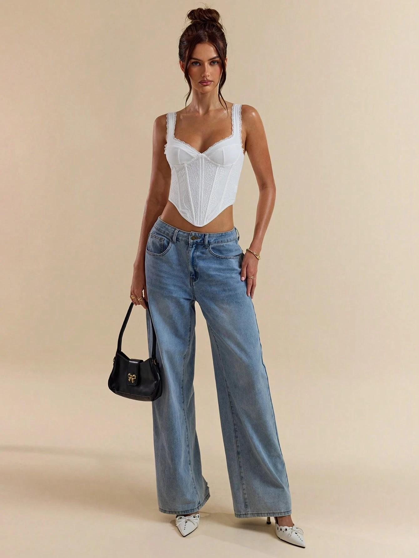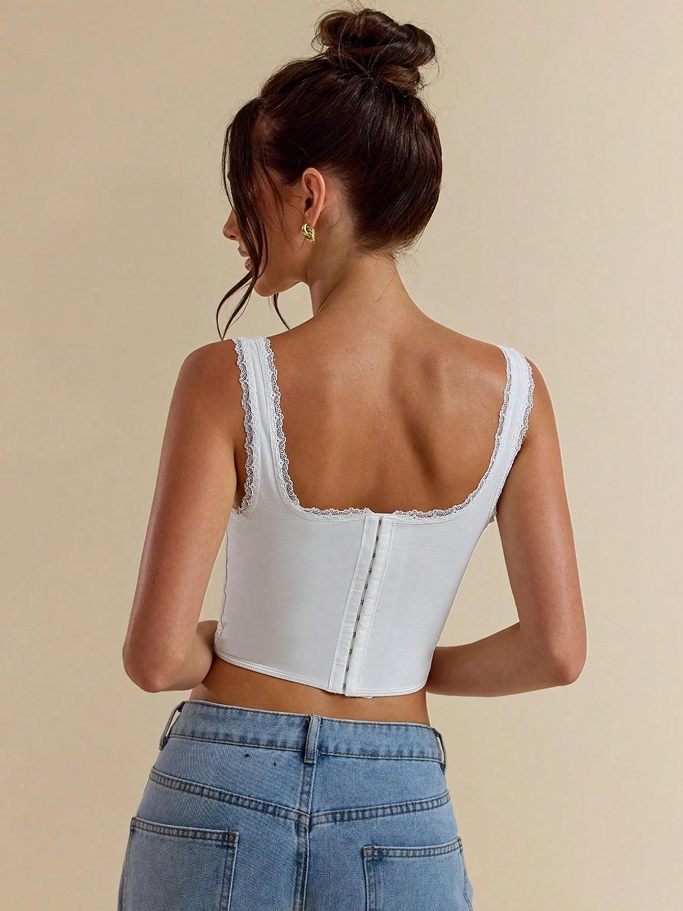 Nuevo corsé deshuesado de encaje sexy estilo chica picante deseo puro de venta caliente transfronterizo temperamento sexy bustier europeo y americano