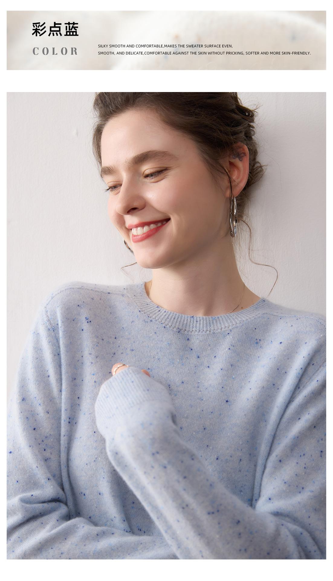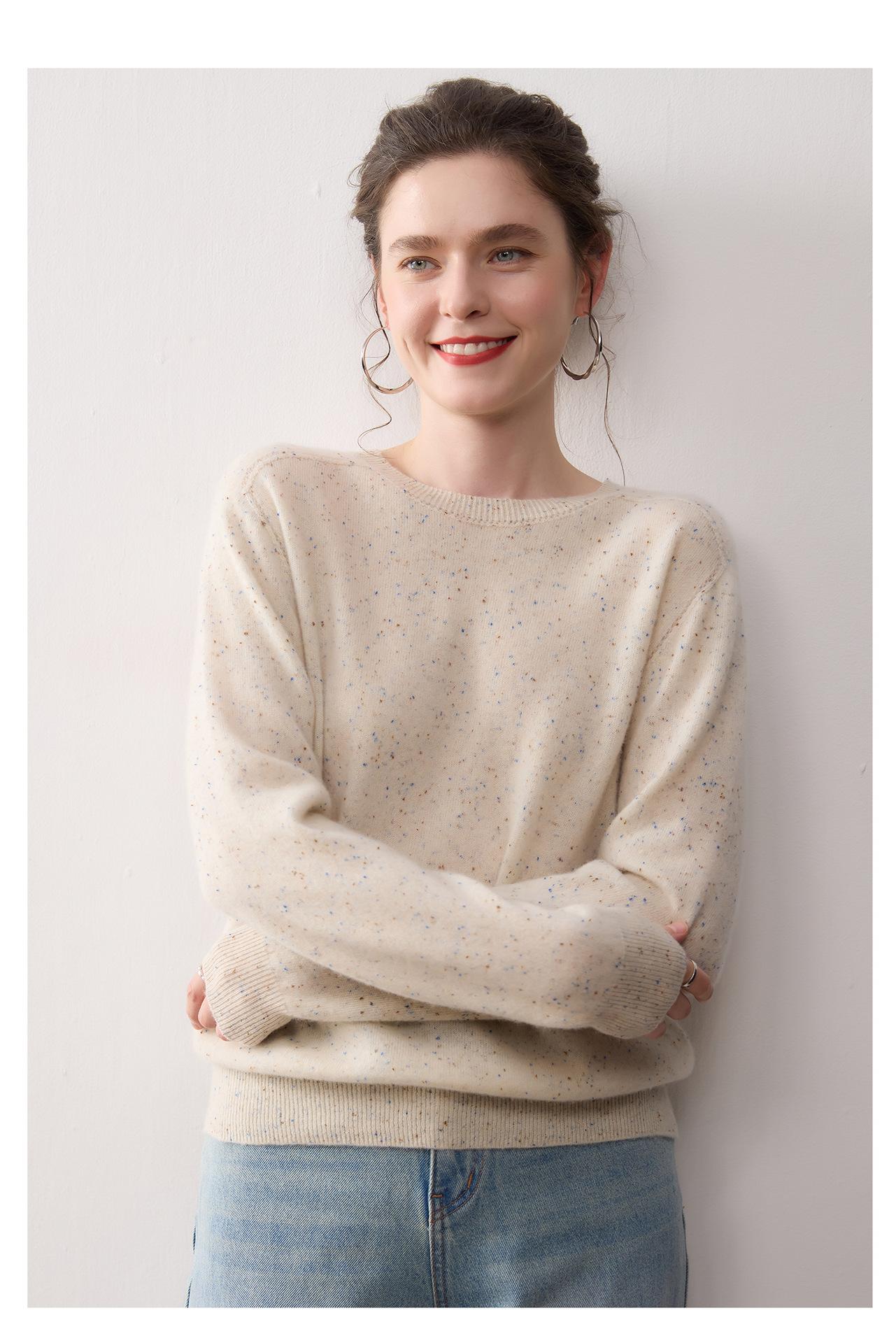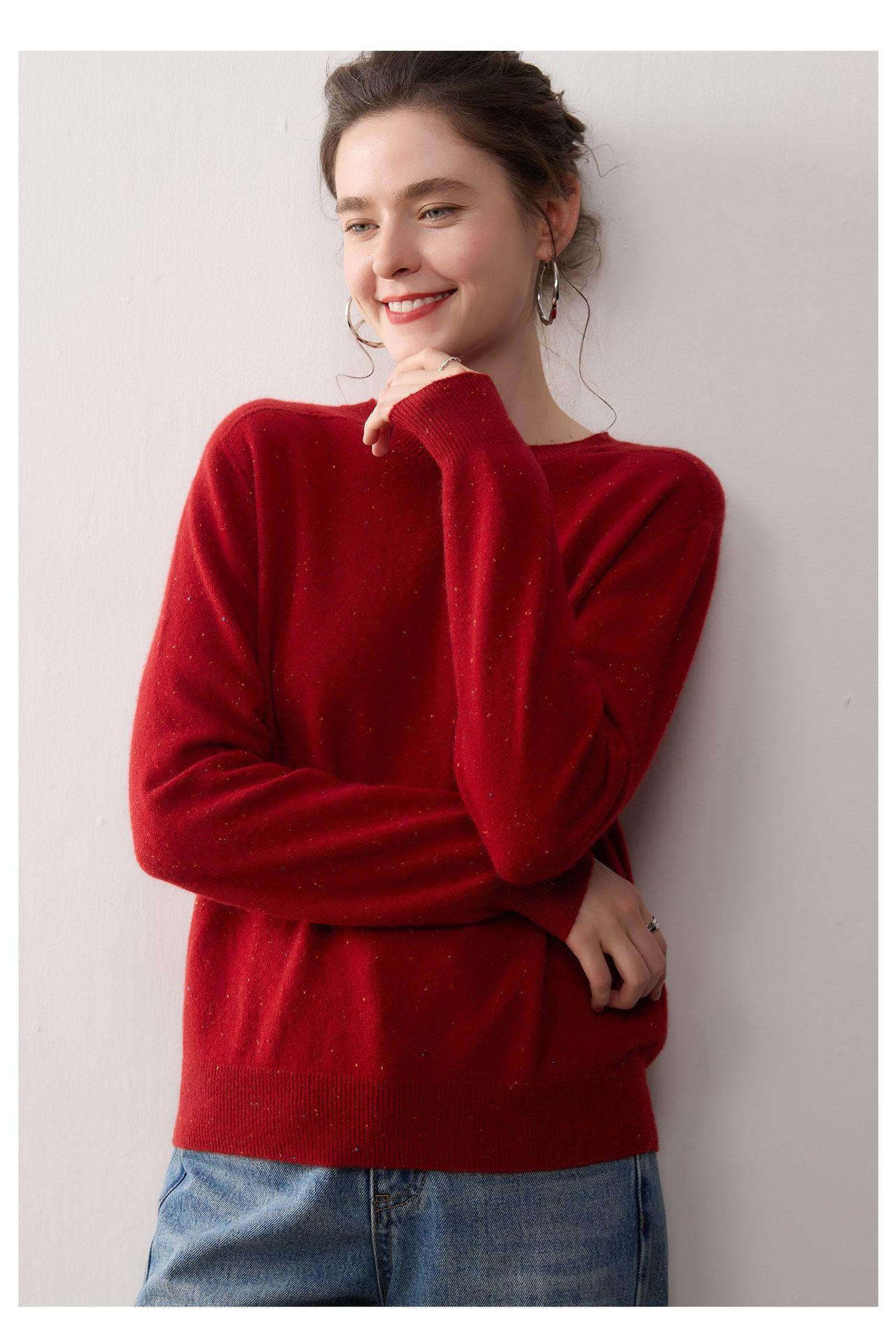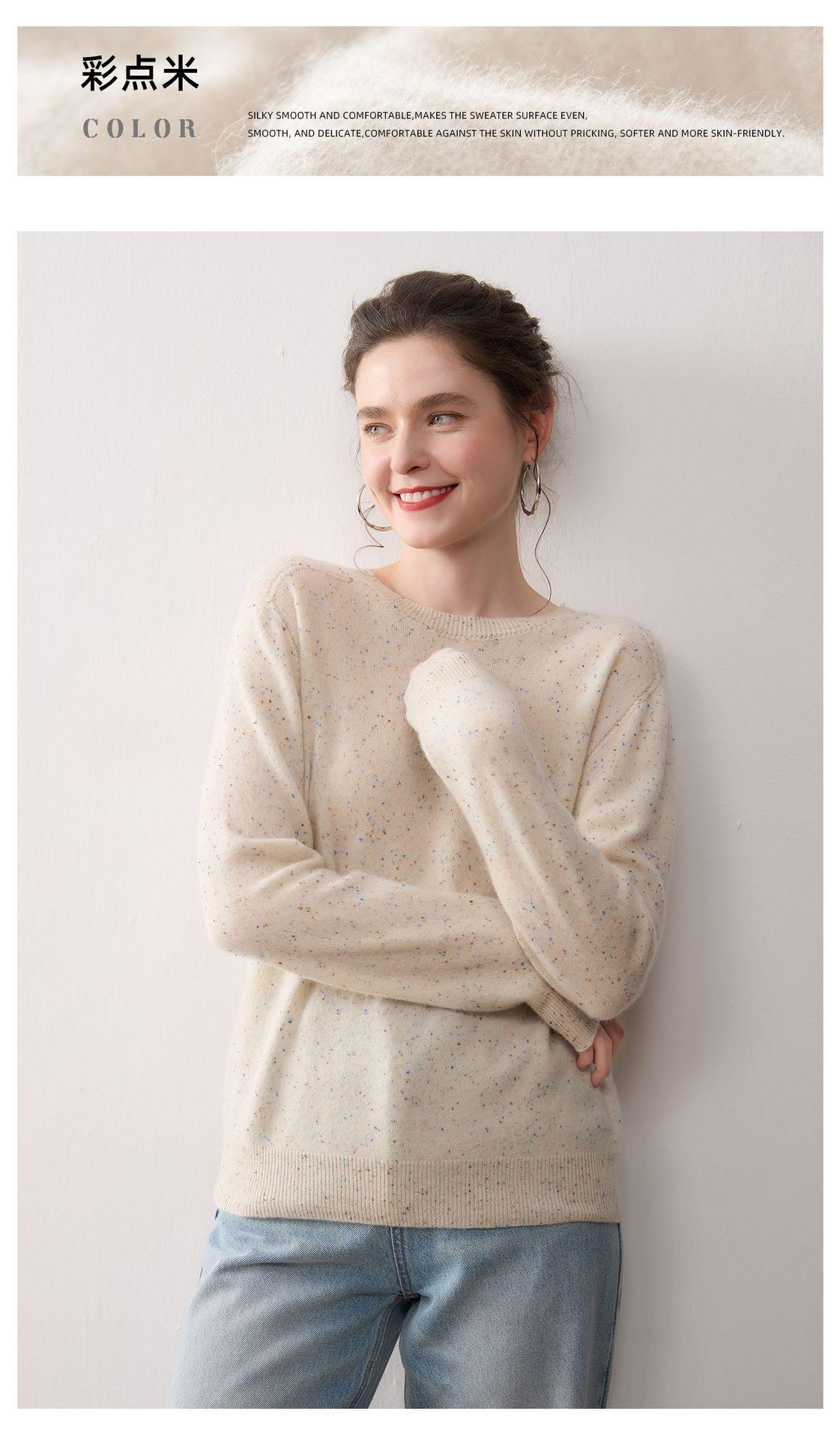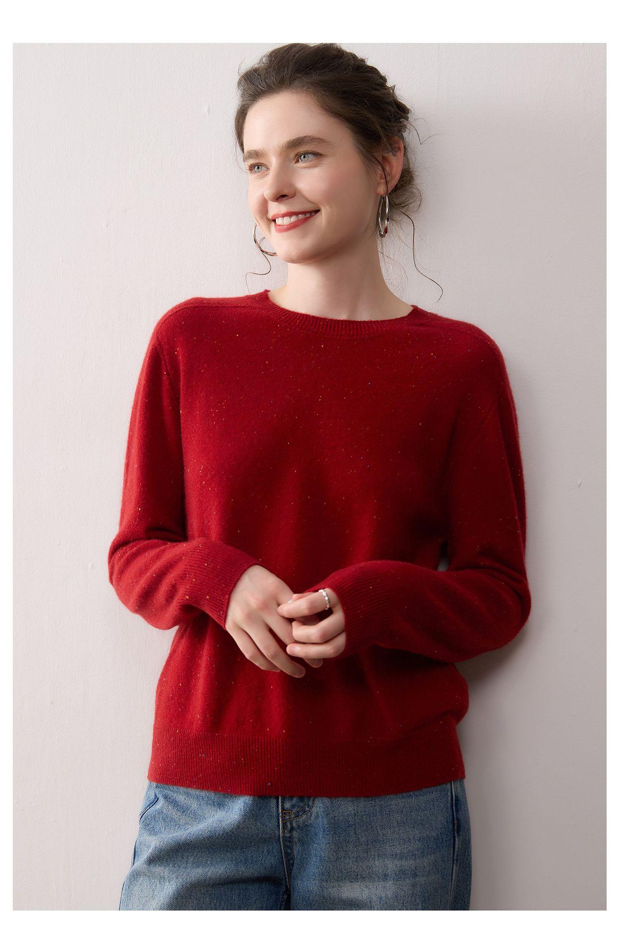 Suéter de Cachemira Mujer 100% Cachemira Pura Cuello Redondo Moda Simple Manga Larga Jersey de Punto Base Cálido Suéter de Lana