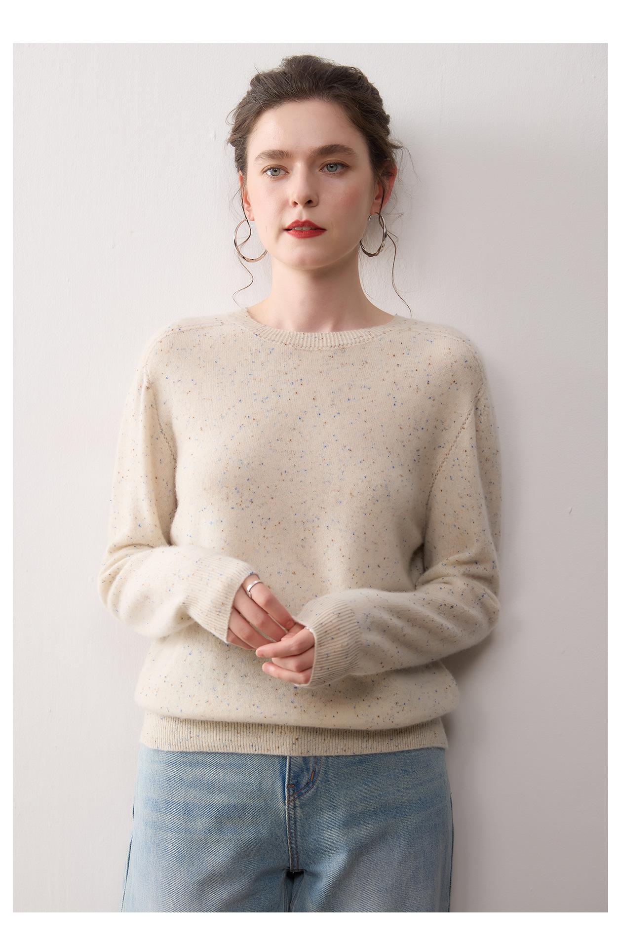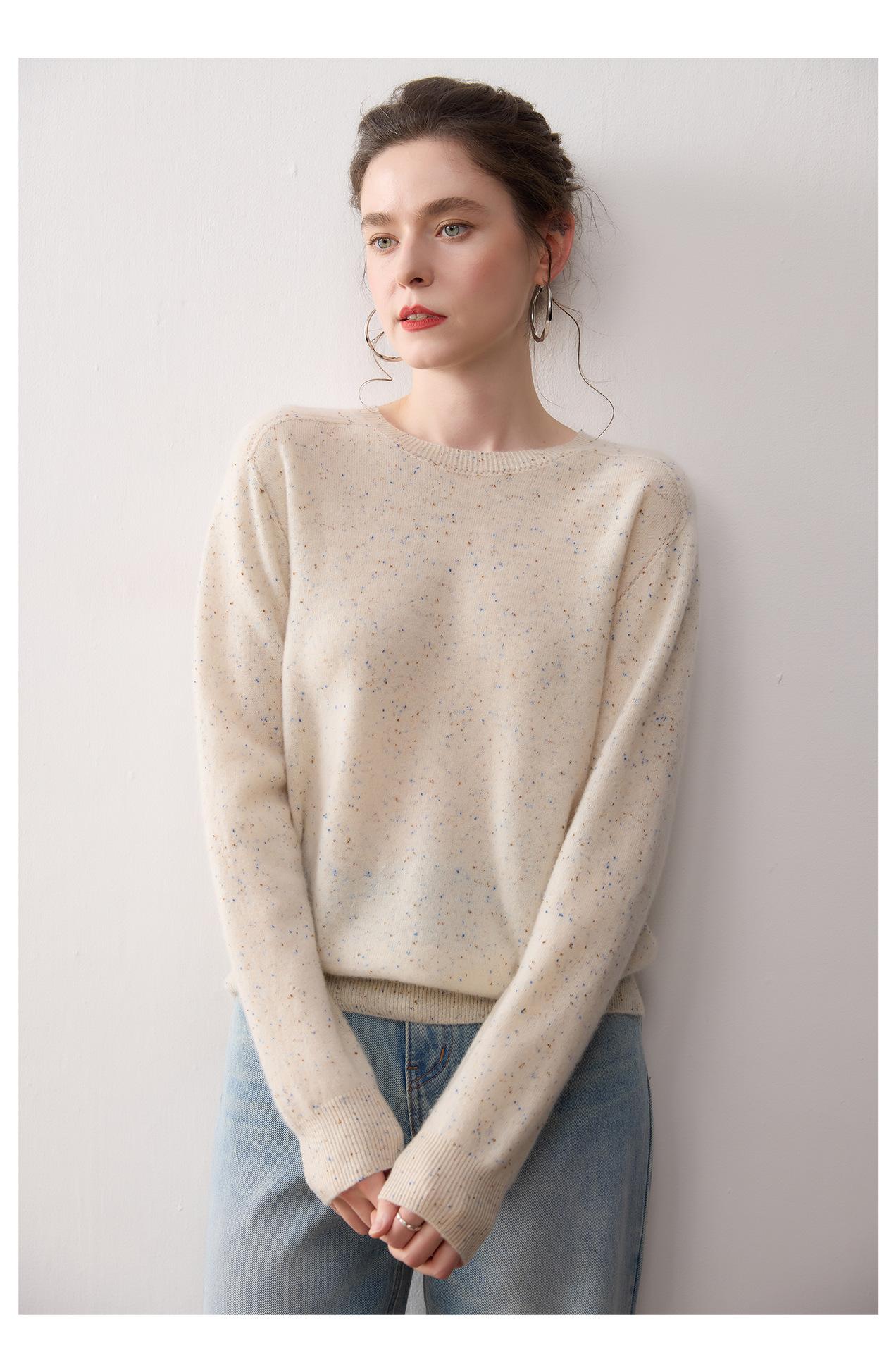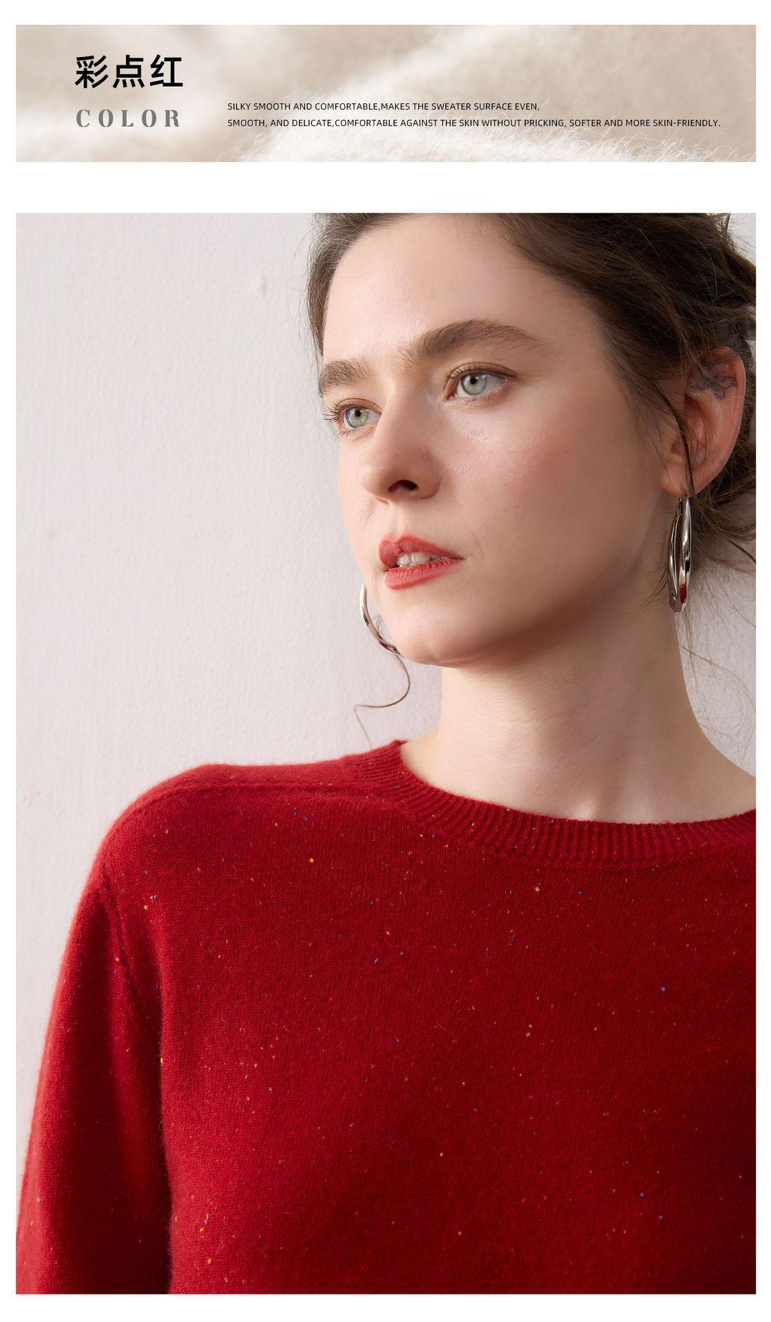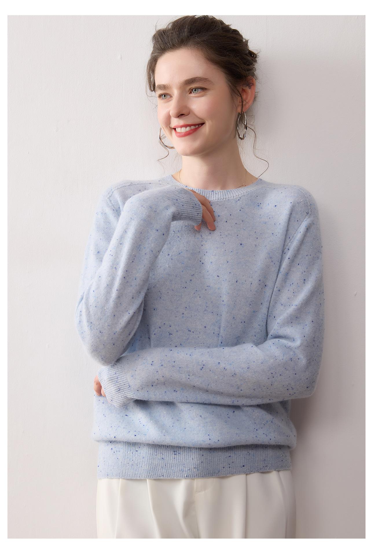 Suéter de Cachemira Mujer 100% Cachemira Pura Cuello Redondo Moda Simple Manga Larga Jersey de Punto Base Cálido Suéter de Lana