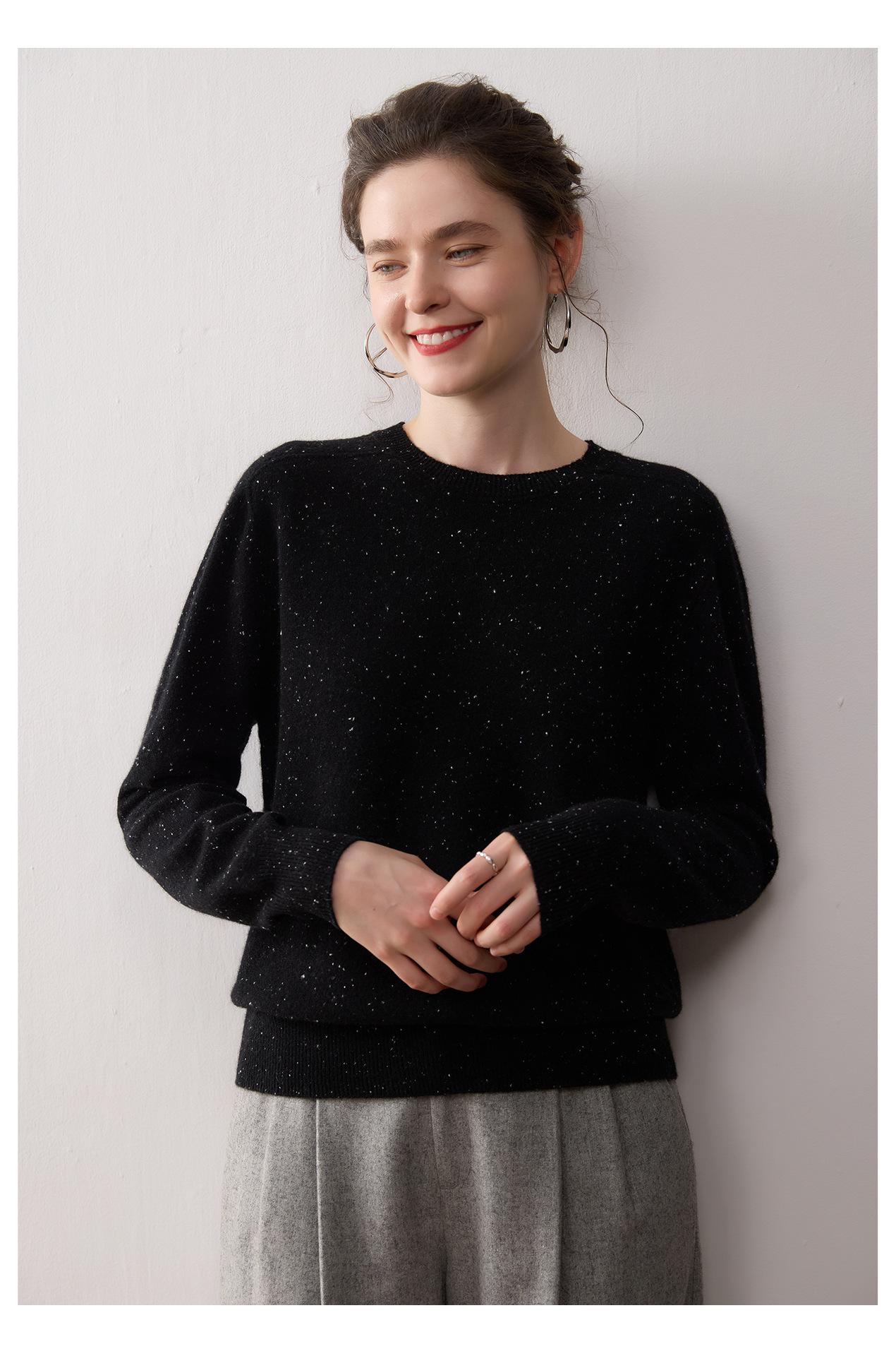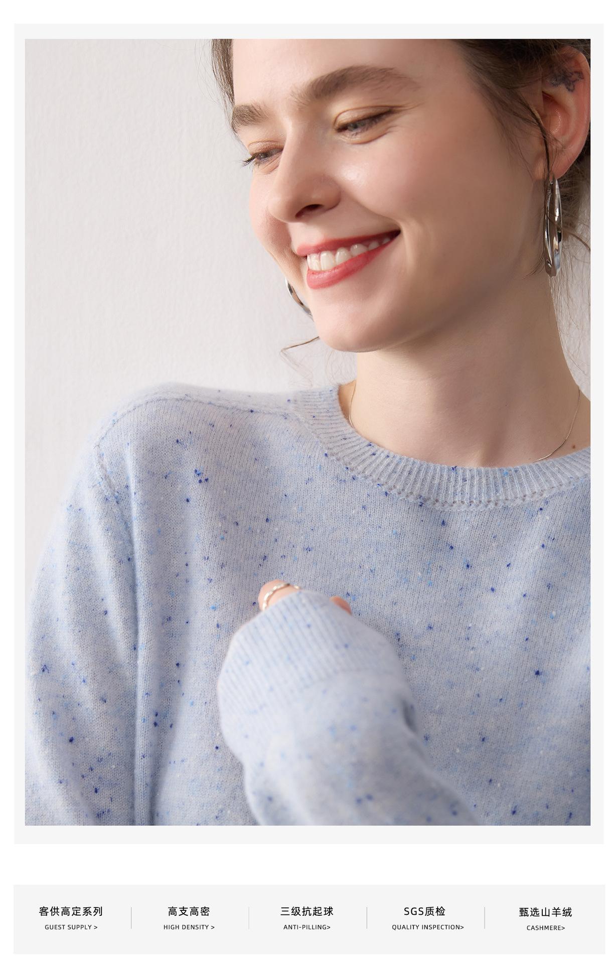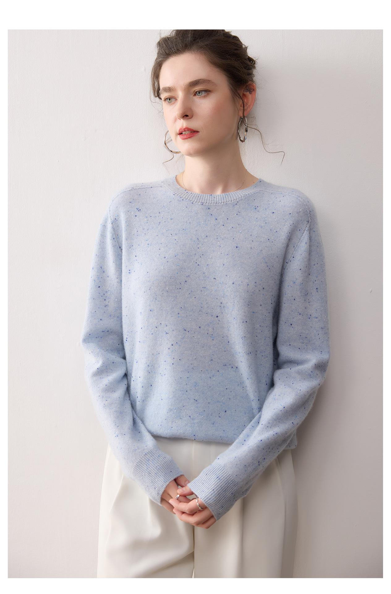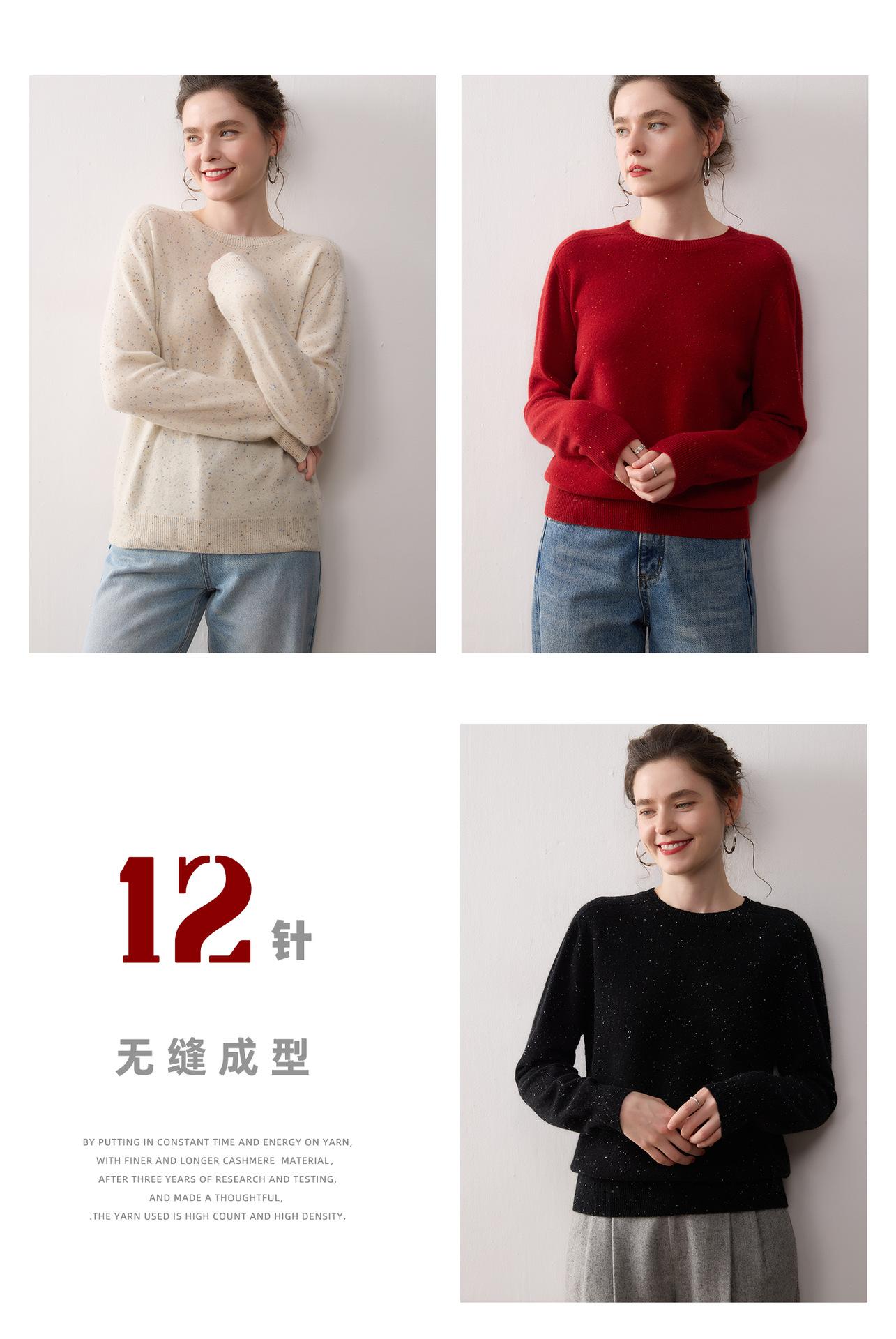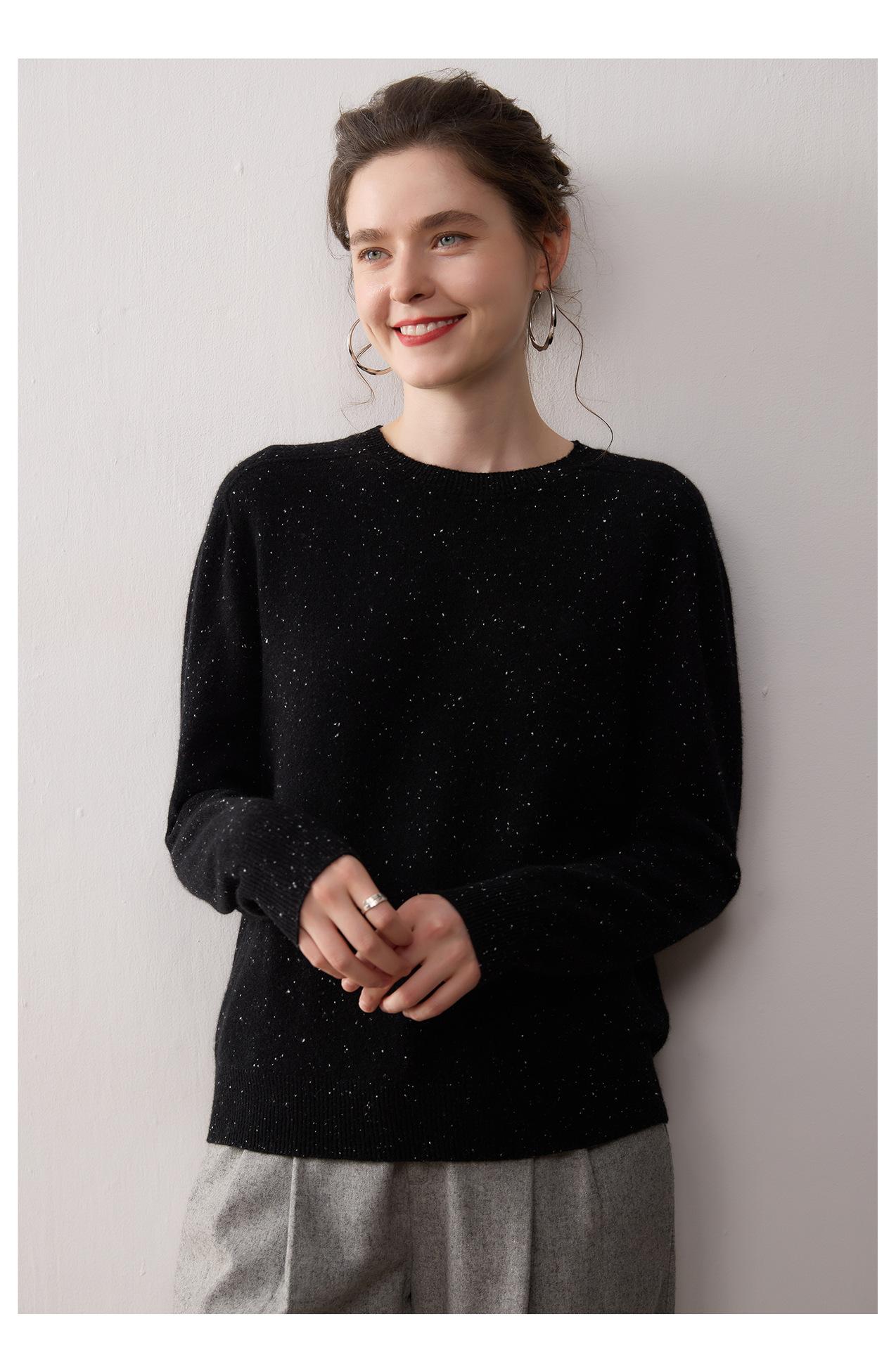Suéter de Cachemira Mujer 100% Cachemira Pura Cuello Redondo Moda Simple Manga Larga Jersey de Punto Base Cálido Suéter de Lana