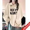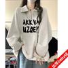 Chaqueta polo cortavientos con forro polar para otoño e invierno, sudadera versátil para mujer con sentido del diseño de media cremallera, cuello grueso tipo universitario, holgada.
