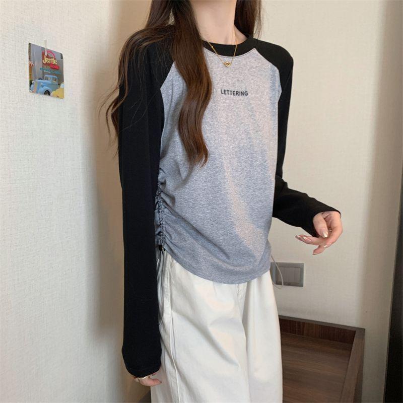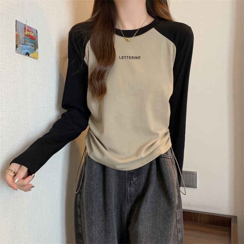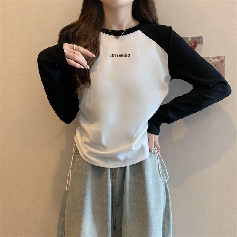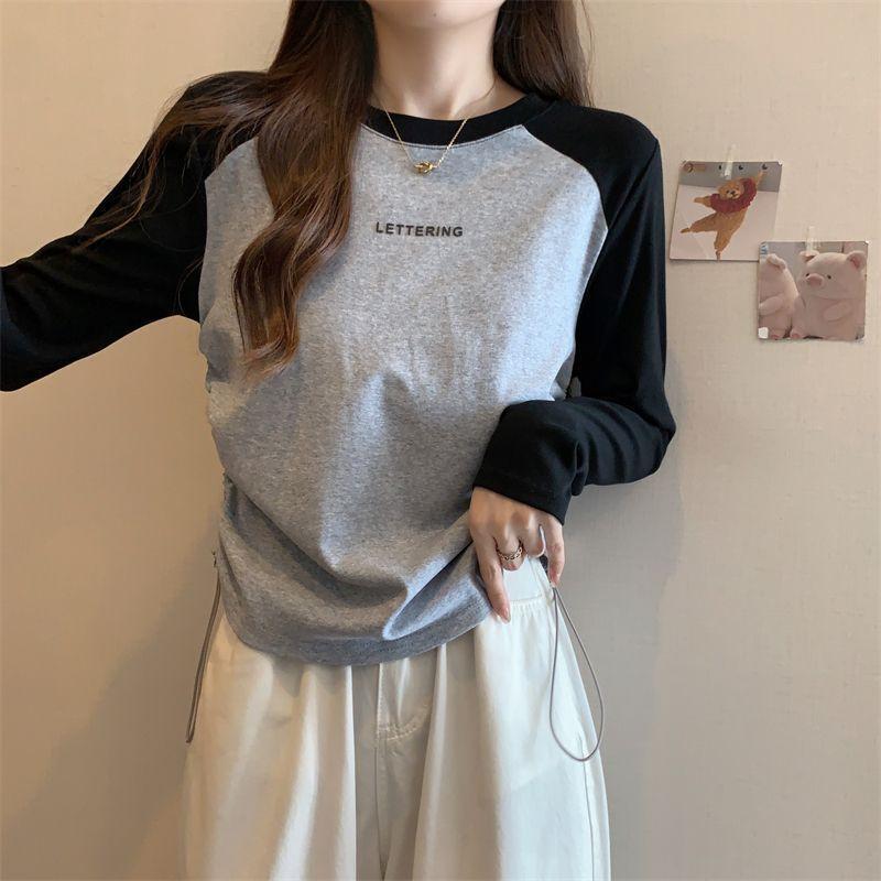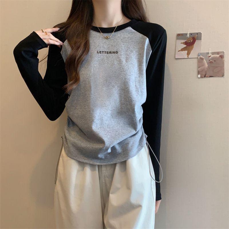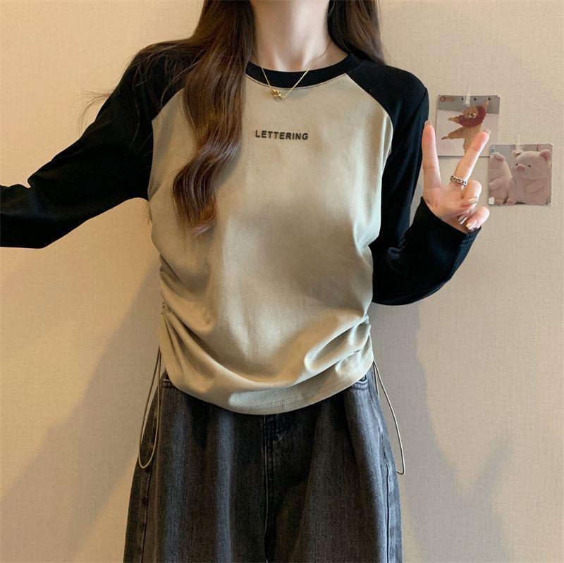 Playera de Manga Larga para Mujer Talla Grande Mujer 2025 Primavera Otoño Holgada Adelgazante Casual Versátil Diseño con Sentido Nicho Top con Cordón