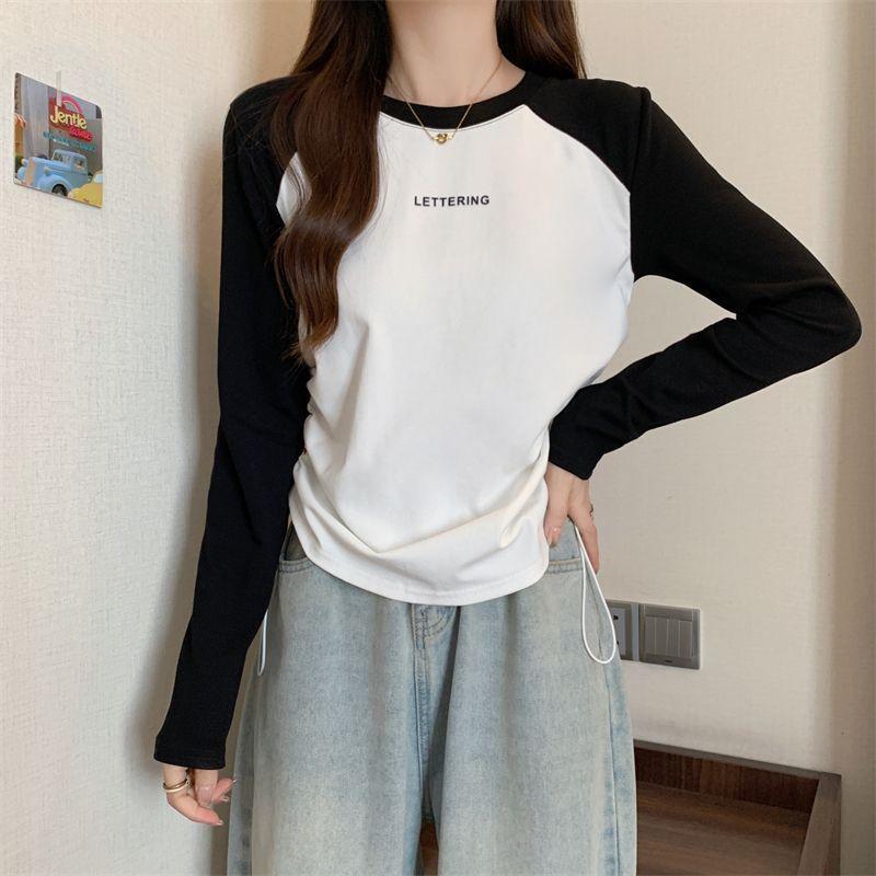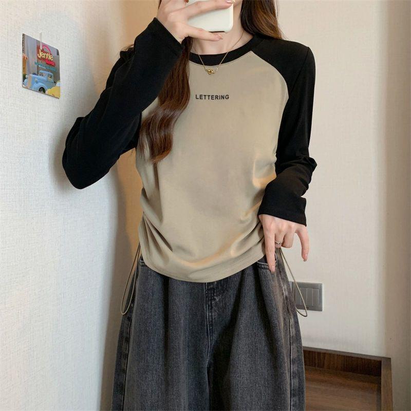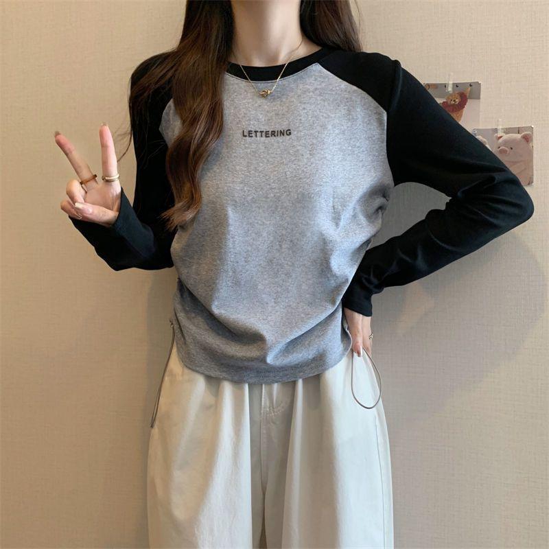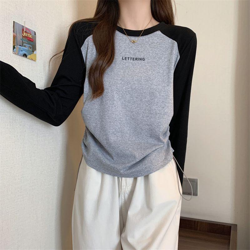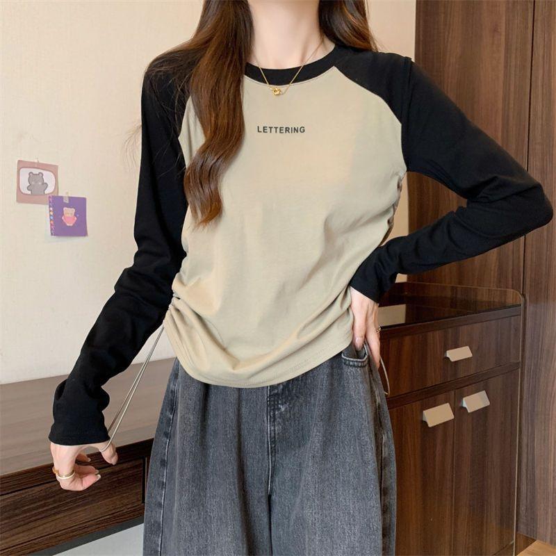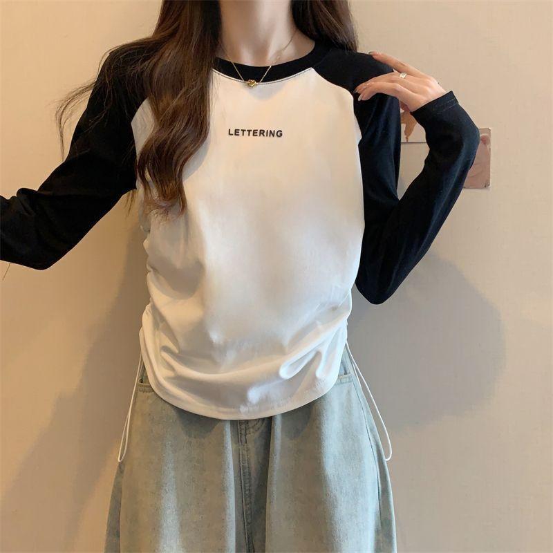 Playera de Manga Larga para Mujer Talla Grande Mujer 2025 Primavera Otoño Holgada Adelgazante Casual Versátil Diseño con Sentido Nicho Top con Cordón