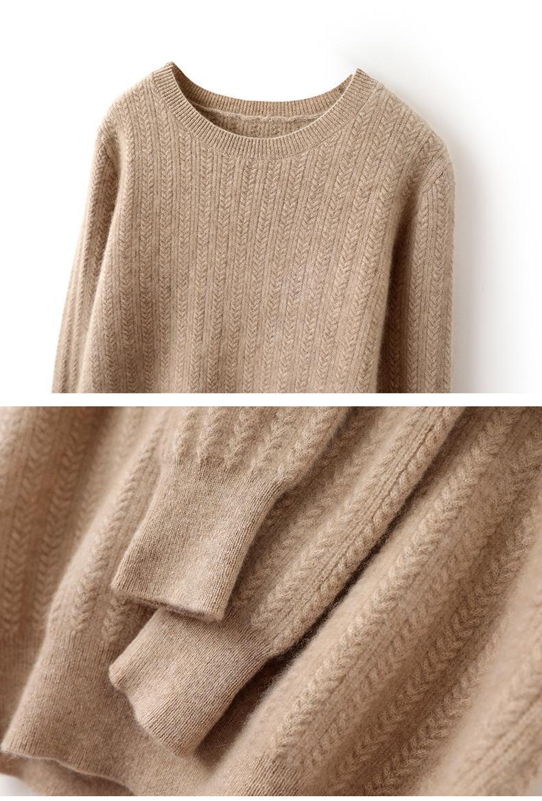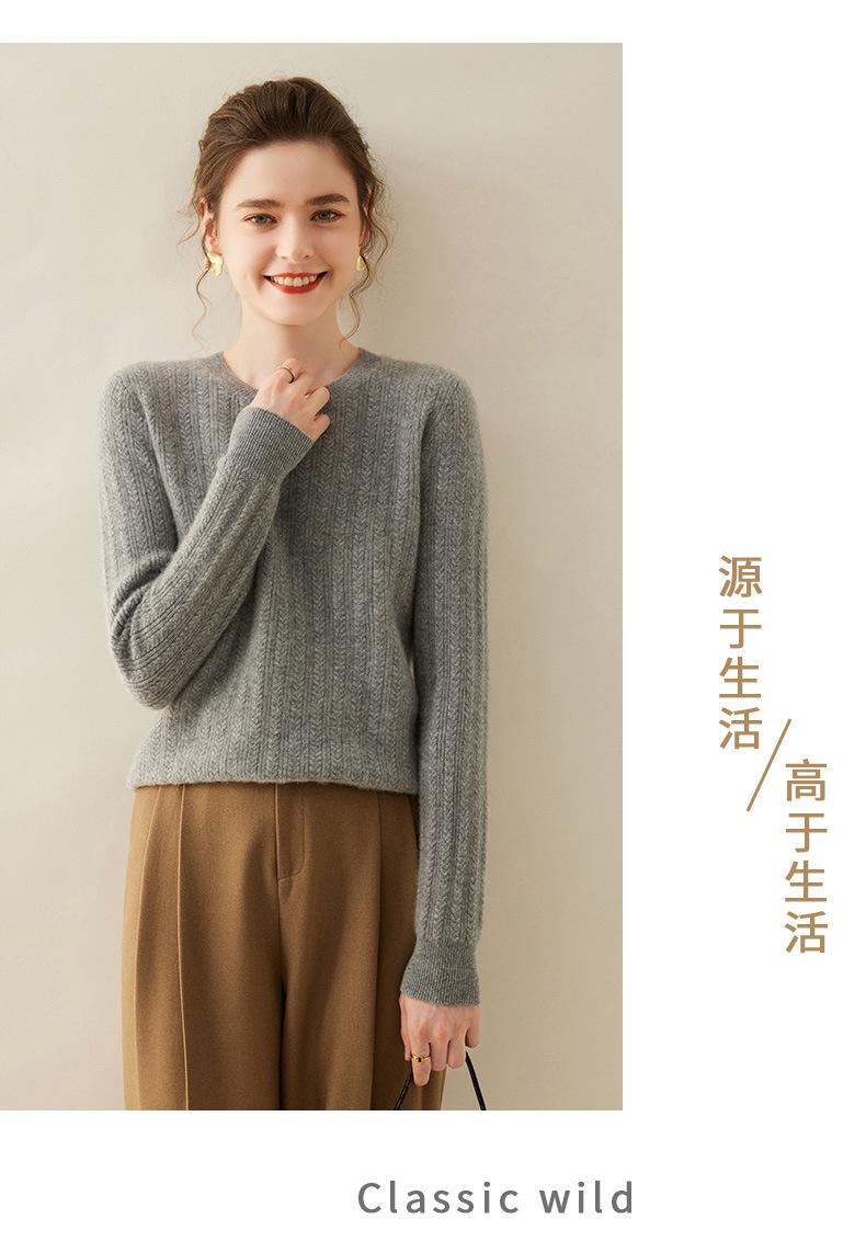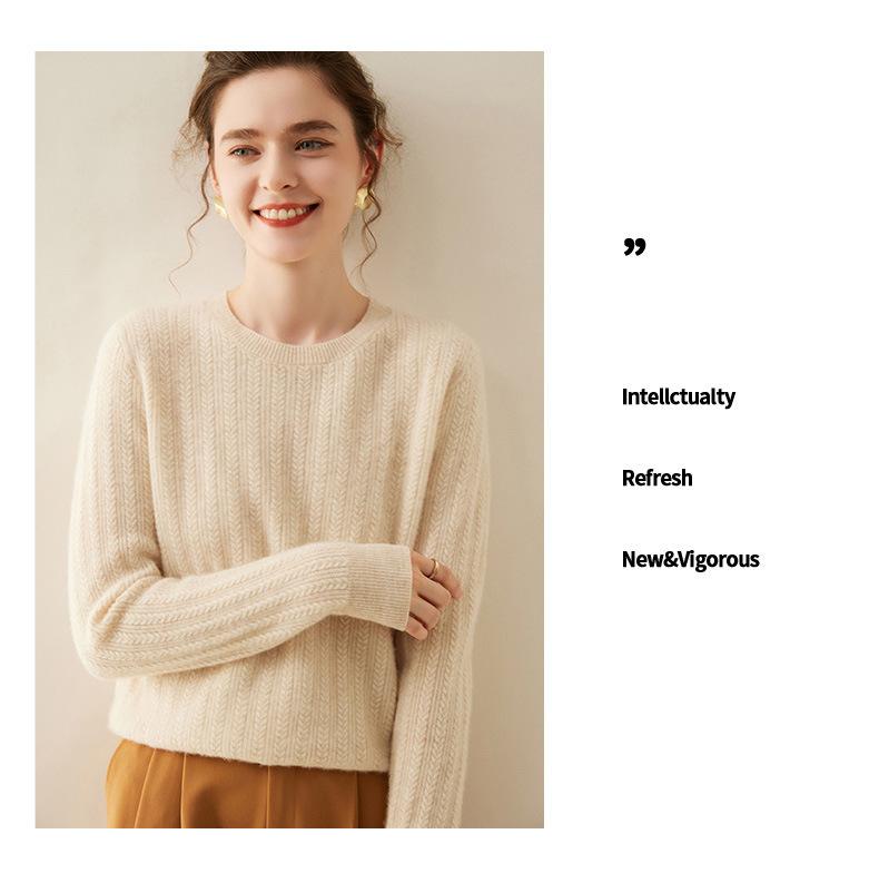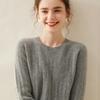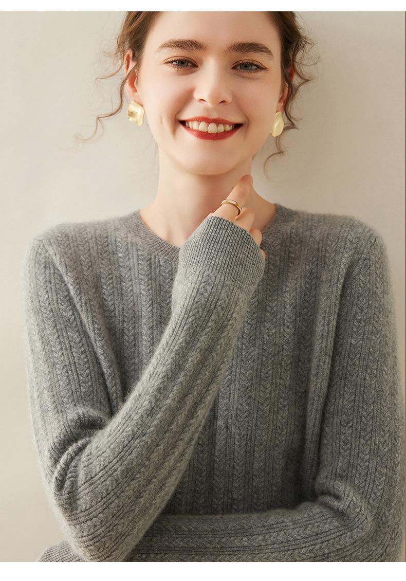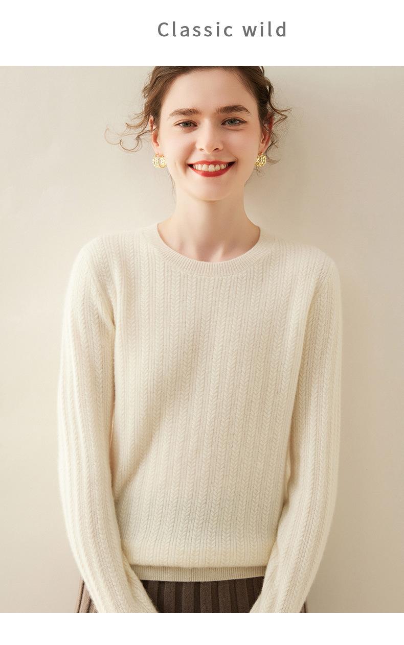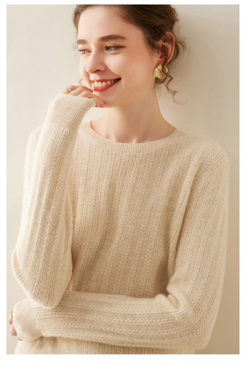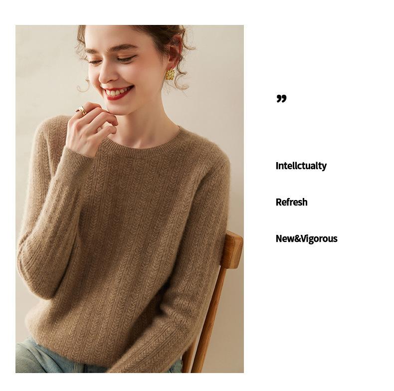 Suéter de Cachemira Tejido Otoño e Invierno Nuevo Estilo Mujer Cuello Redondo Pulóver Ajustado Tejido de Cable Pequeño Top Base Versátil Tendencia de Moda
