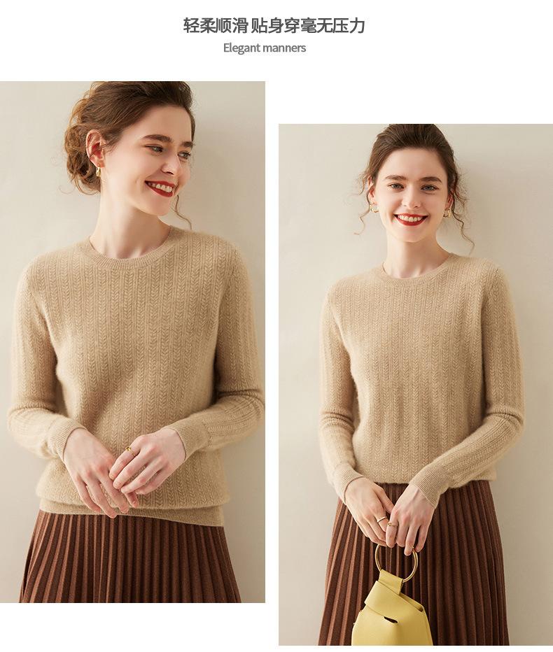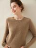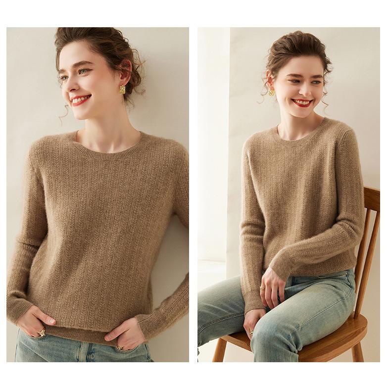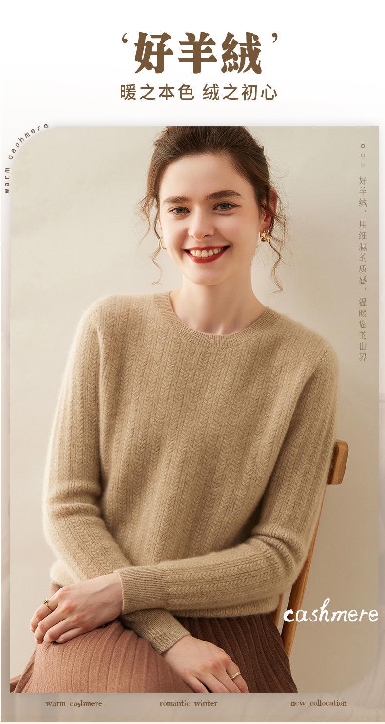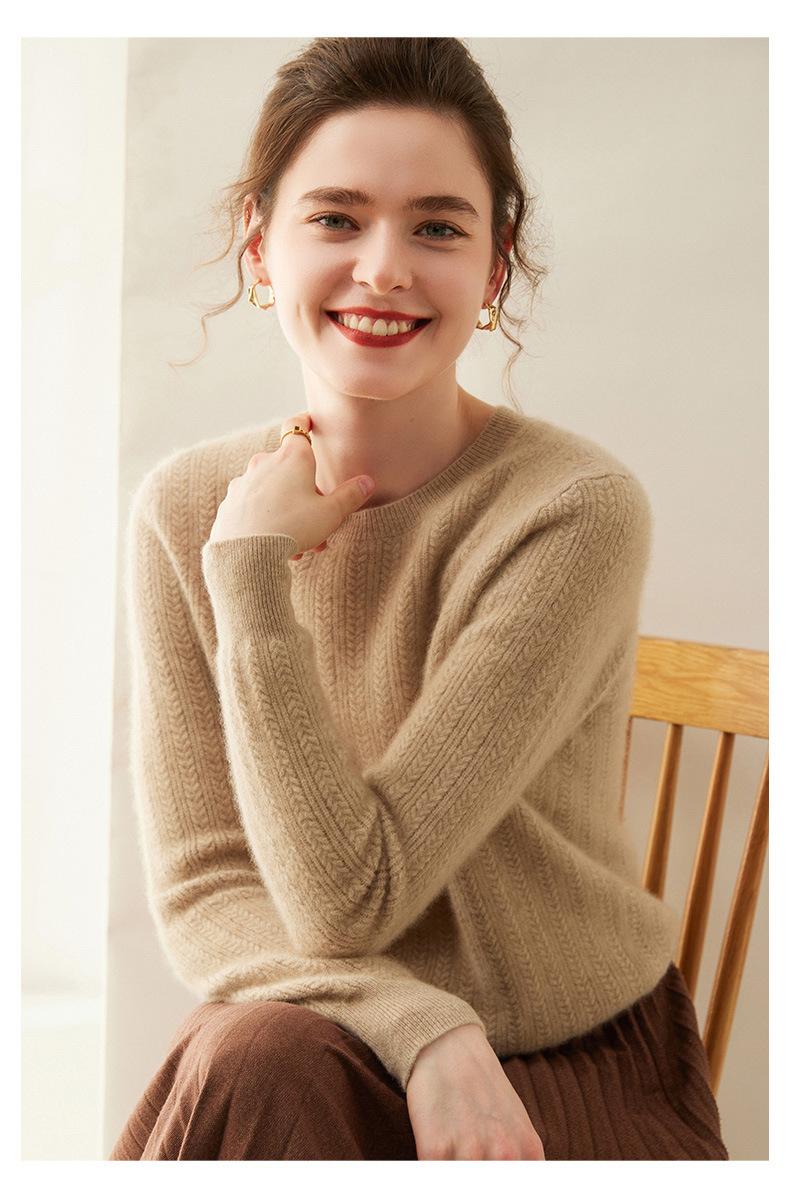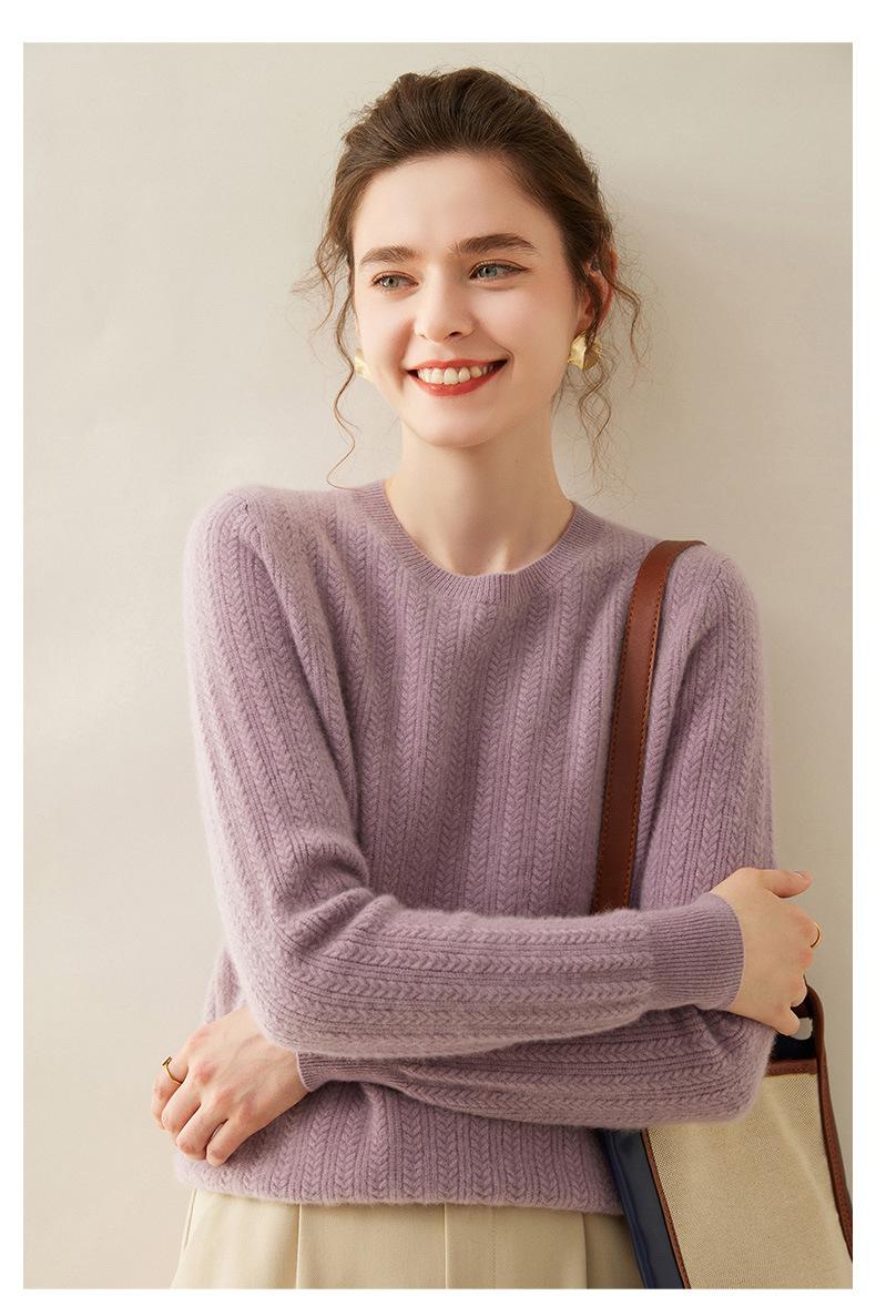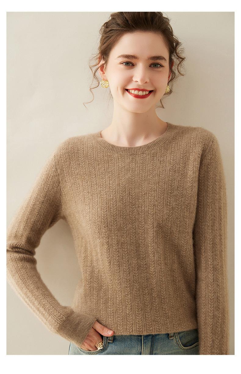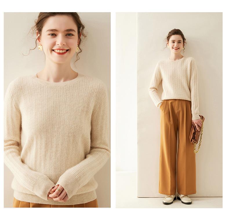Suéter de Cachemira Tejido Otoño e Invierno Nuevo Estilo Mujer Cuello Redondo Pulóver Ajustado Tejido de Cable Pequeño Top Base Versátil Tendencia de Moda