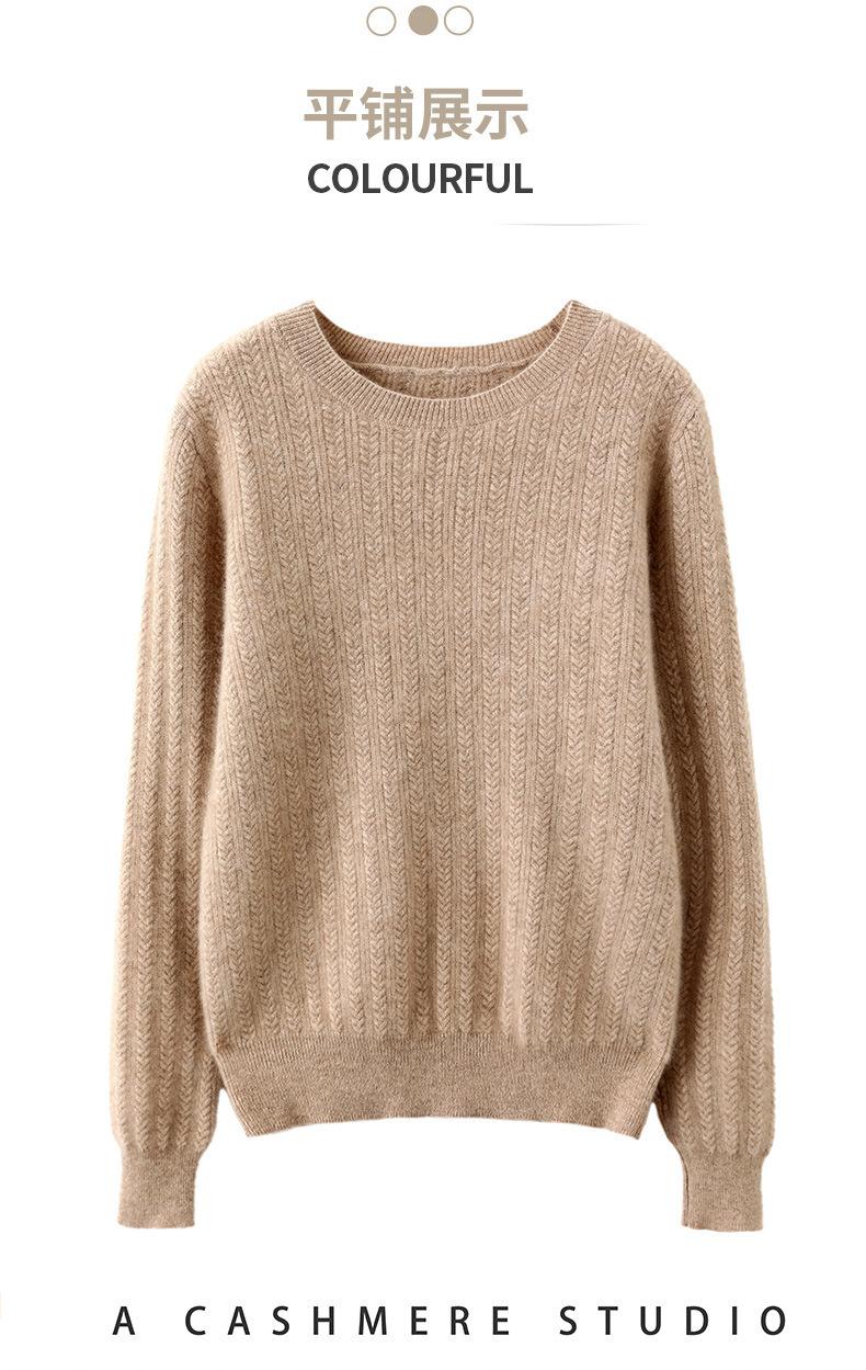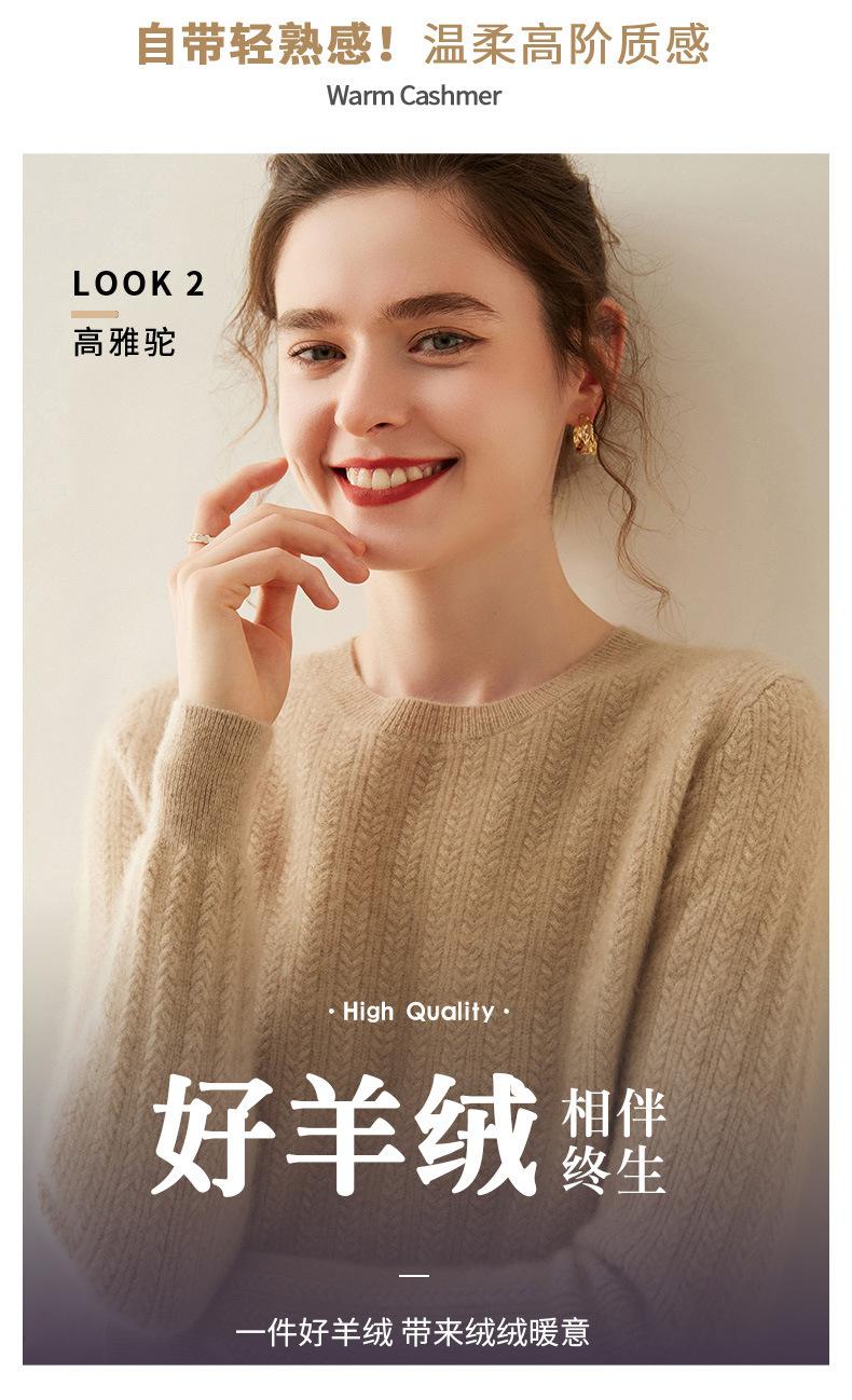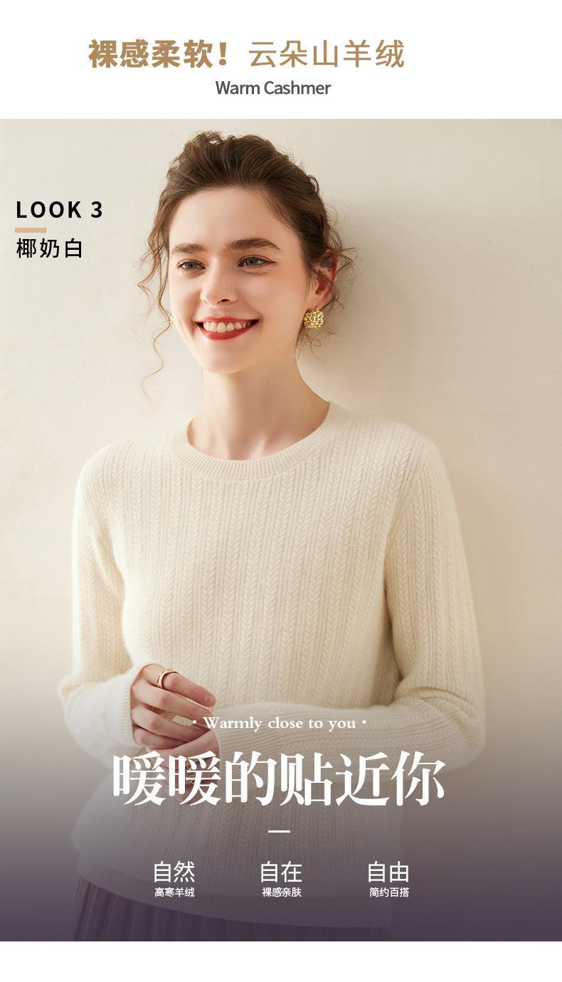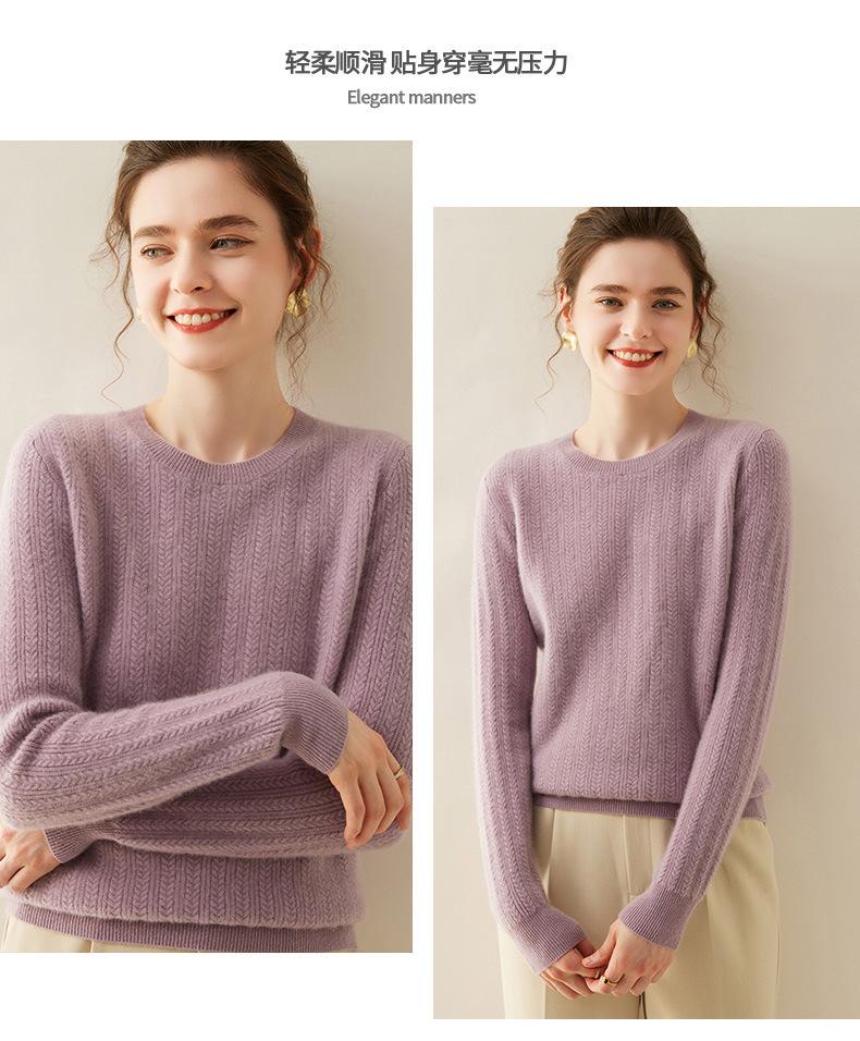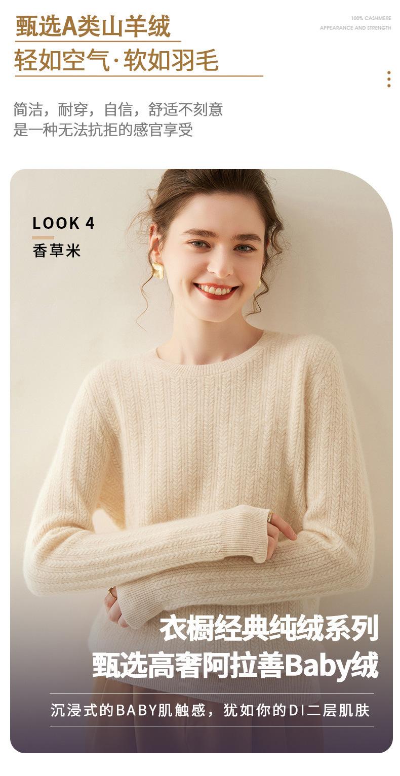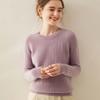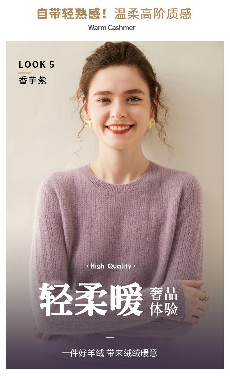 Suéter de Cachemira Tejido Otoño e Invierno Nuevo Estilo Mujer Cuello Redondo Pulóver Ajustado Tejido de Cable Pequeño Top Base Versátil Tendencia de Moda