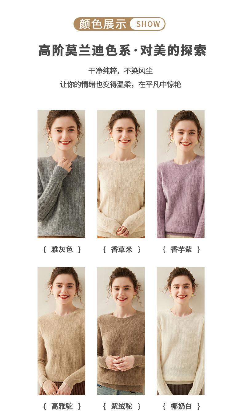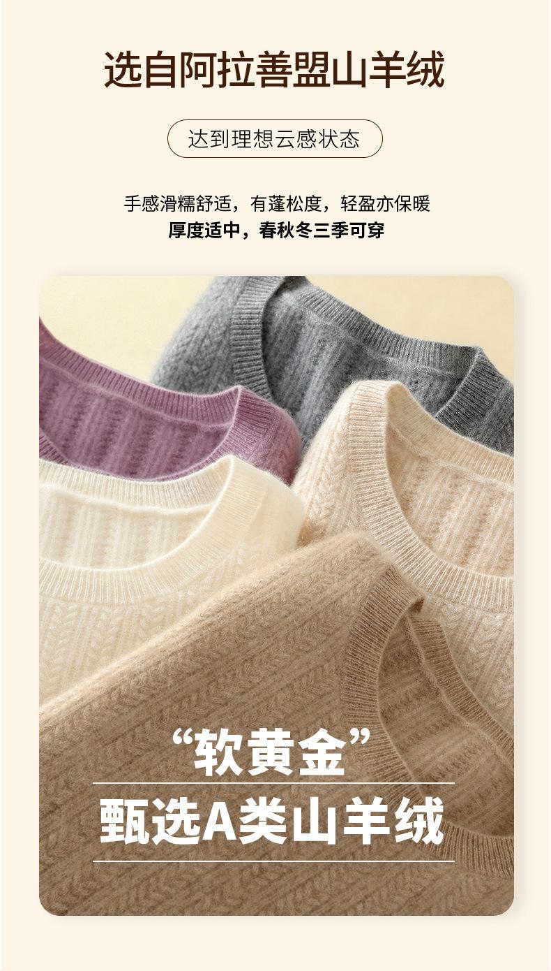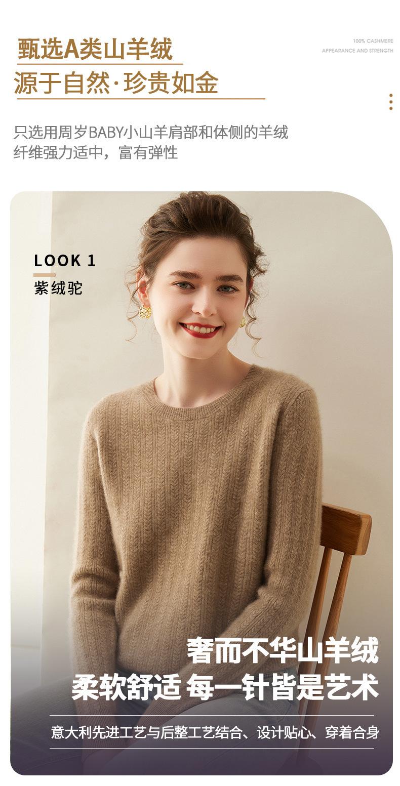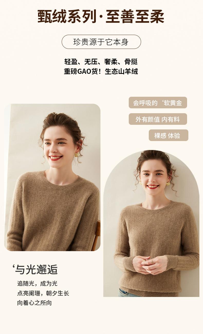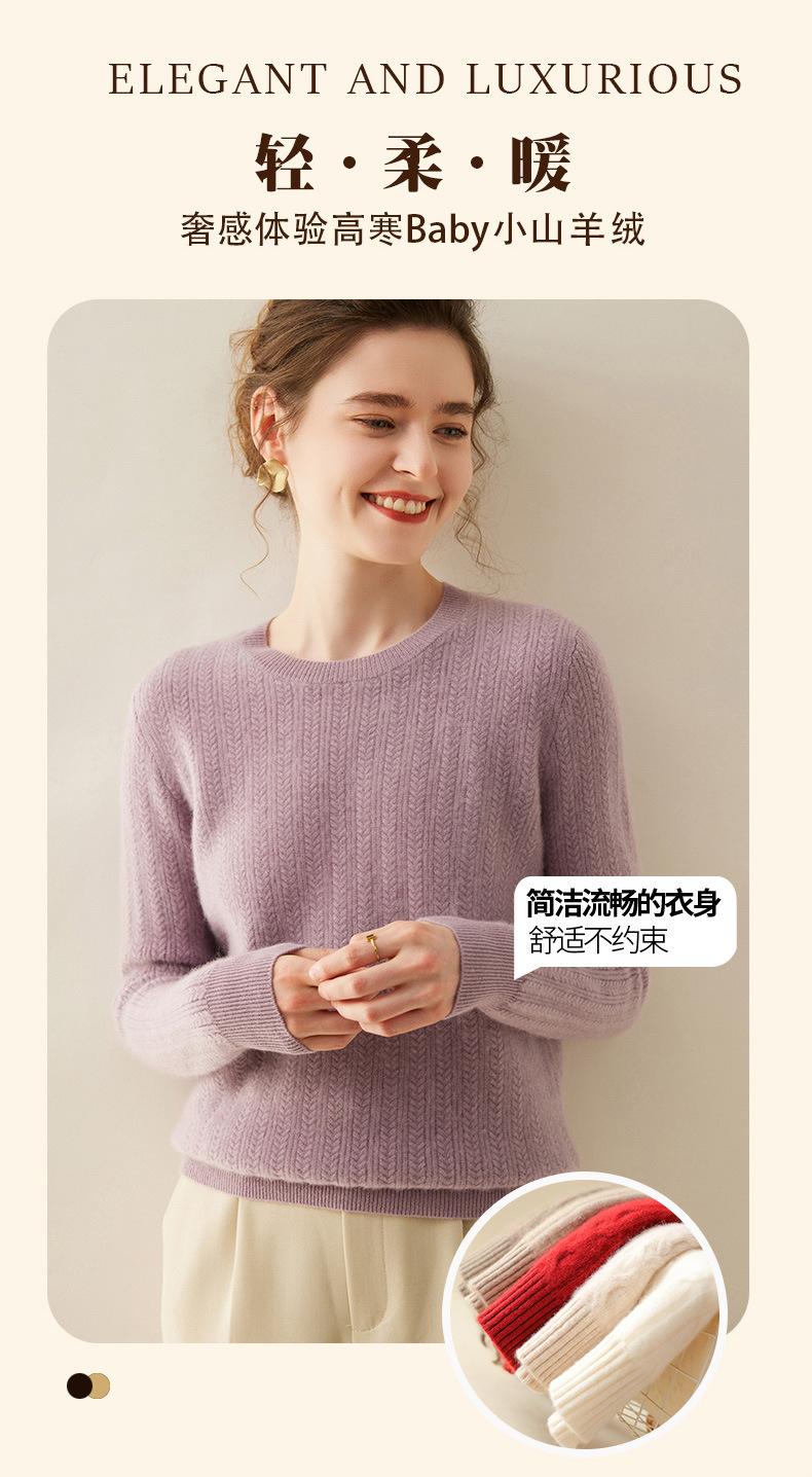 Suéter de Cachemira Tejido Otoño e Invierno Nuevo Estilo Mujer Cuello Redondo Pulóver Ajustado Tejido de Cable Pequeño Top Base Versátil Tendencia de Moda