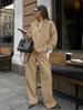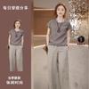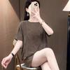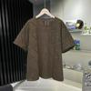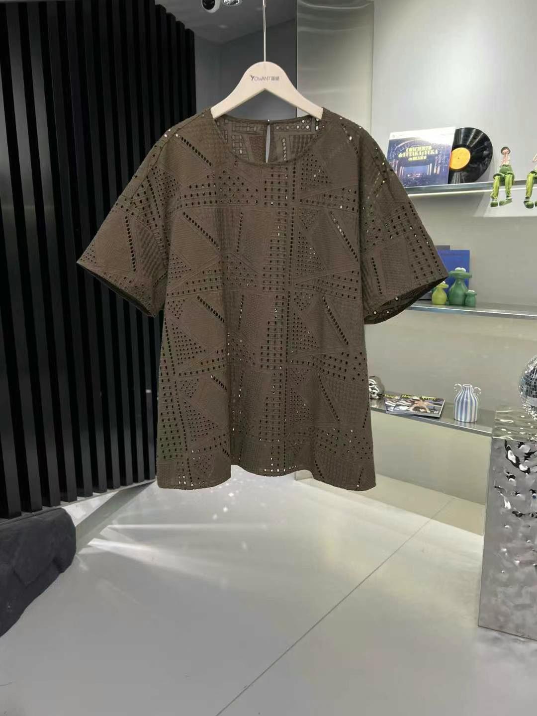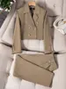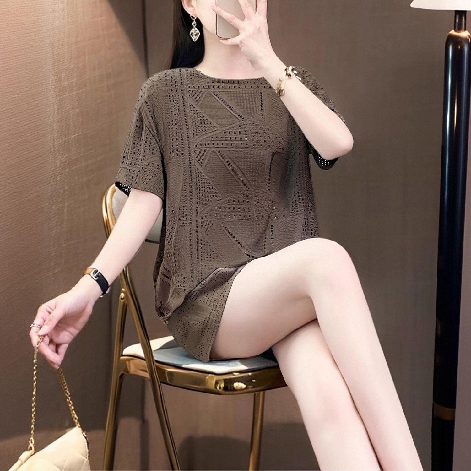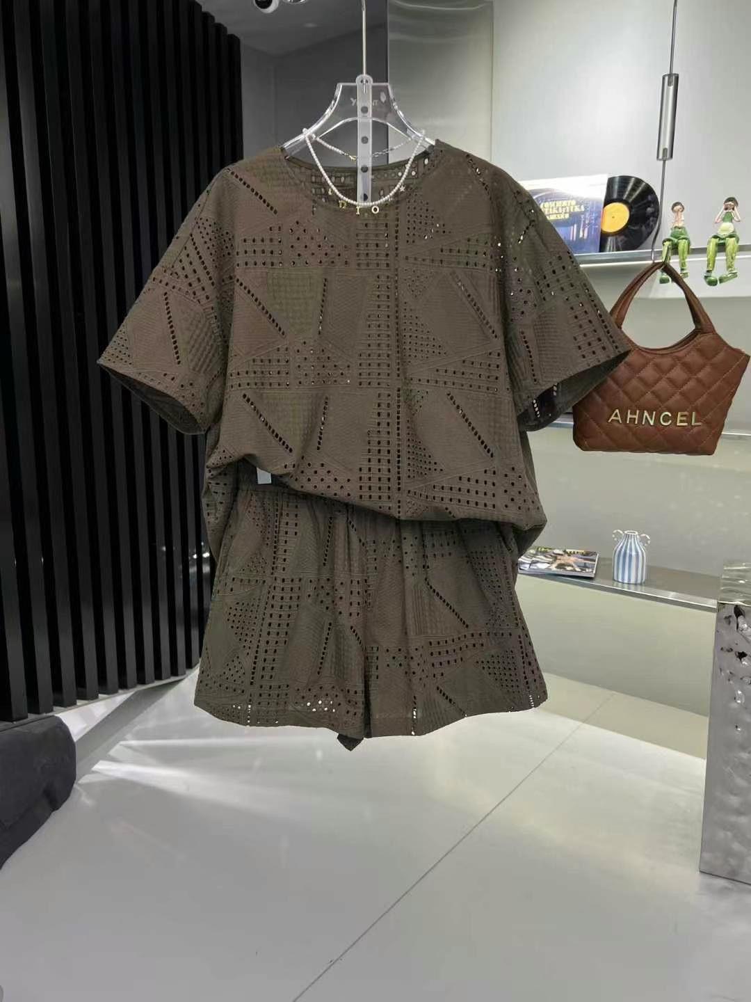 Conjunto de Moda Caqui Mujer 2025 Verano Nuevo Top de Manga Corta Calado Cintura Elástica Adelgazante Casual Conjunto de Dos Piezas