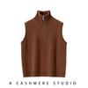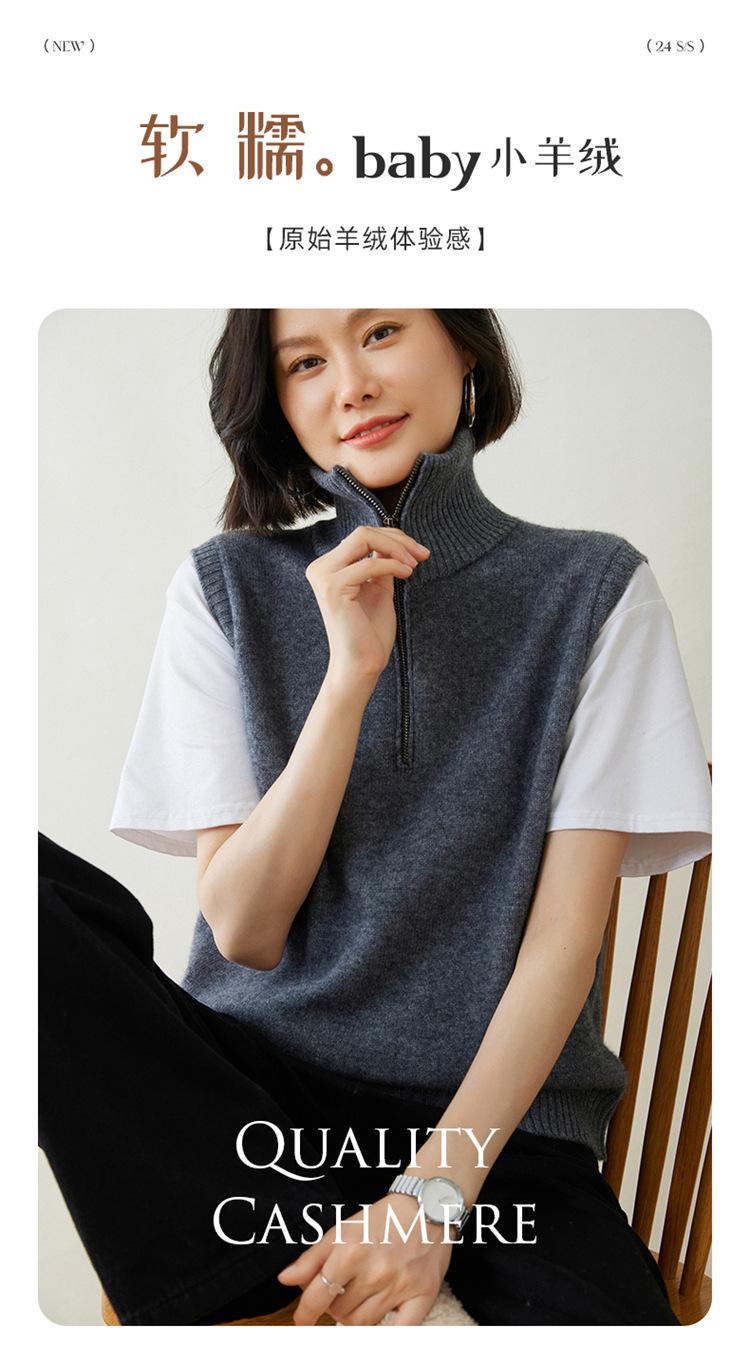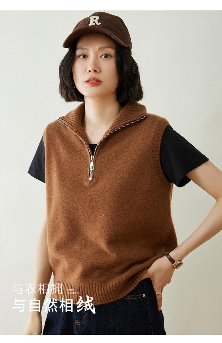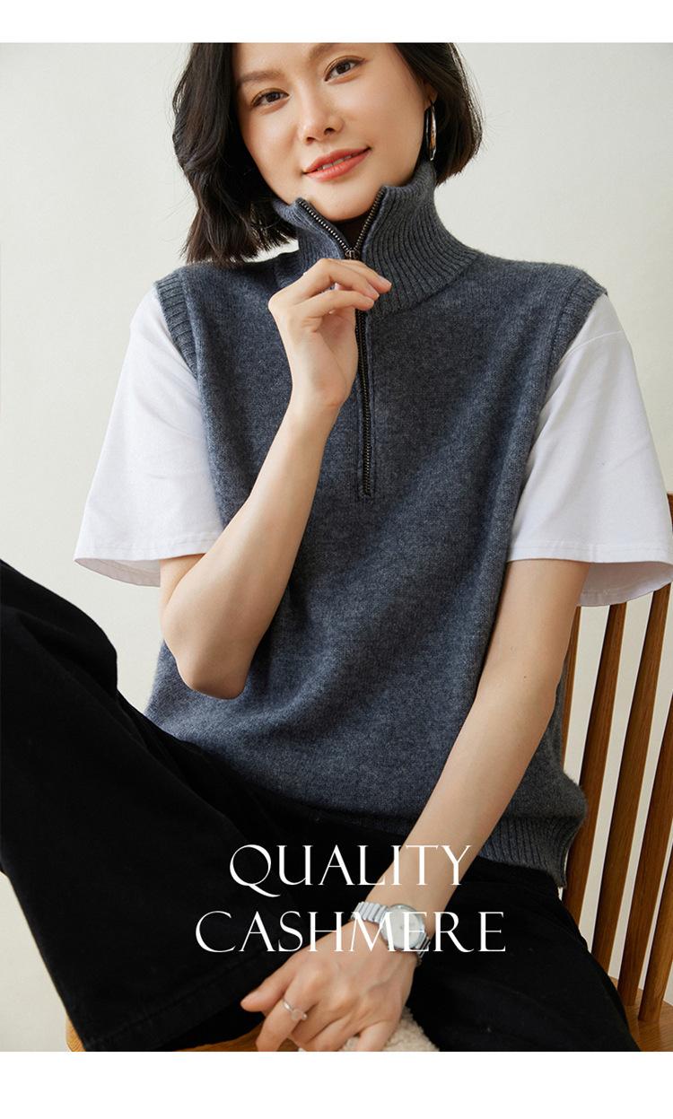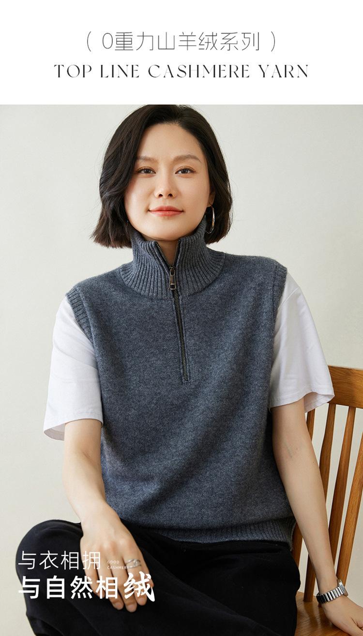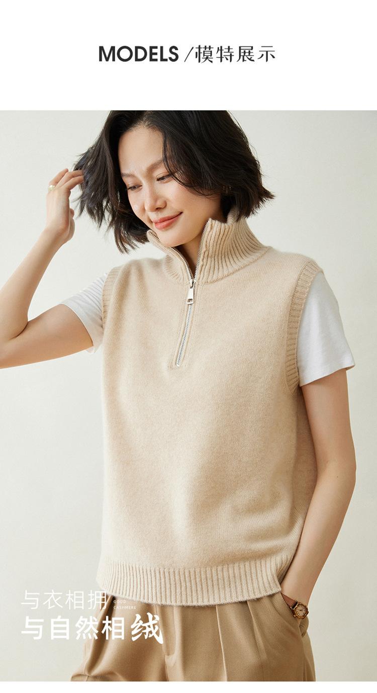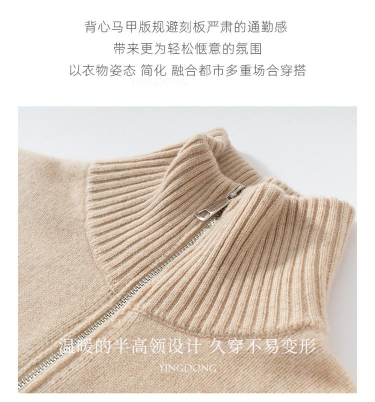 2025 Otoño/Invierno Nuevo Chaleco de Punto de Cachemira para Mujer Sin Mangas Cuello Alto Cierre de Cremallera Color Sólido Cálido Moda Versátil Holgado