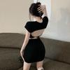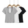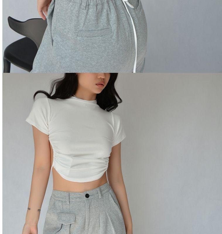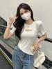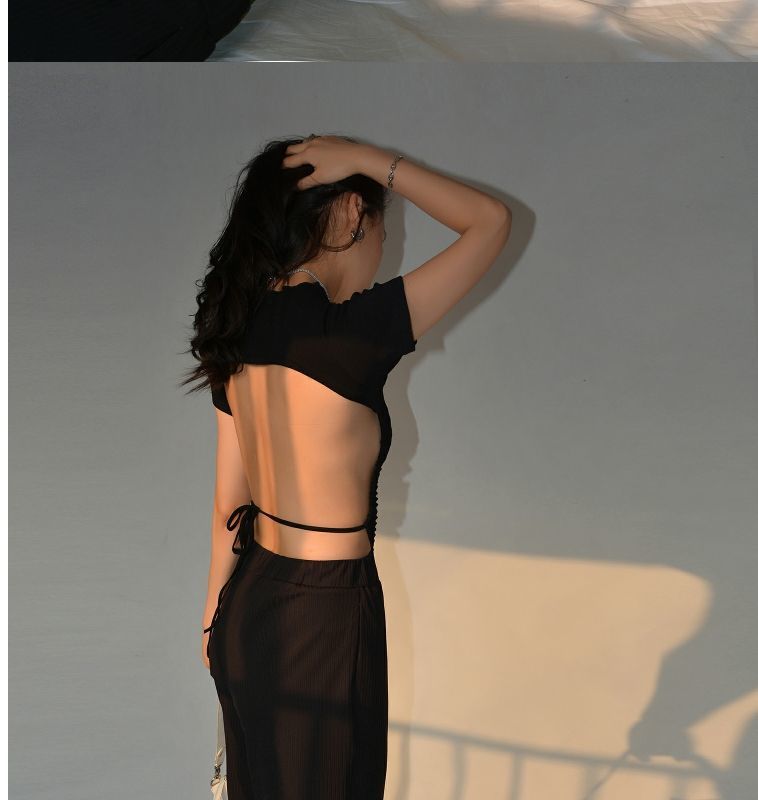 Playera Corta de Cuello Redondo para Chica Caliente para Mujer Otoño y Verano Ins Sexy Ajustada con Cordones en la Espalda Descubierta Nicho Manga Corta Top Interior