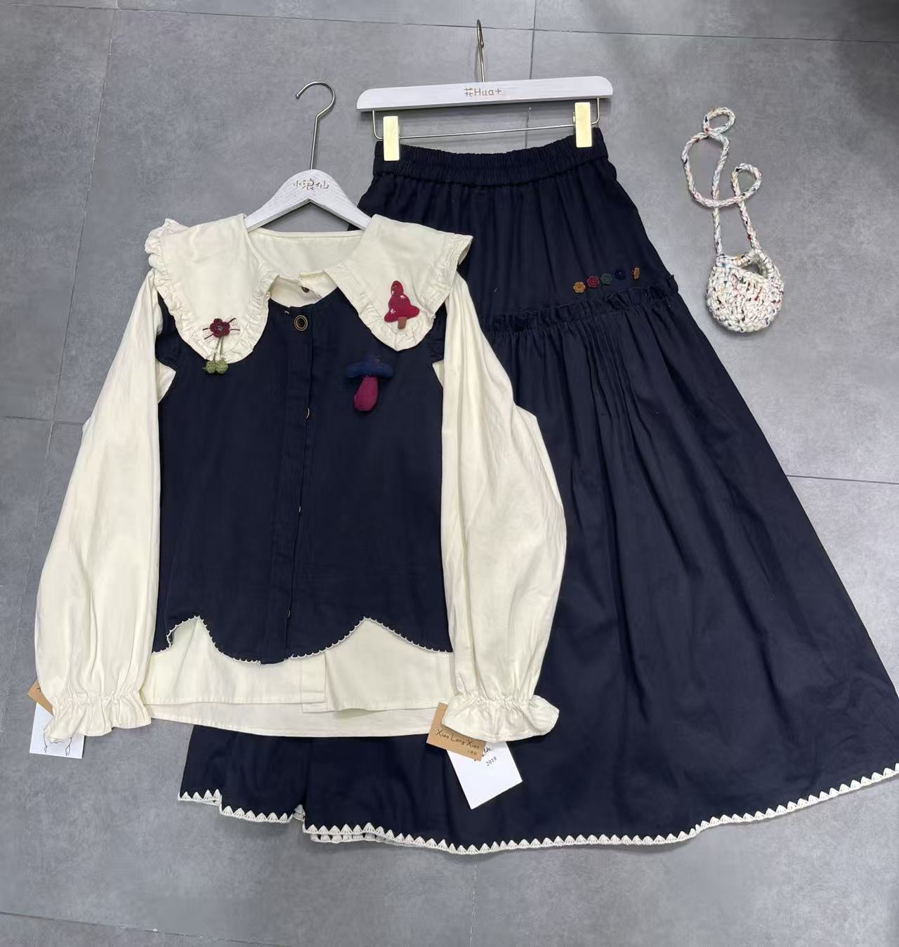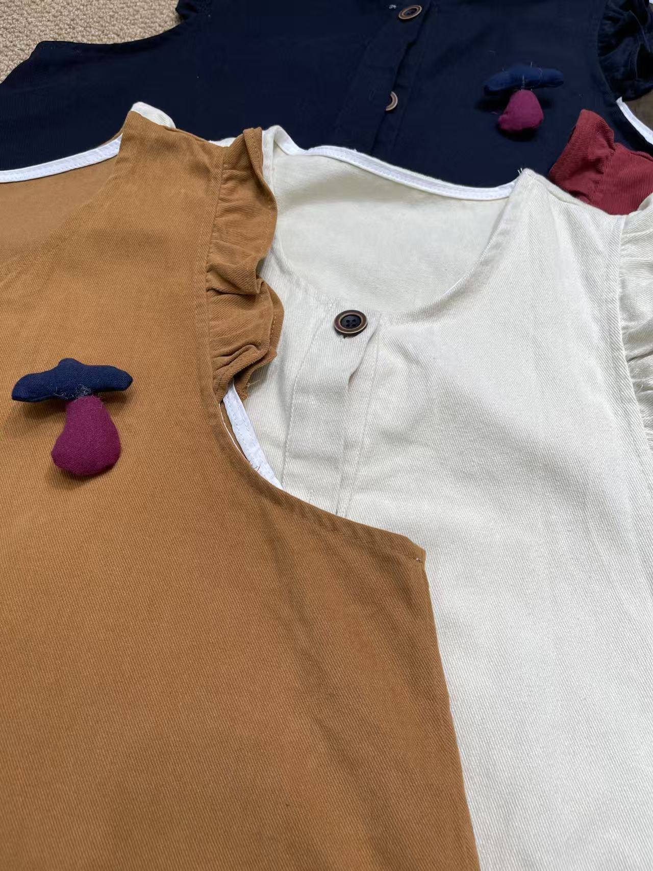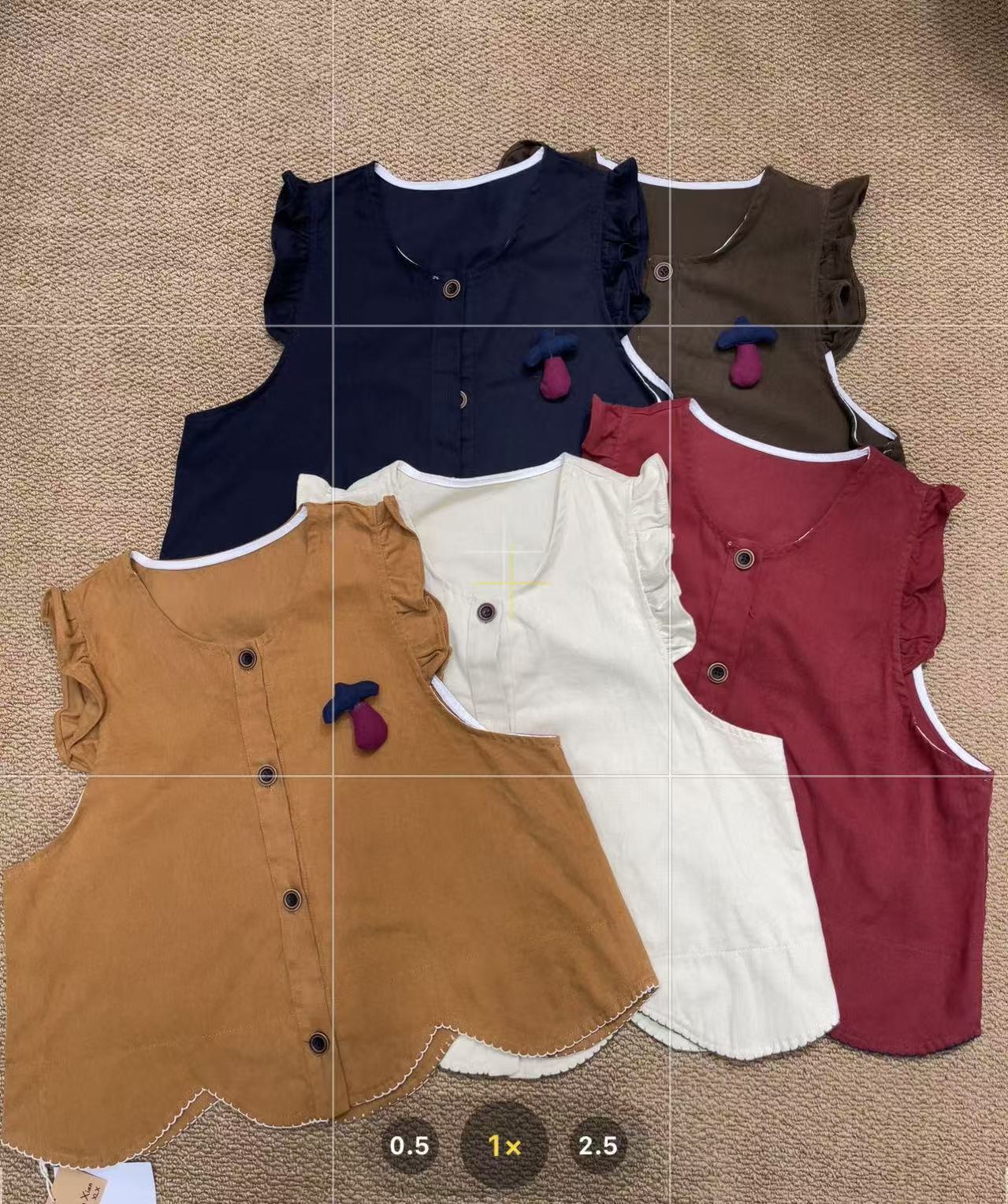 Red vest, orange vest, Brown vest, Apricot vest, Dark blue vest, white shirt, Apricot shirt, Brown shirt, Dark...