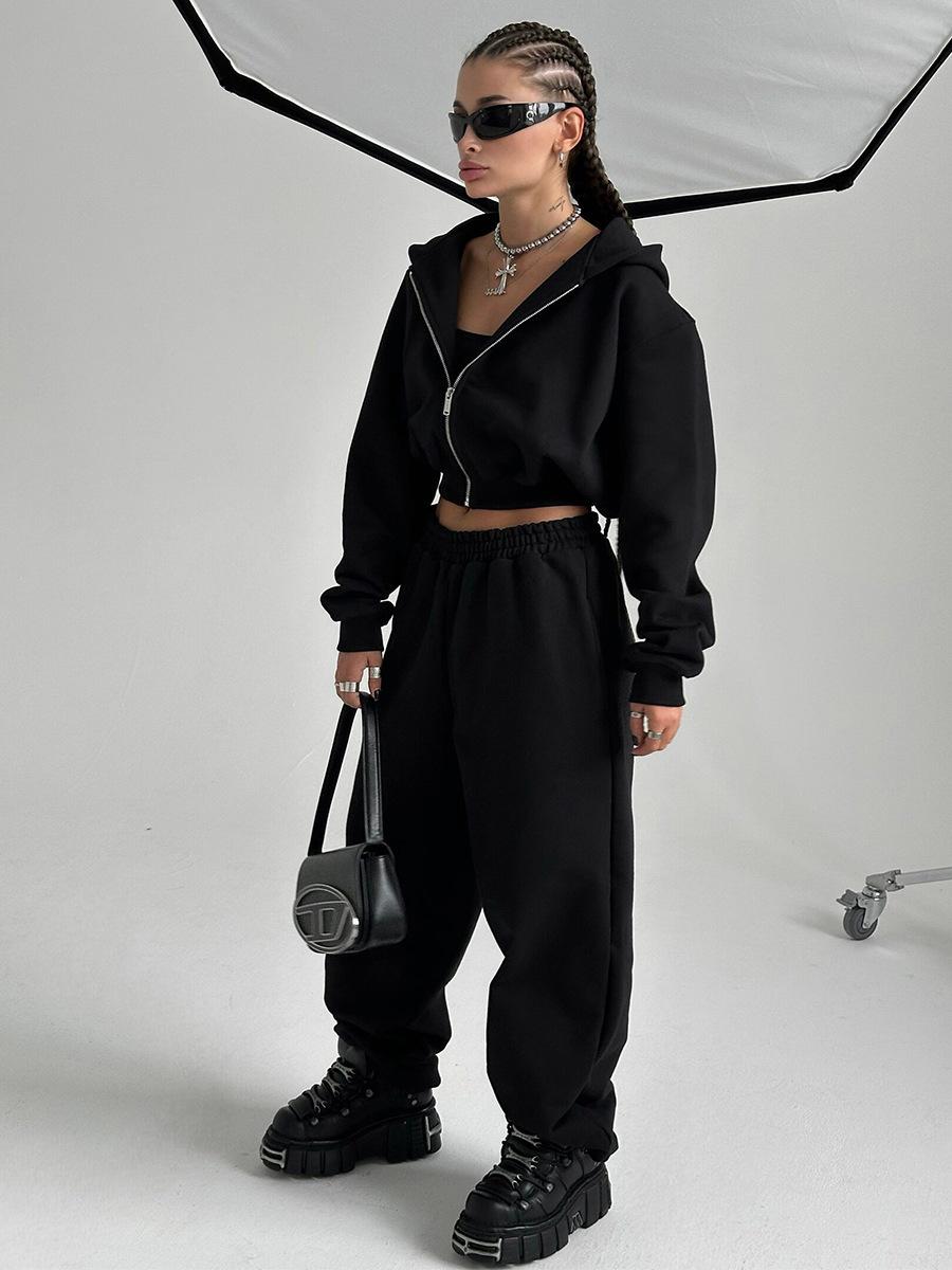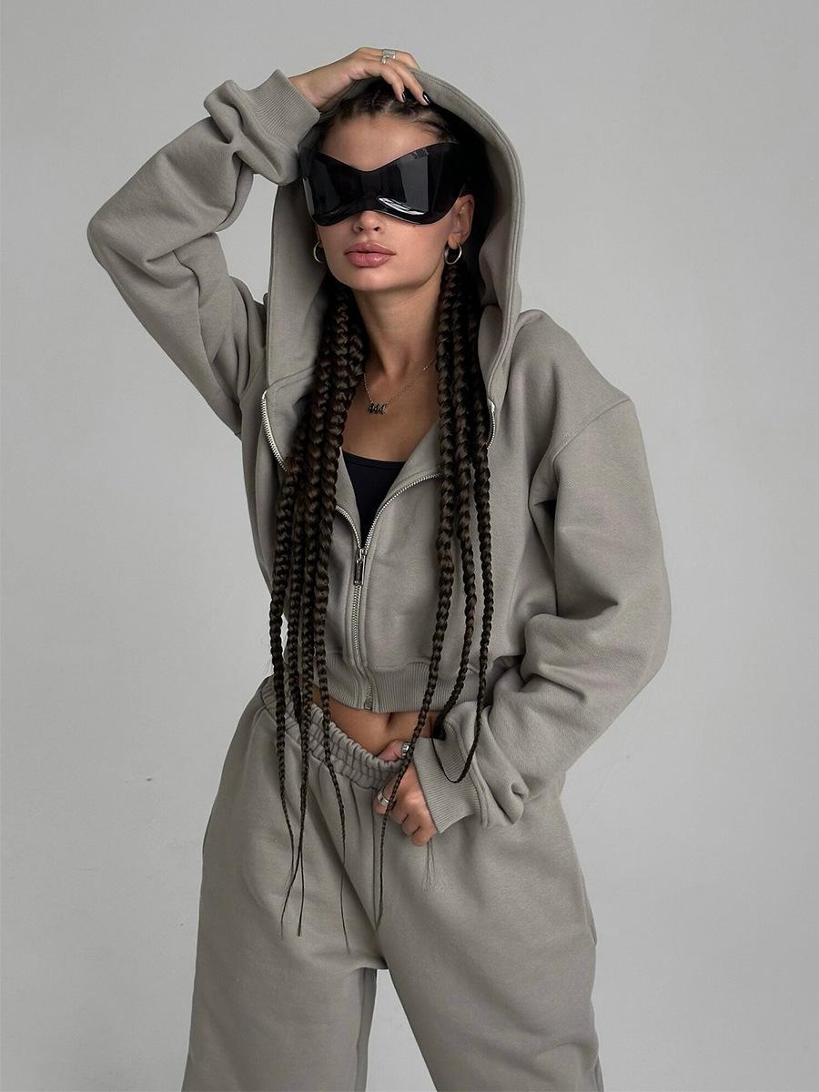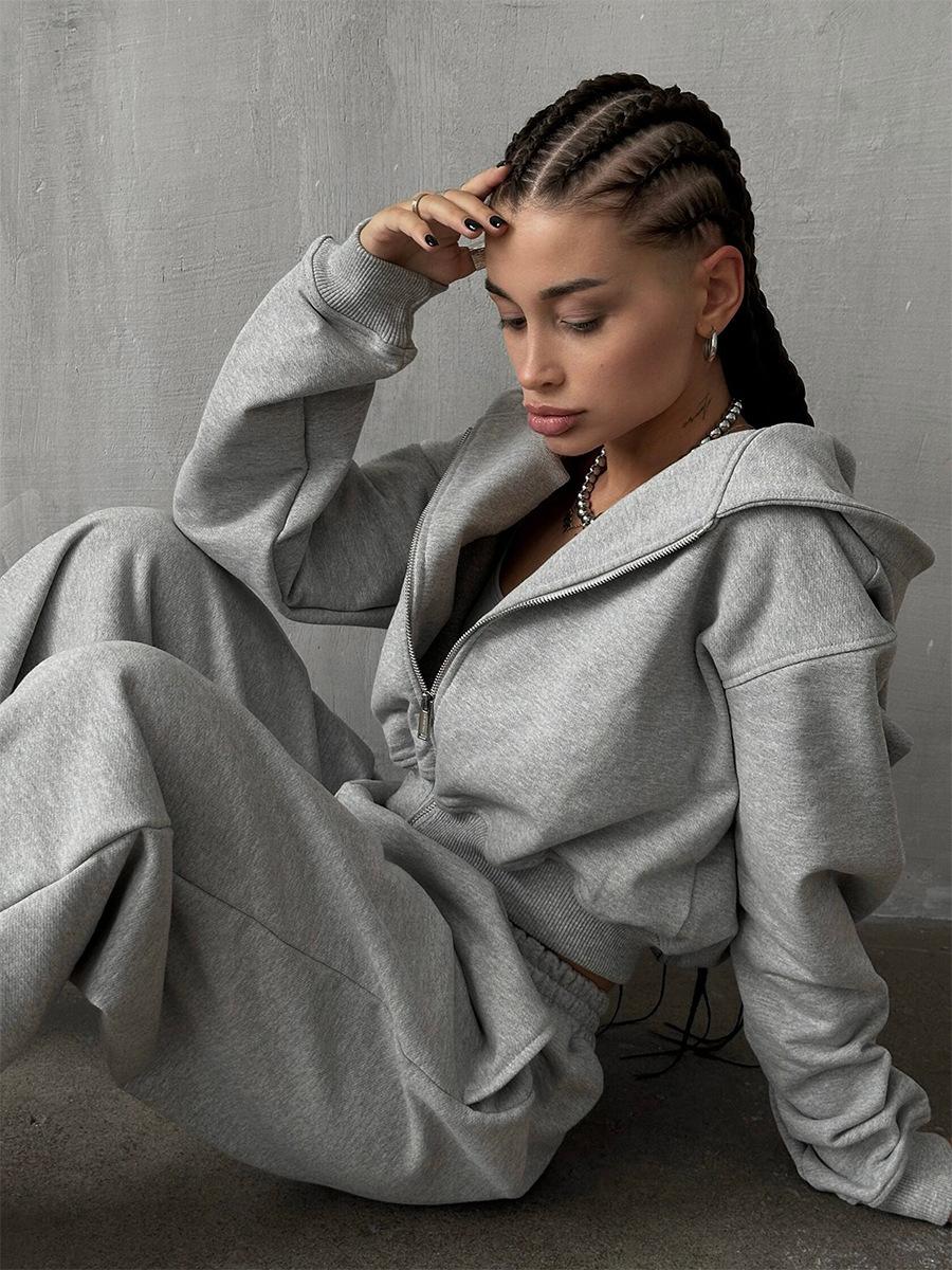 Conjunto transfronterizo corto con capucha y pantalones largos Sudadera europea y americana otoño/invierno 2025 con forro polar y pantalones deportivos conjunto deportivo