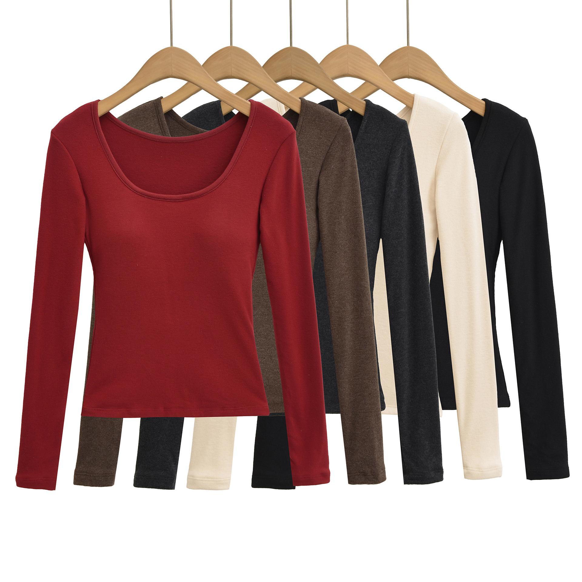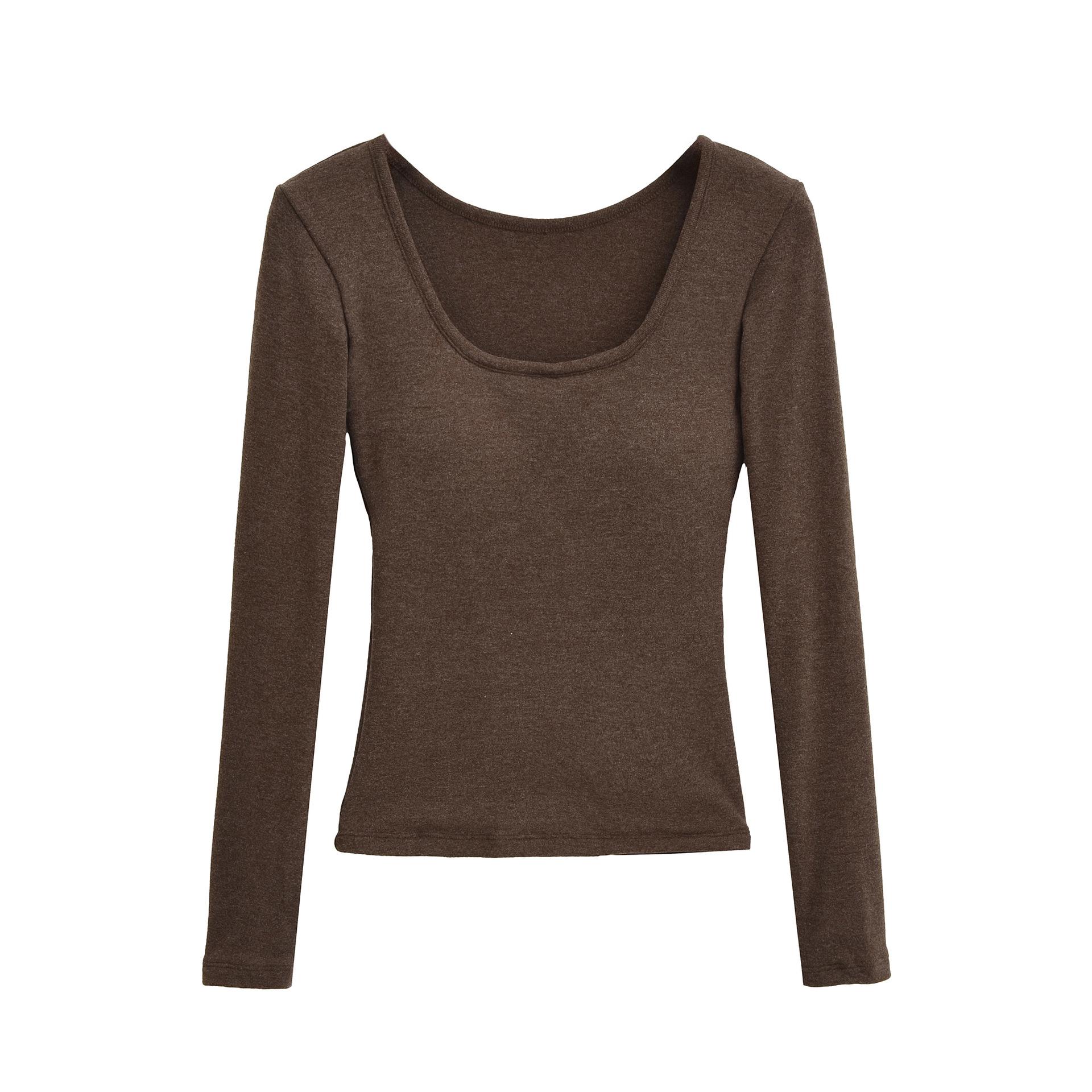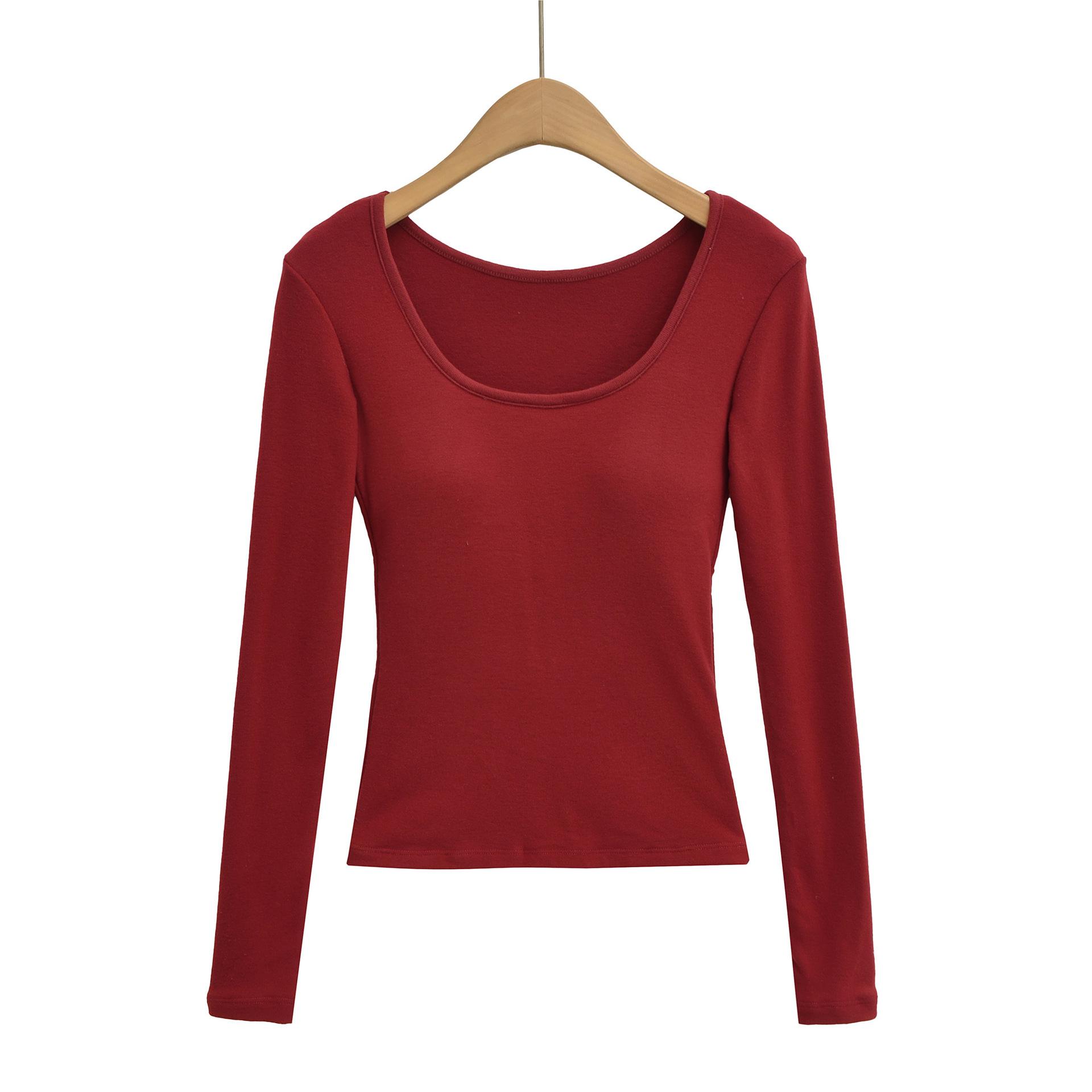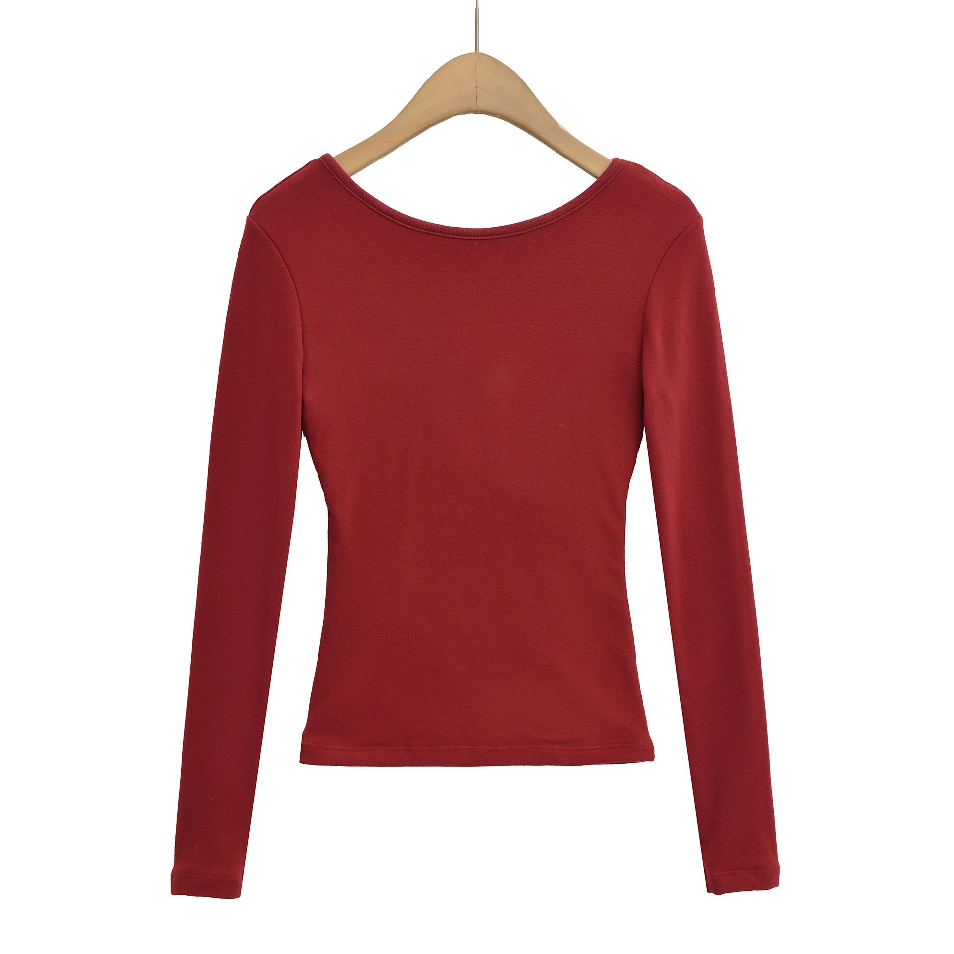 T331-Moda de chica caliente europea y americana camiseta cepillada de manga larga mujer 2025 nueva sexy ajustada camiseta básica top