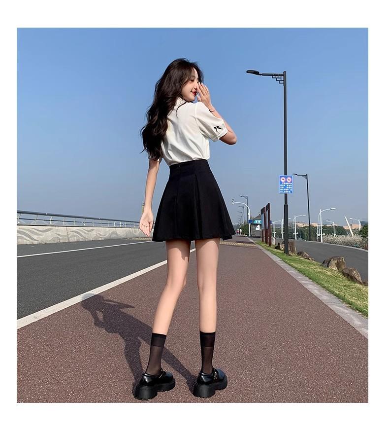 Falda Corta Negra para Mujer Verano 2025 Nuevo Estilo Ajustada a las Caderas Traje Cintura Alta Look Adelgazante Falda de Moda Acampanada con Vuelo