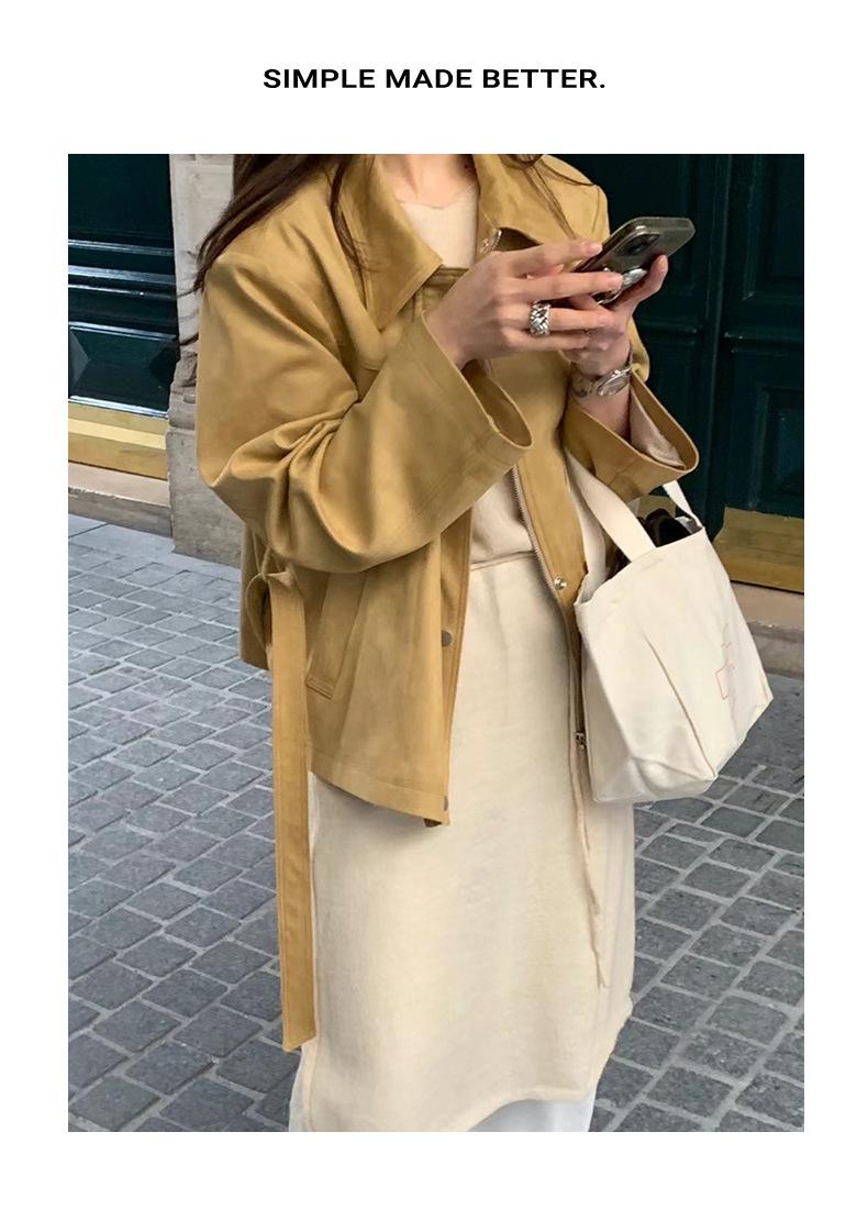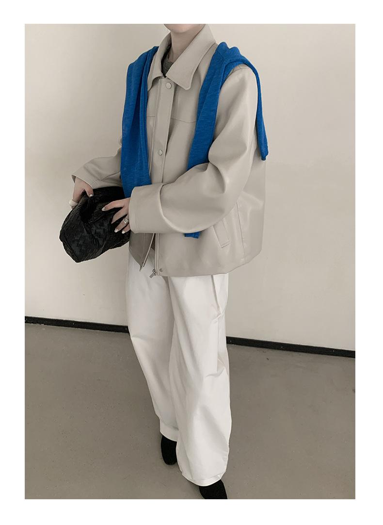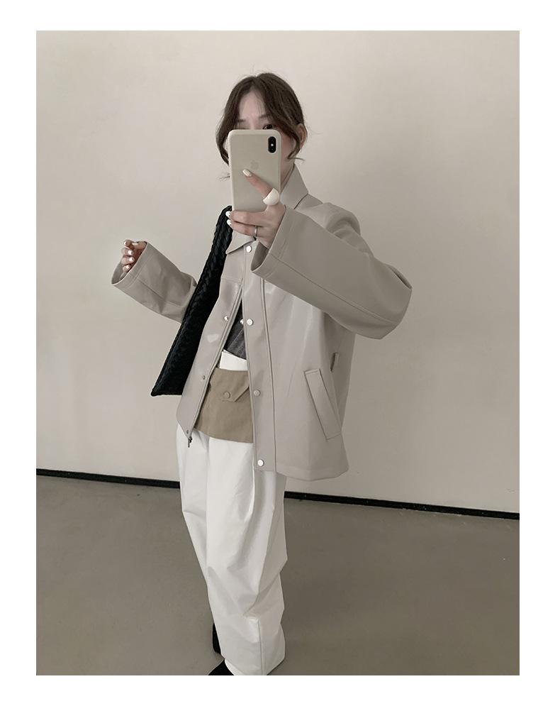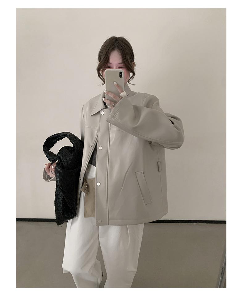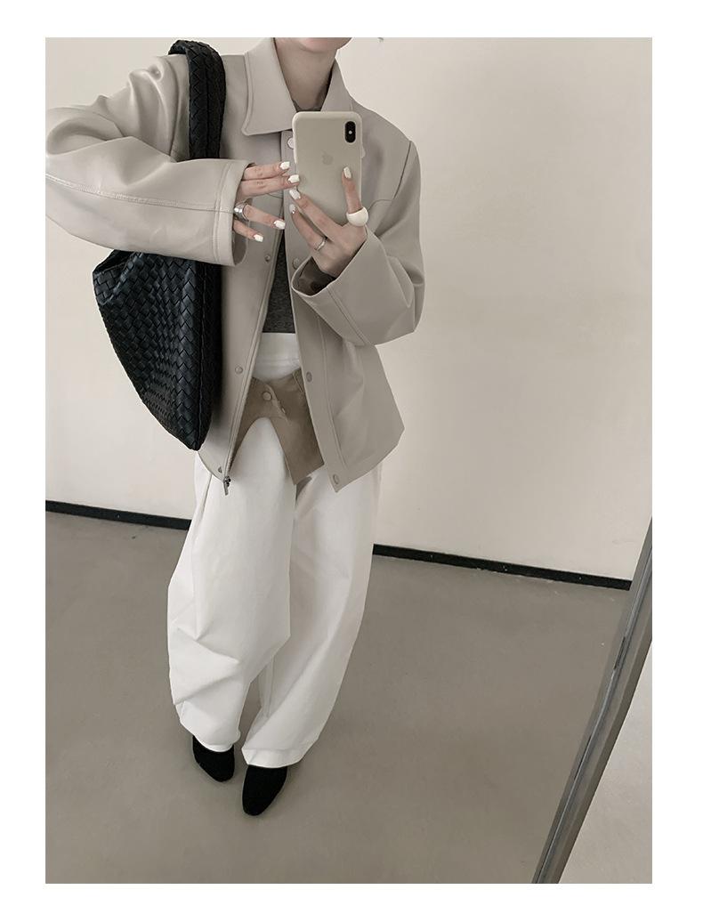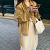 2025 Otoño Nuevo Coreano Dongdaemun Dulce Cool Casual Solapa Corbata Adelgazante Cremallera Chaqueta de Cuero Ropa Exterior Mujer