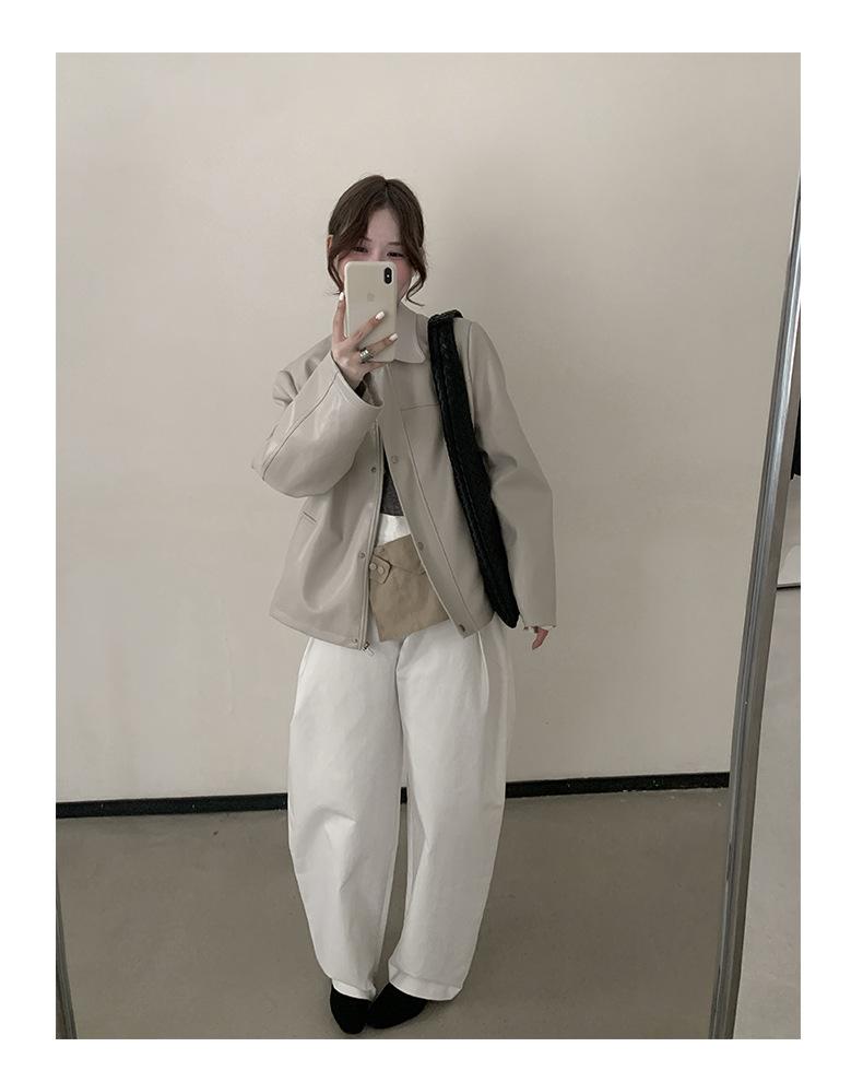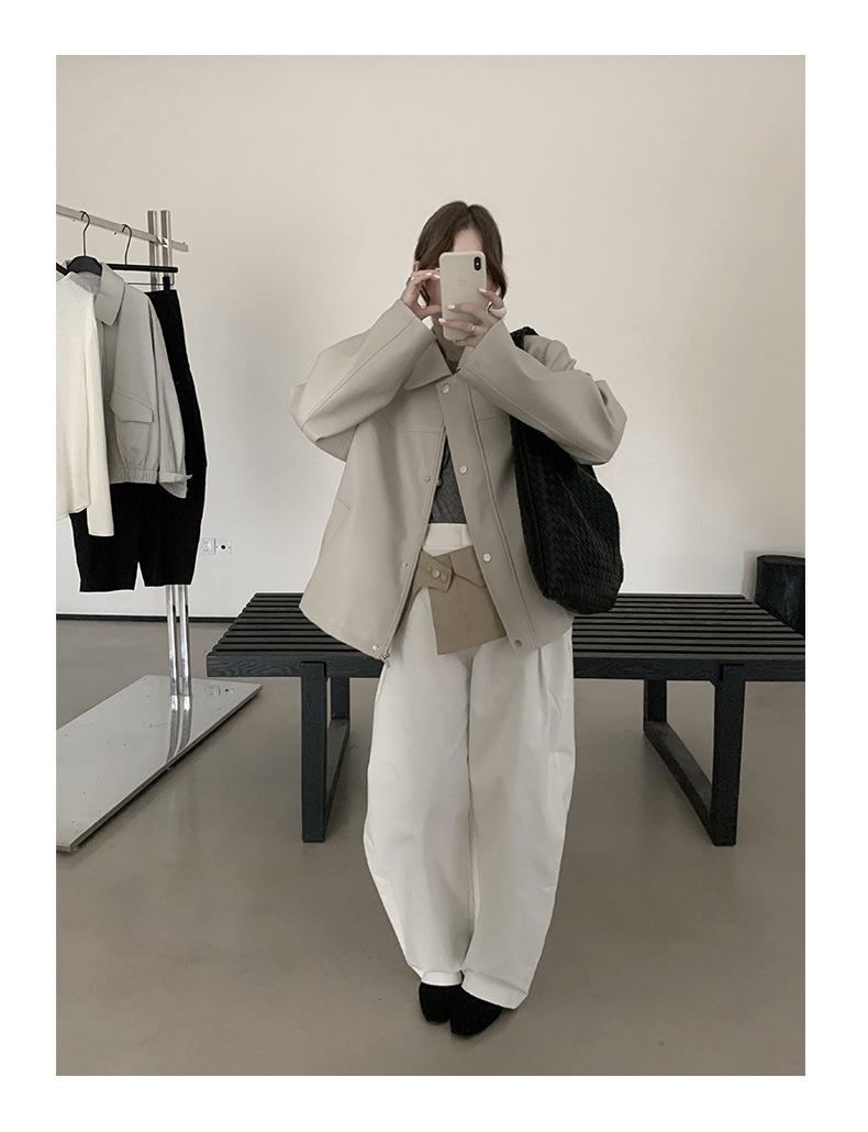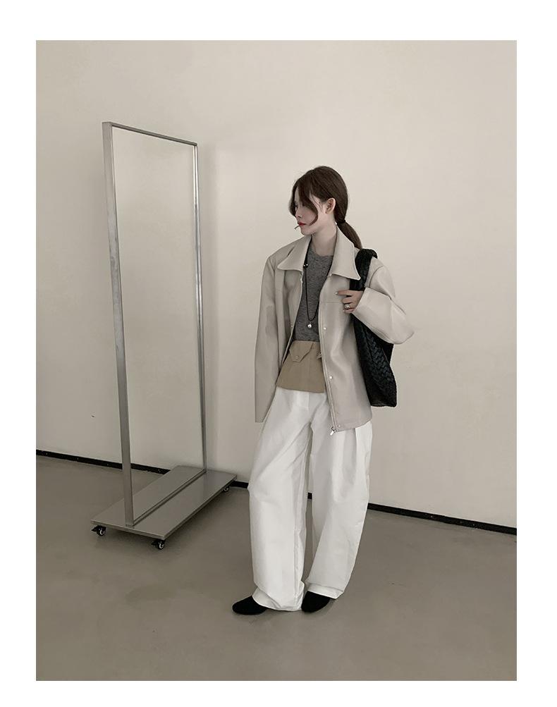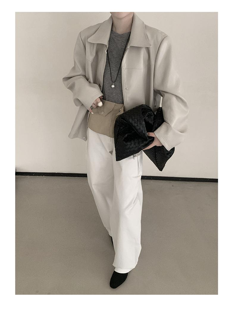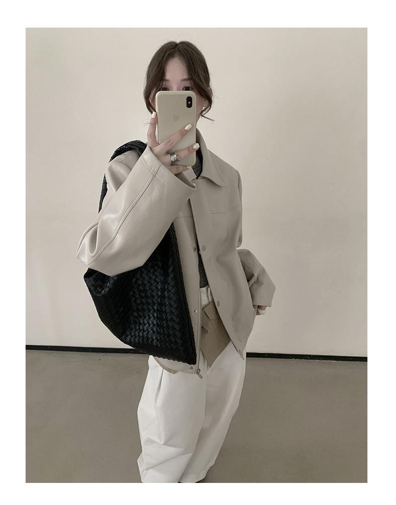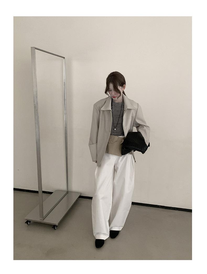 2025 Otoño Nuevo Coreano Dongdaemun Dulce Cool Casual Solapa Corbata Adelgazante Cremallera Chaqueta de Cuero Ropa Exterior Mujer