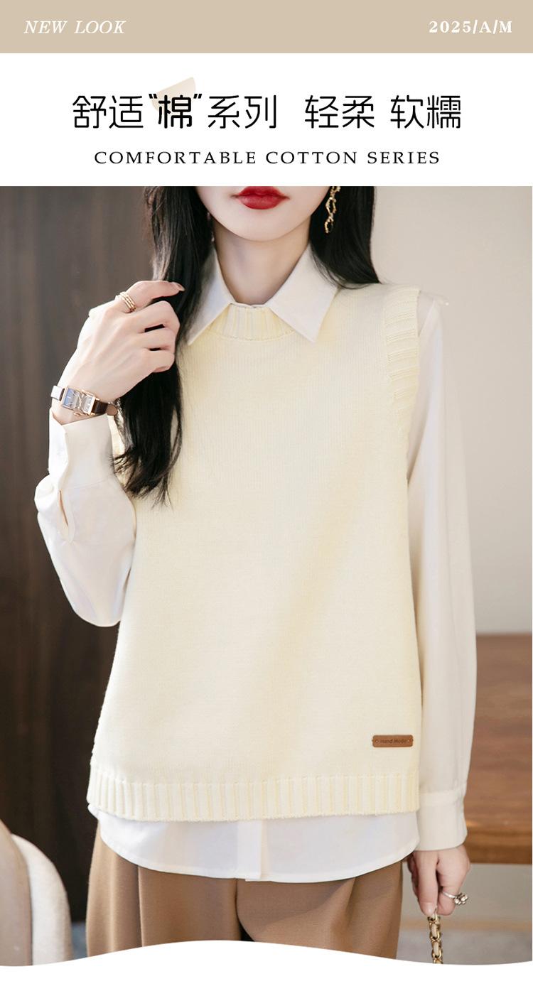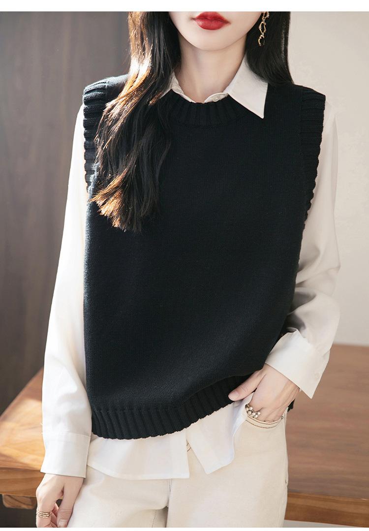 Nuevo Otoño Temprano 2025 Hilo de Algodón Puro Chaleco Tejido de Cuello Redondo Color Sólido Sin Mangas Suéter Holgado para Capas Camiseta sin Mangas