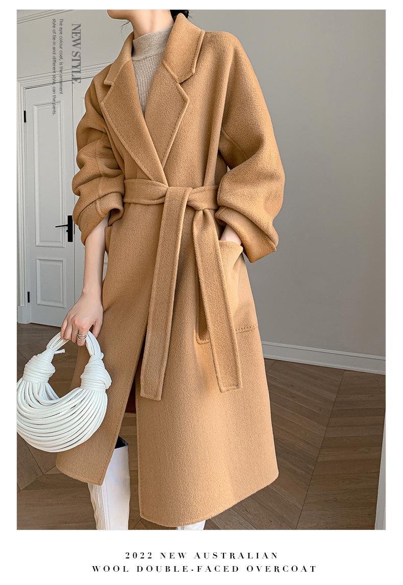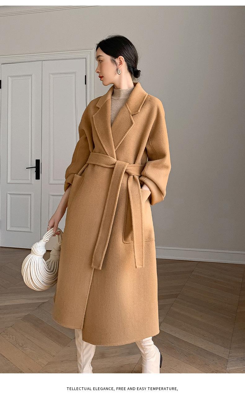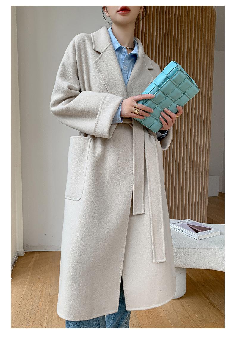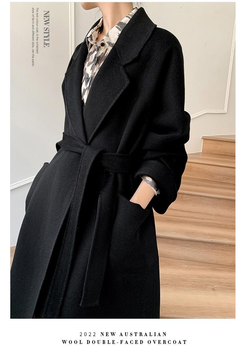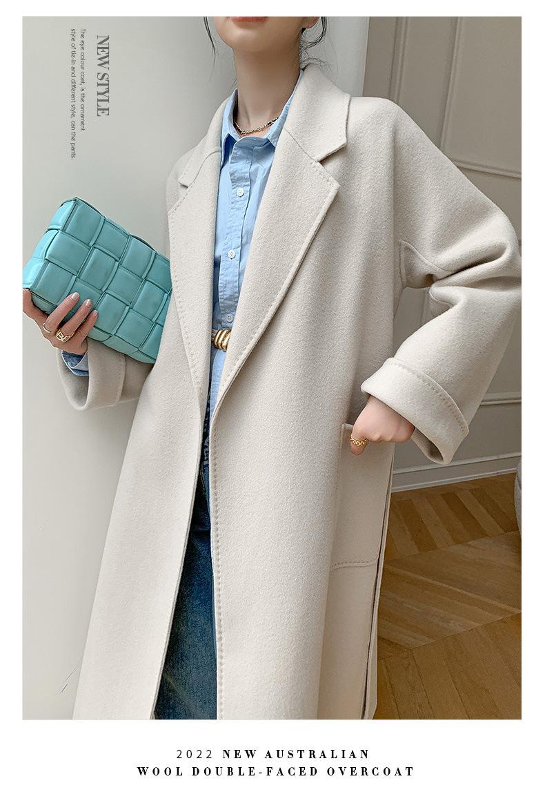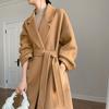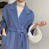 Otoño e Invierno Nuevo Abrigo de Tweed de Doble Cara de Lana Pura para Mujer Solapa Grande Largo Medio Estilo Coreano Moda con Cordones Abrigo Grueso