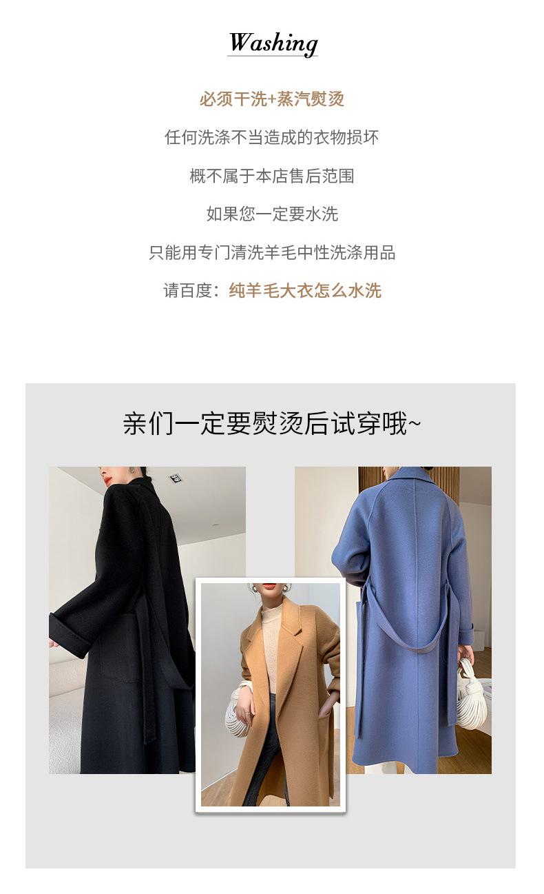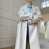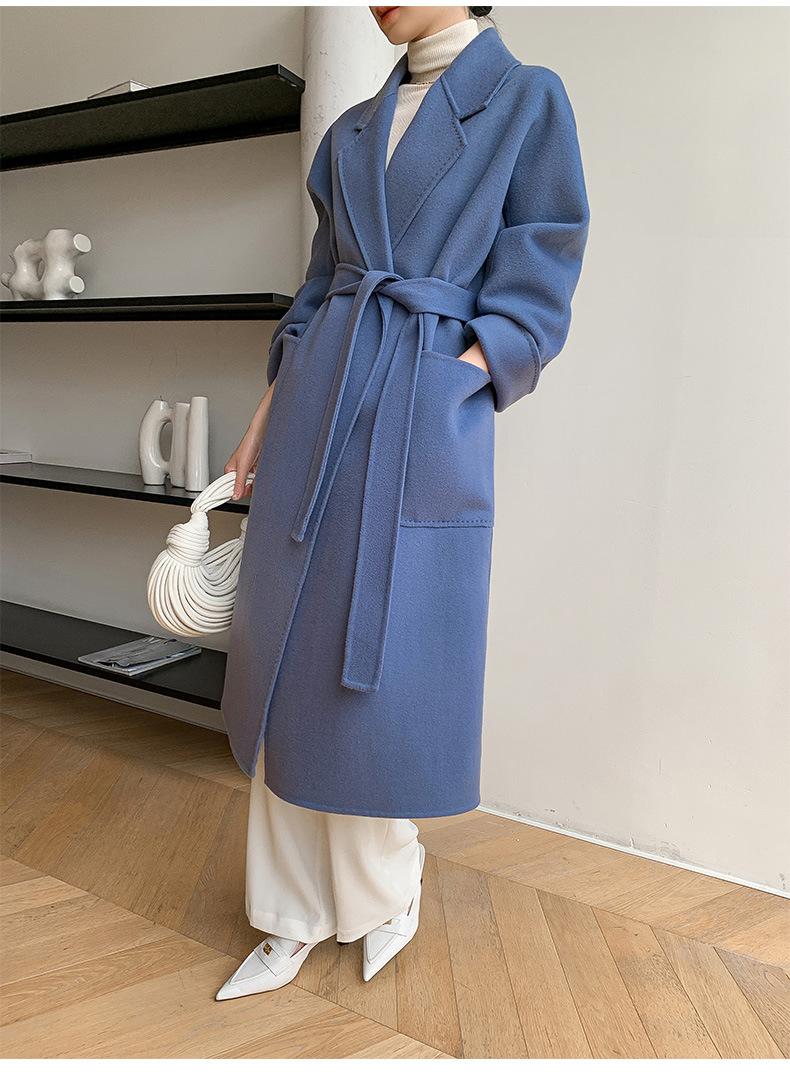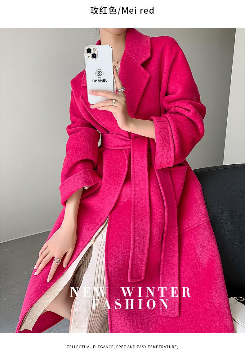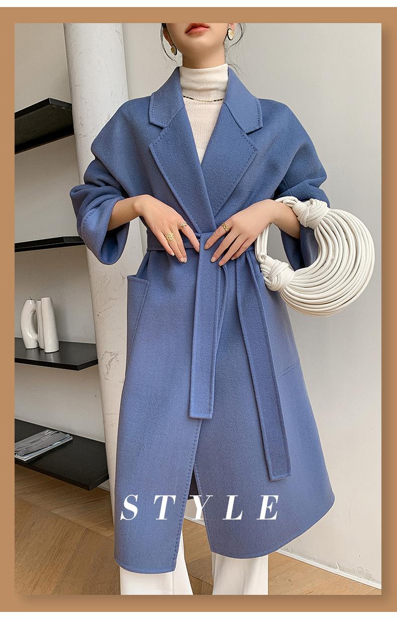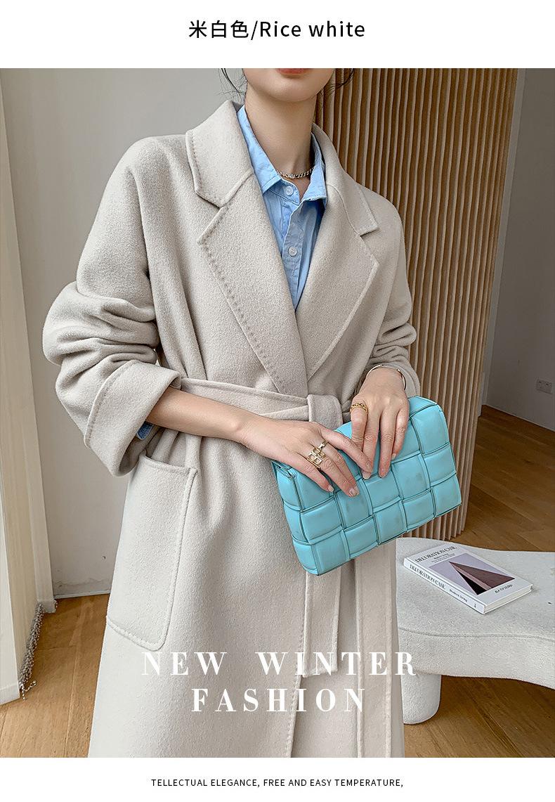 Otoño e Invierno Nuevo Abrigo de Tweed de Doble Cara de Lana Pura para Mujer Solapa Grande Largo Medio Estilo Coreano Moda con Cordones Abrigo Grueso