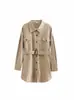Exportación Transfronteriza Ropa de Mujer 2025 Otoño Europeo y Americano Solapa Manga Larga con Lazo en la Cintura Chaqueta Cortavientos Larga para Mujer A711488F