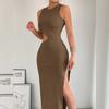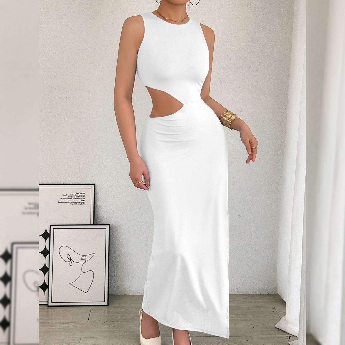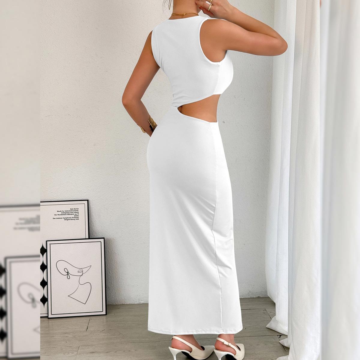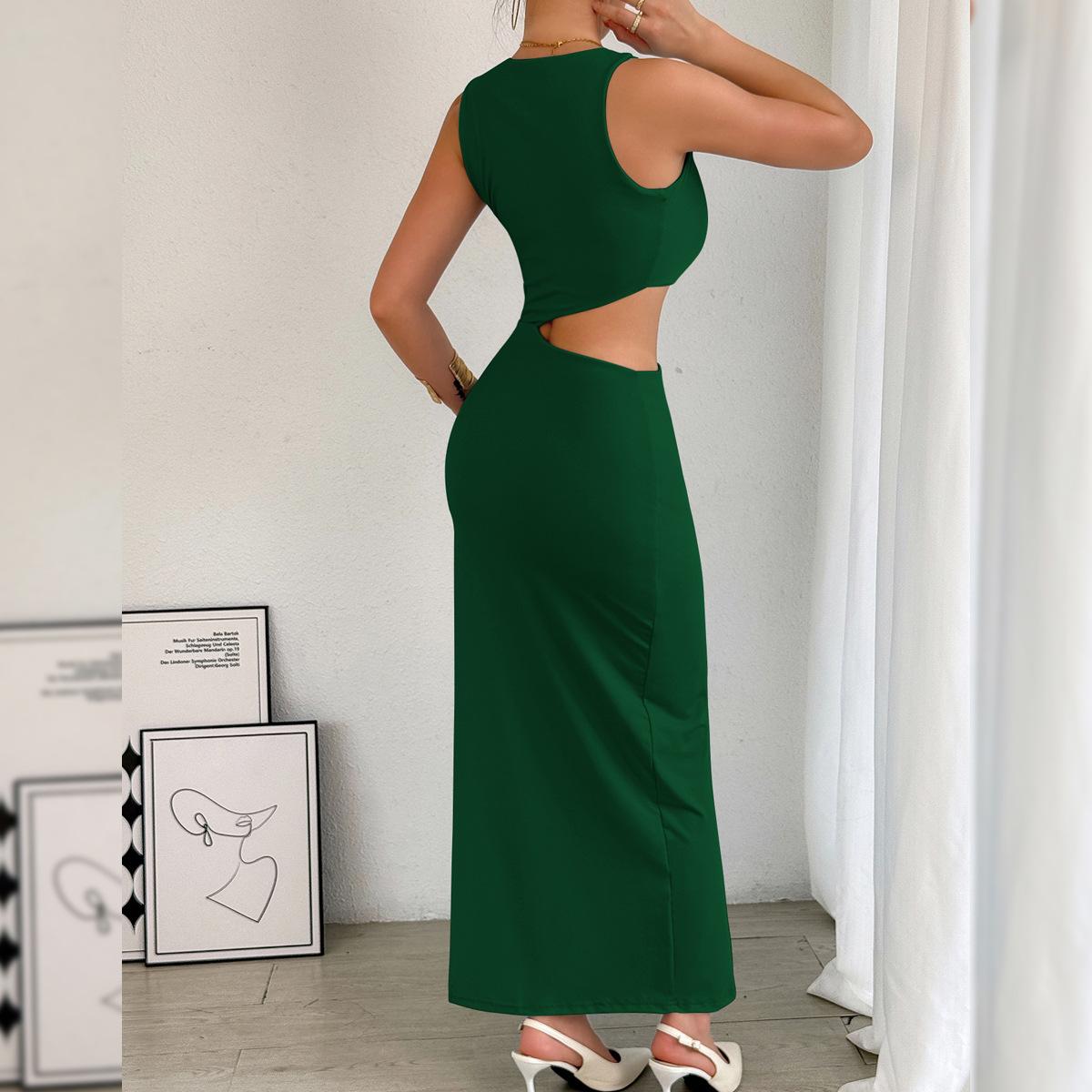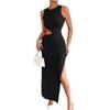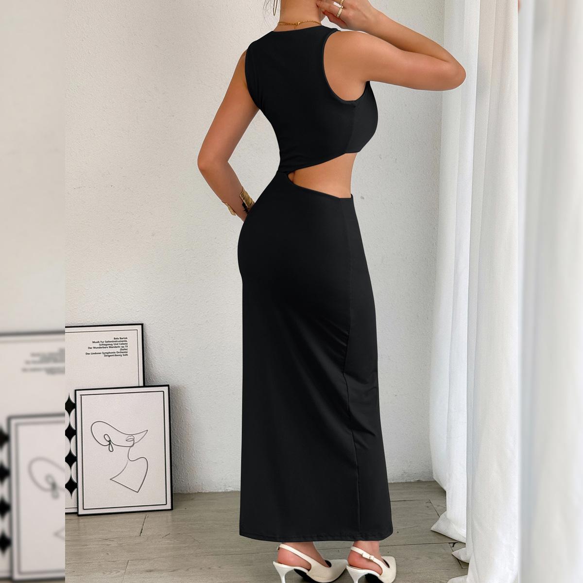2025 Amazon Transfronterizo Nuevo Estilo Vestido Largo para Mujer Europeo y Americano Sin Mangas Calado Abertura Vestido Largo Vestido Sexy de Chica Caliente