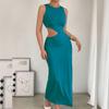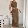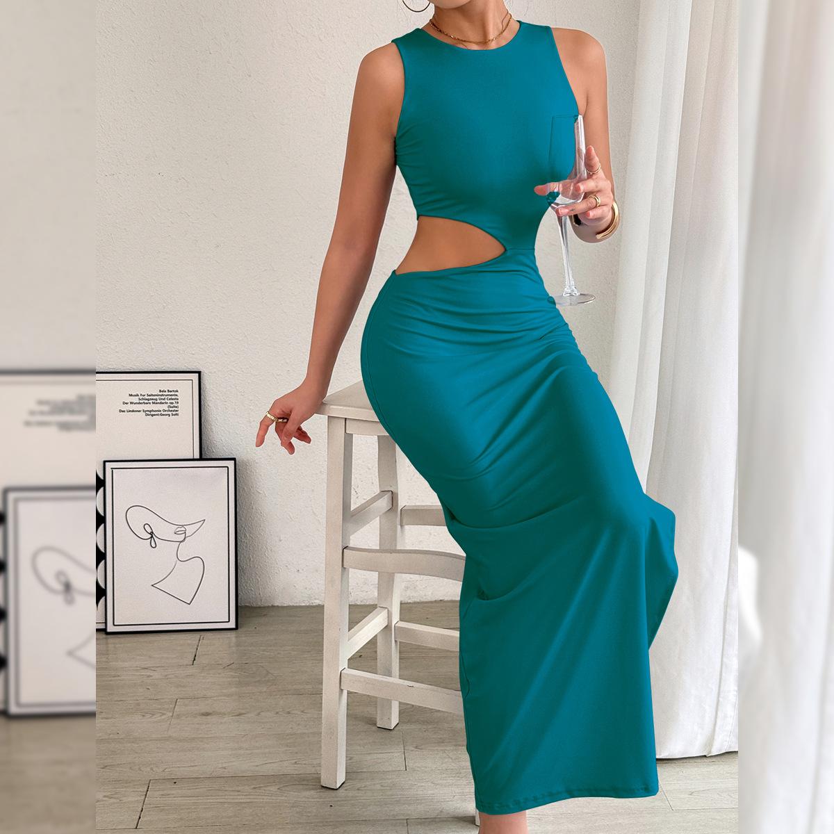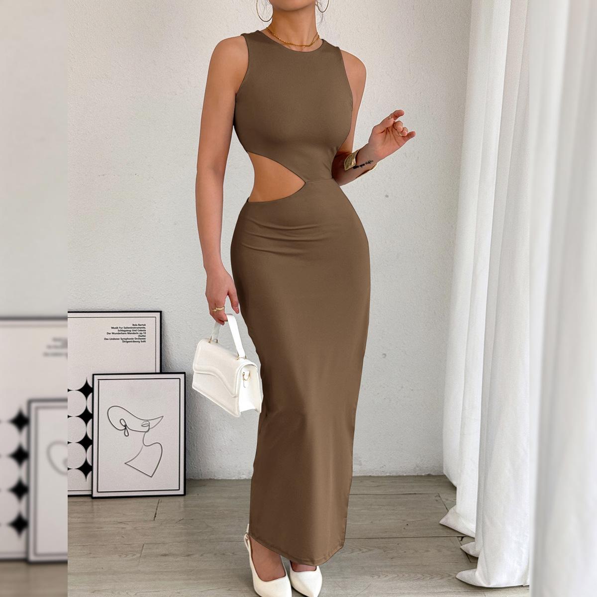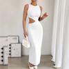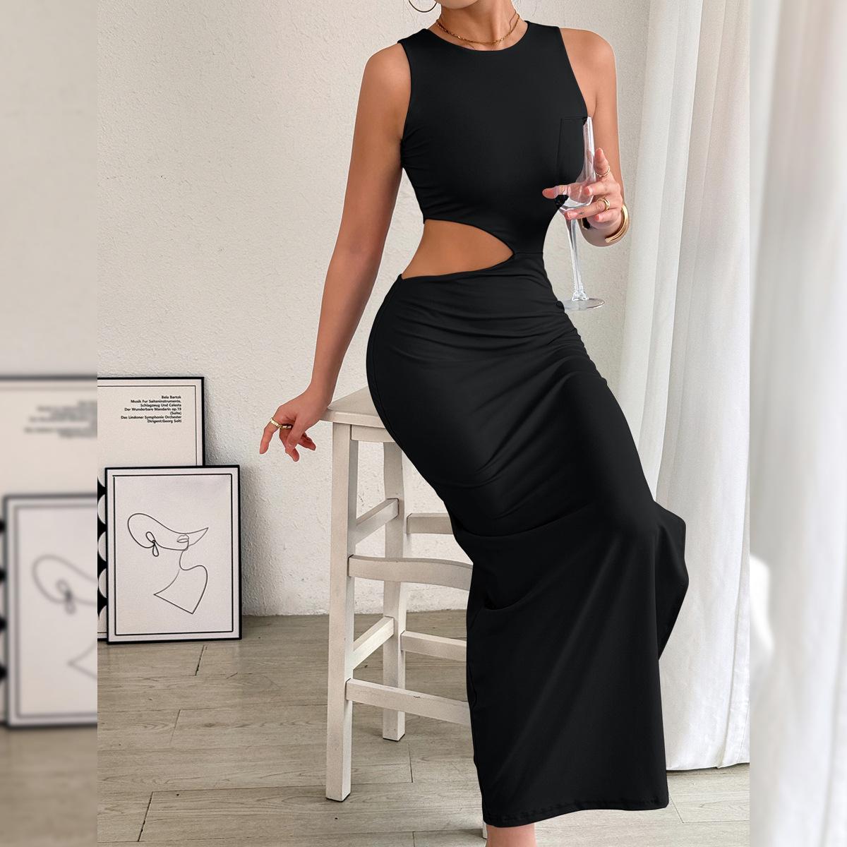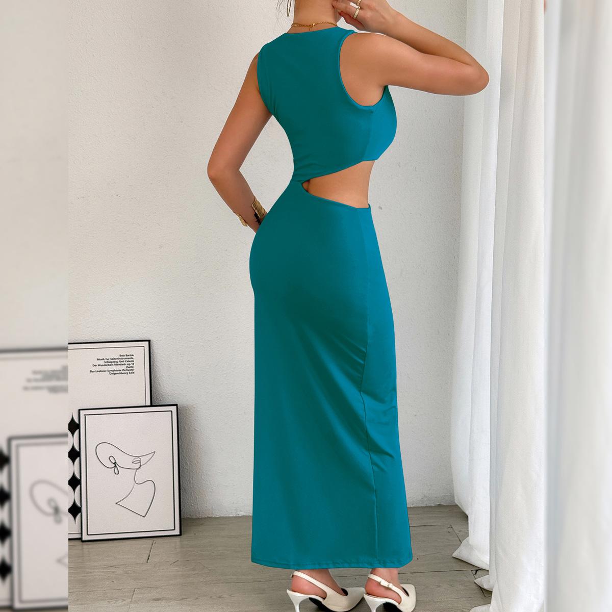2025 Amazon Transfronterizo Nuevo Estilo Vestido Largo para Mujer Europeo y Americano Sin Mangas Calado Abertura Vestido Largo Vestido Sexy de Chica Caliente