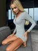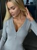 Ropa de Mujer Transfronteriza Europea y Americana Amazon 2025 Primavera/Verano Nuevo Mono Corto Ajustado con Botones y Cuello en V de Manga Larga Color Sólido