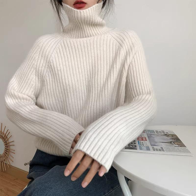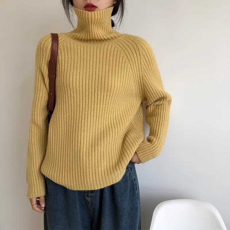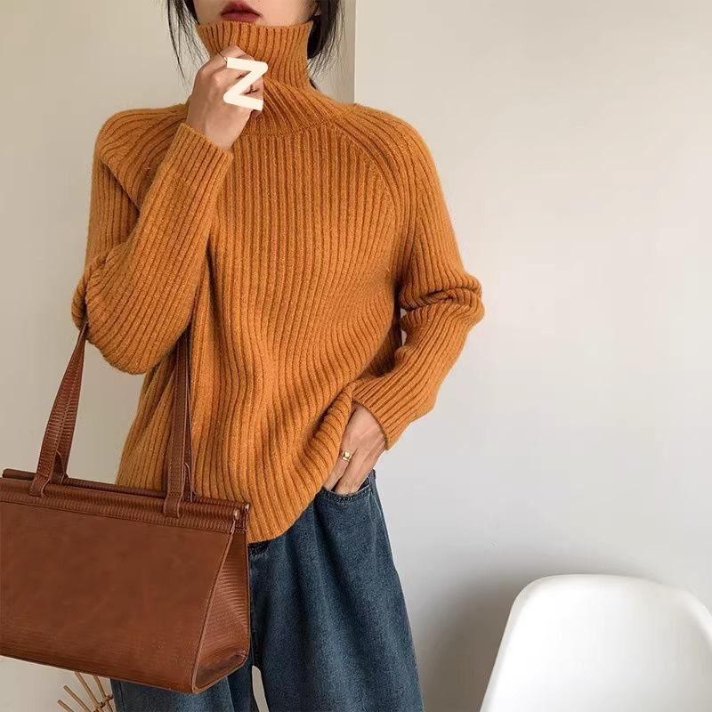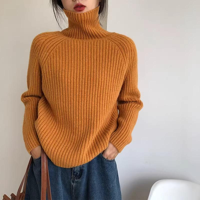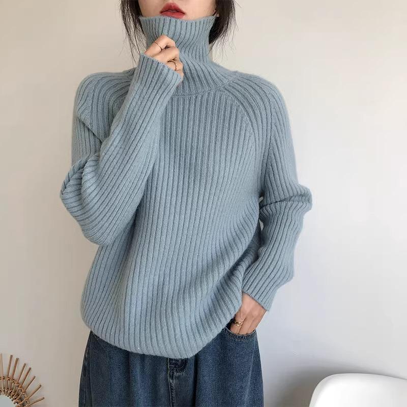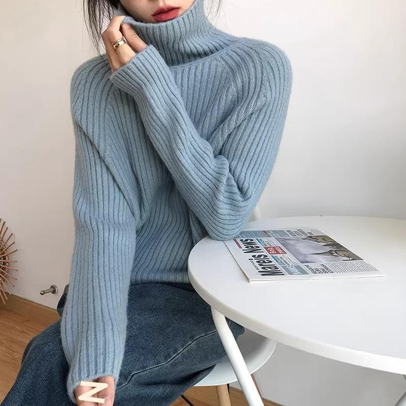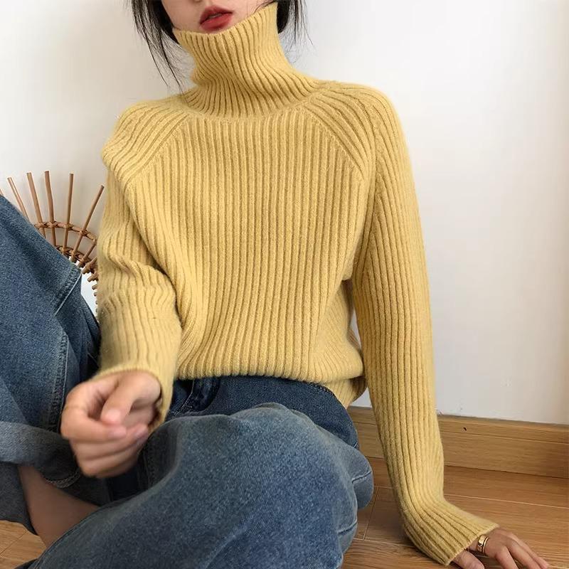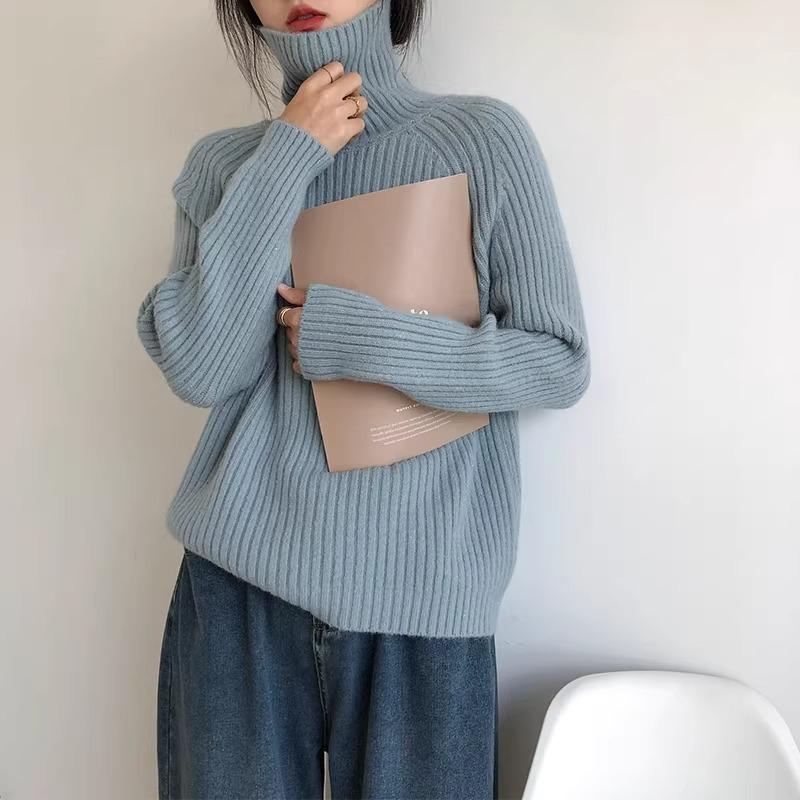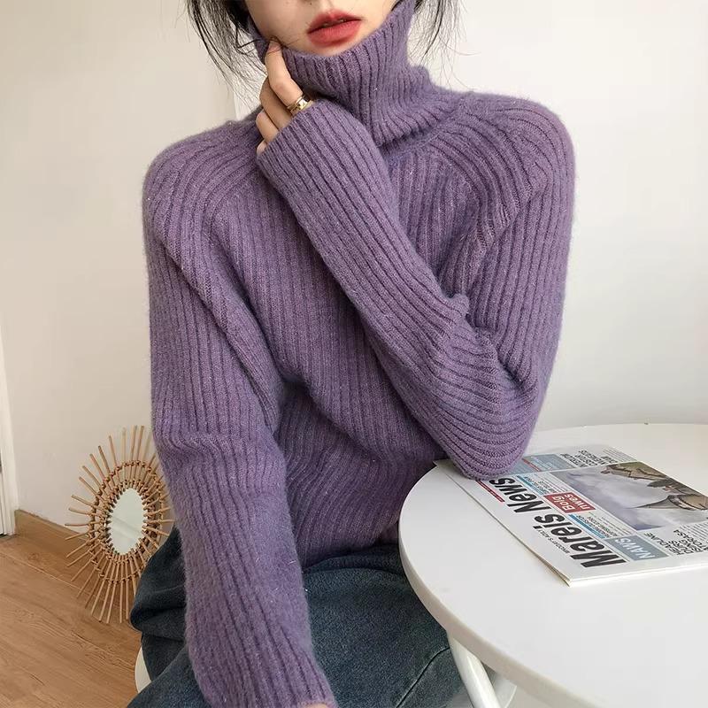 Suéter de Cuello Alto Grueso Cálido con Brillo Fino Estilo Coreano para Mujer Otoño/Invierno Top de Punto Estilo Suave y Flojo de Alta Gama