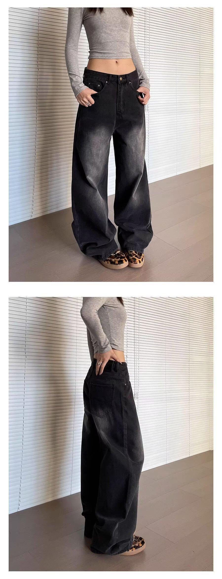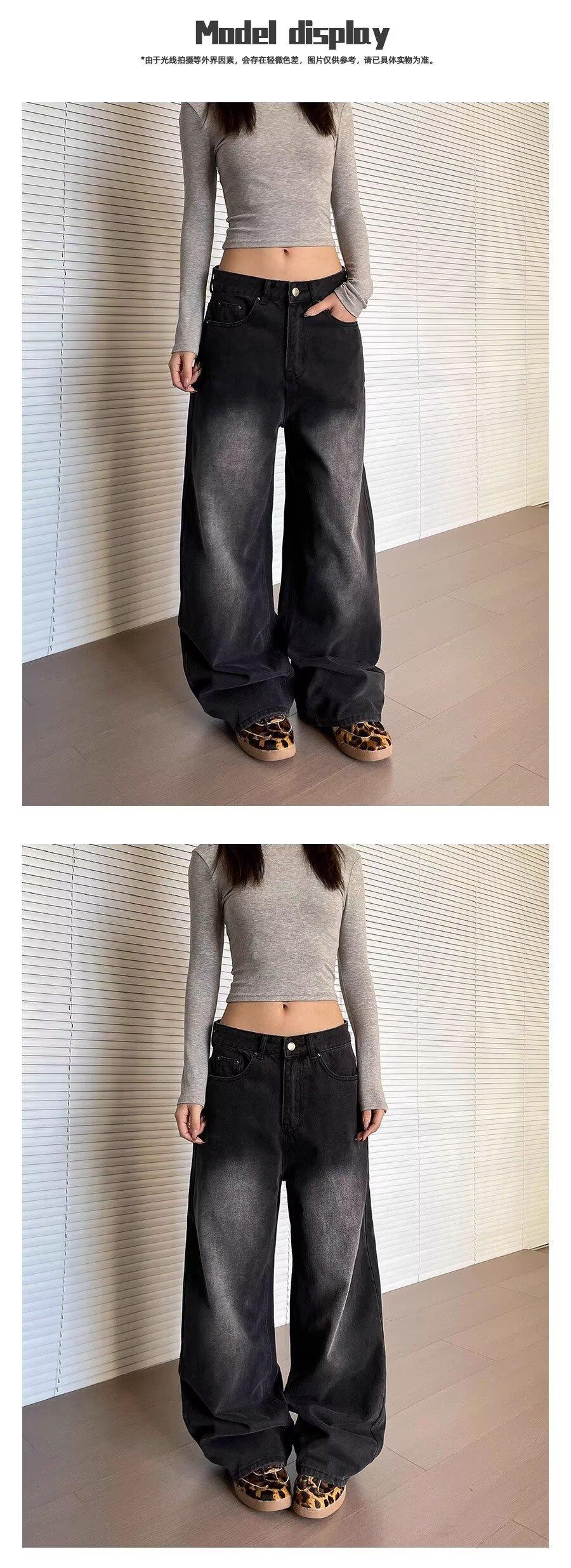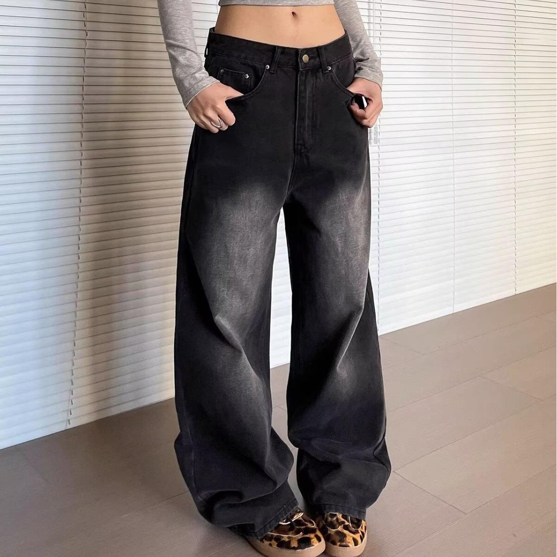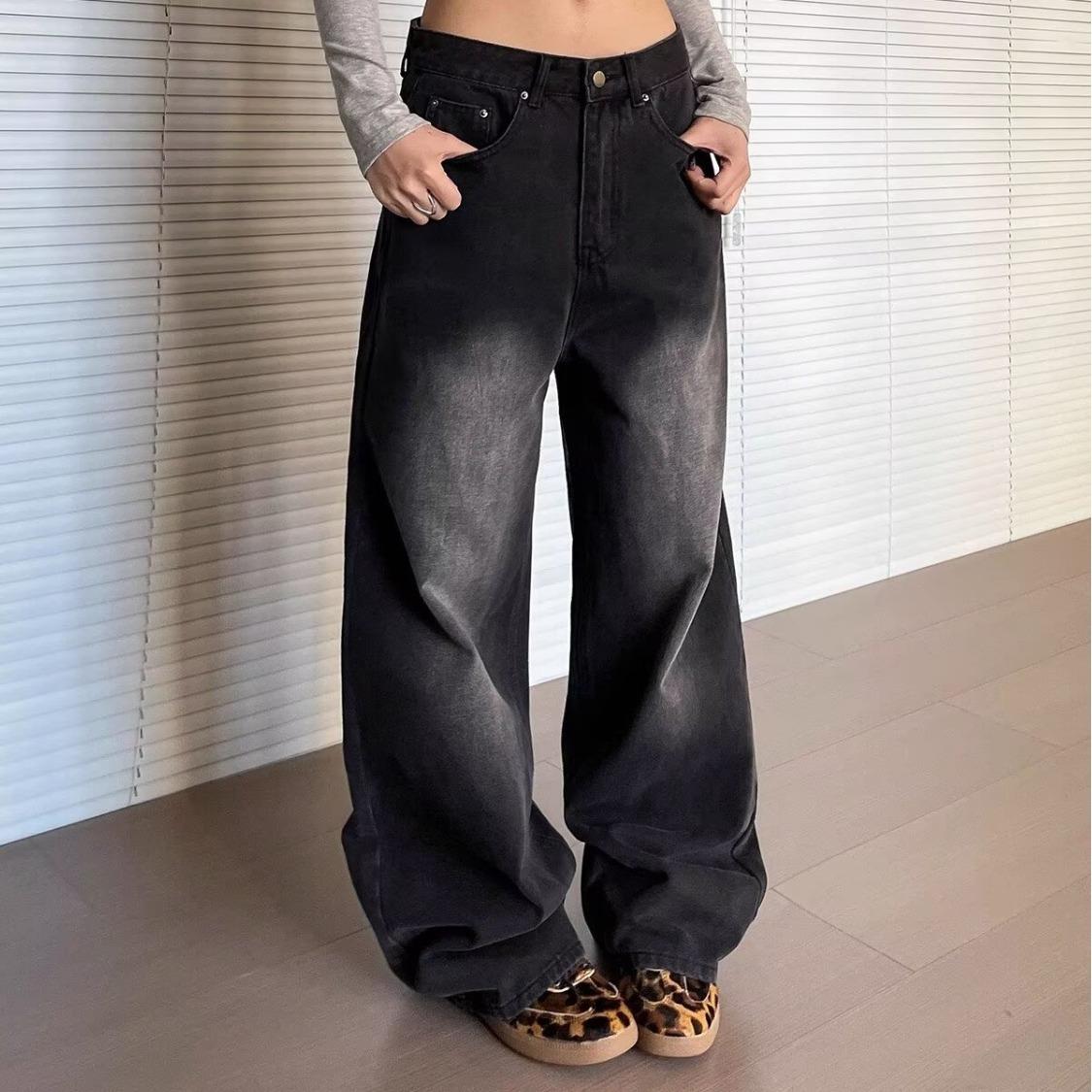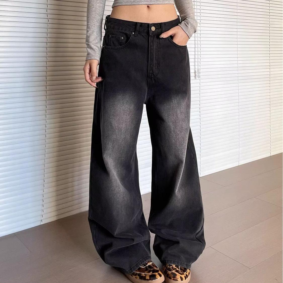 Jeans retro americanos desgastados para mujer versátiles holgados de corte slim de pierna ancha pantalones largos lavados adelgazantes de pierna recta para mujer