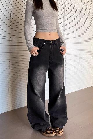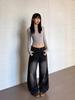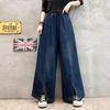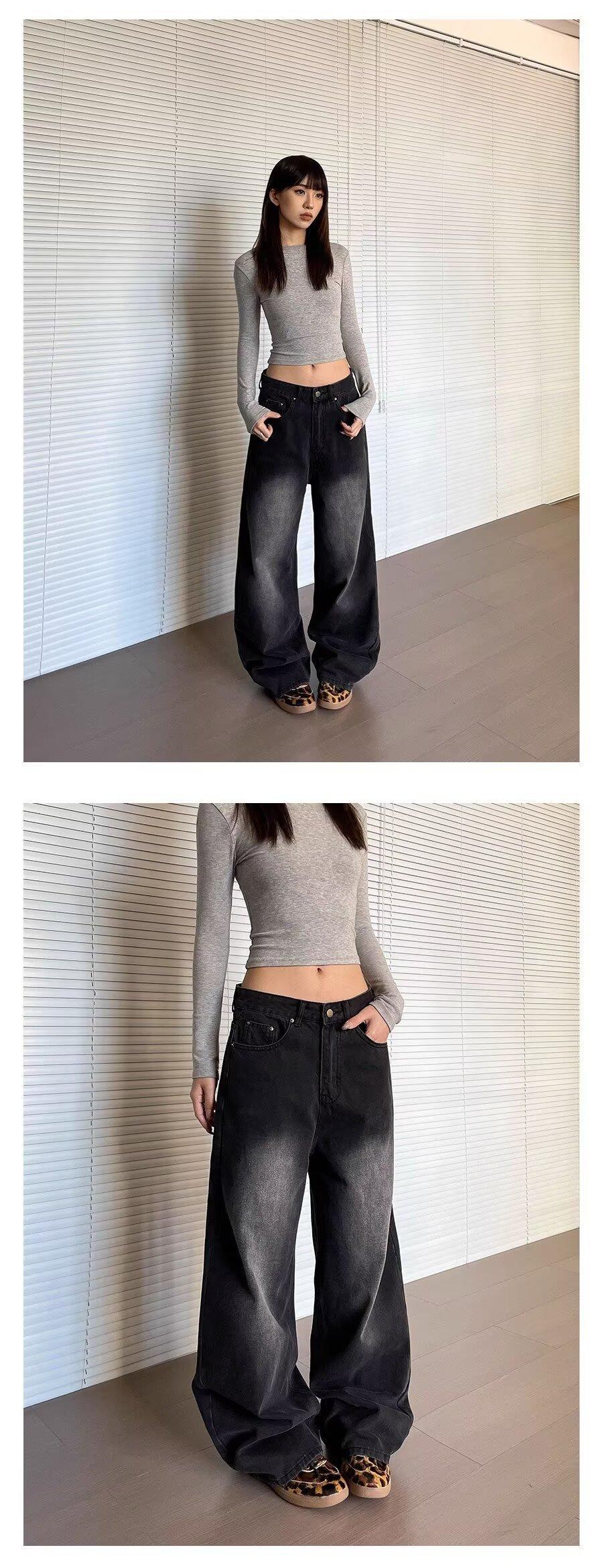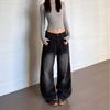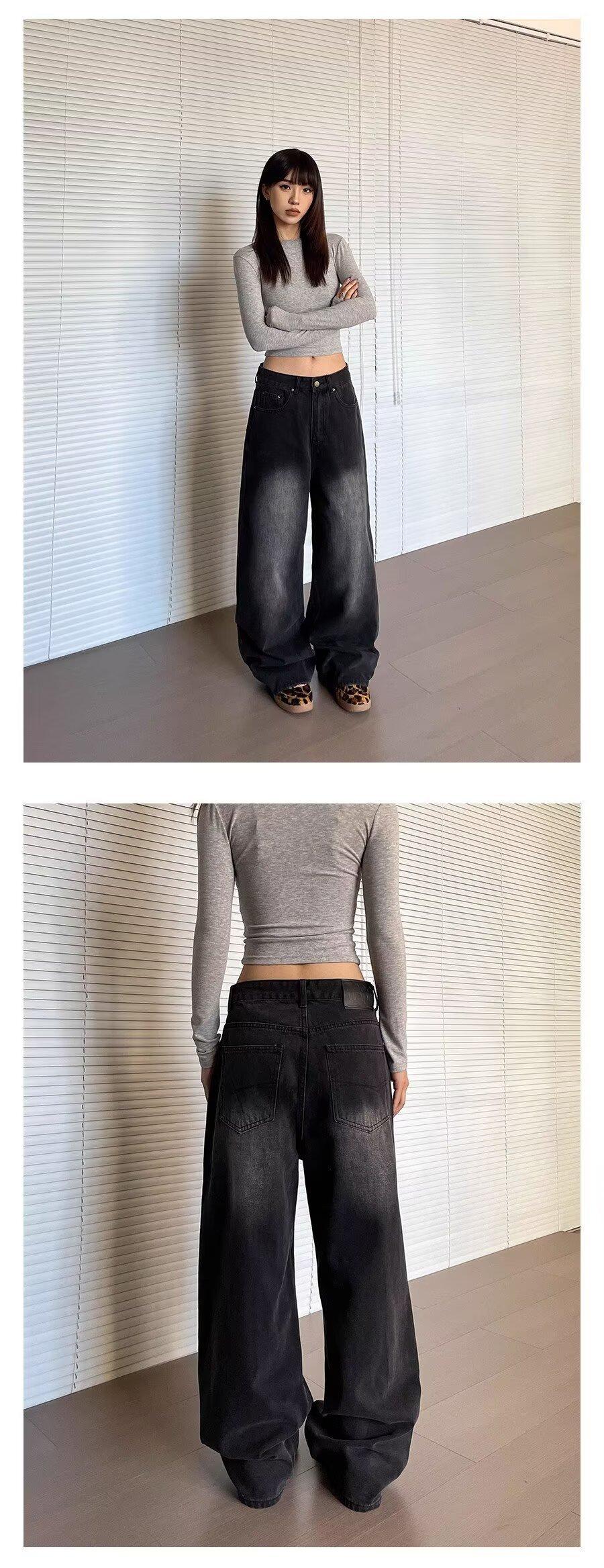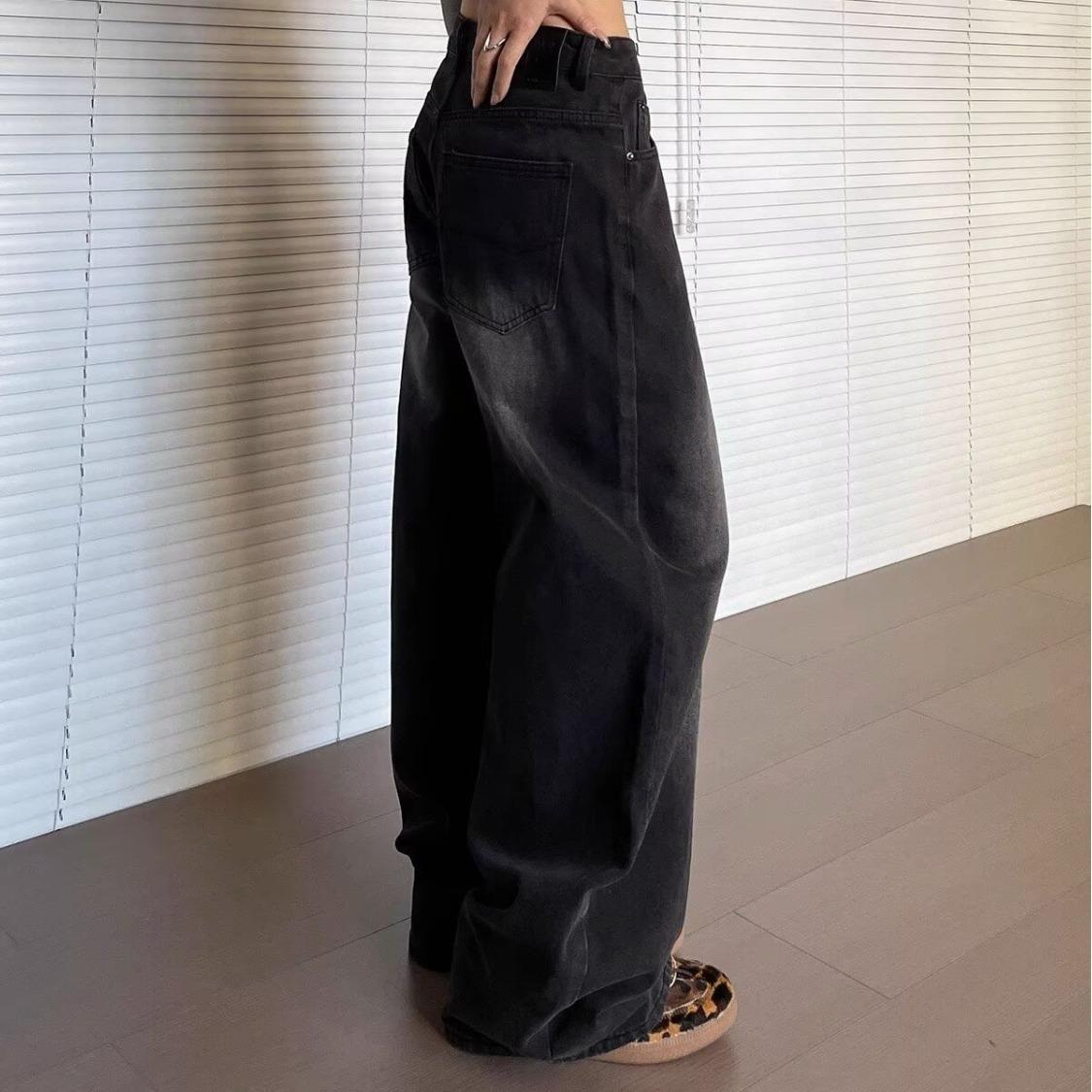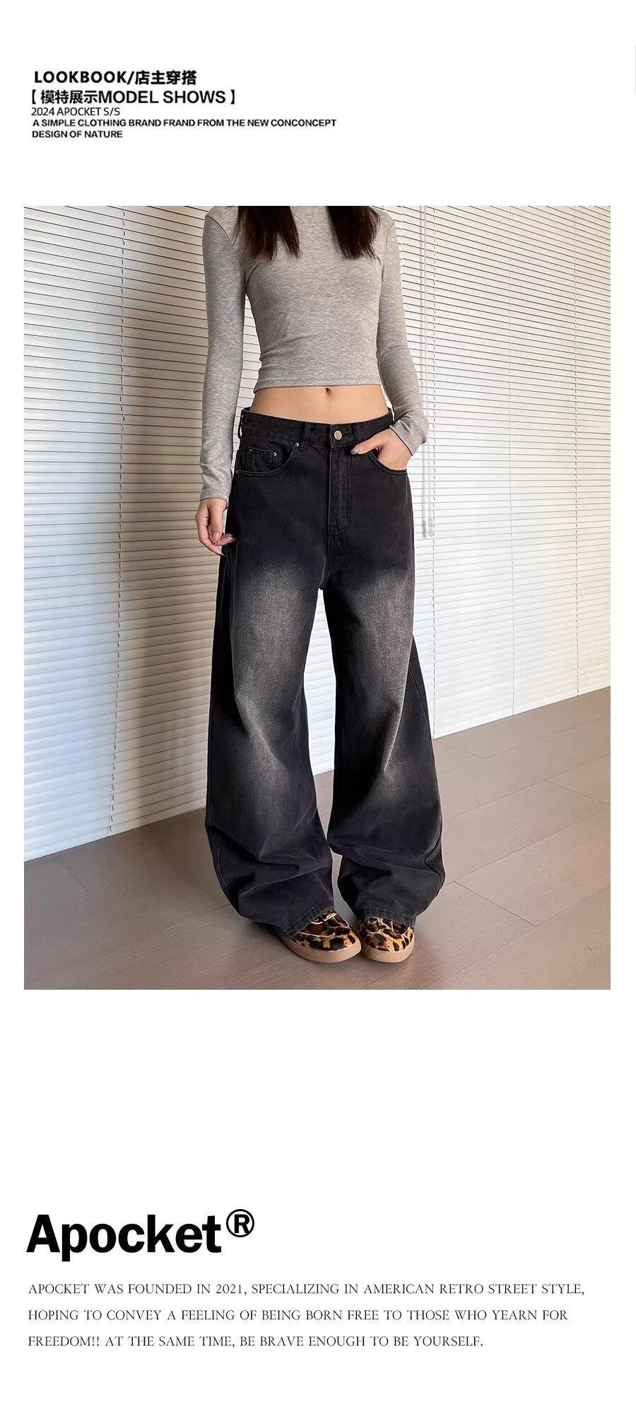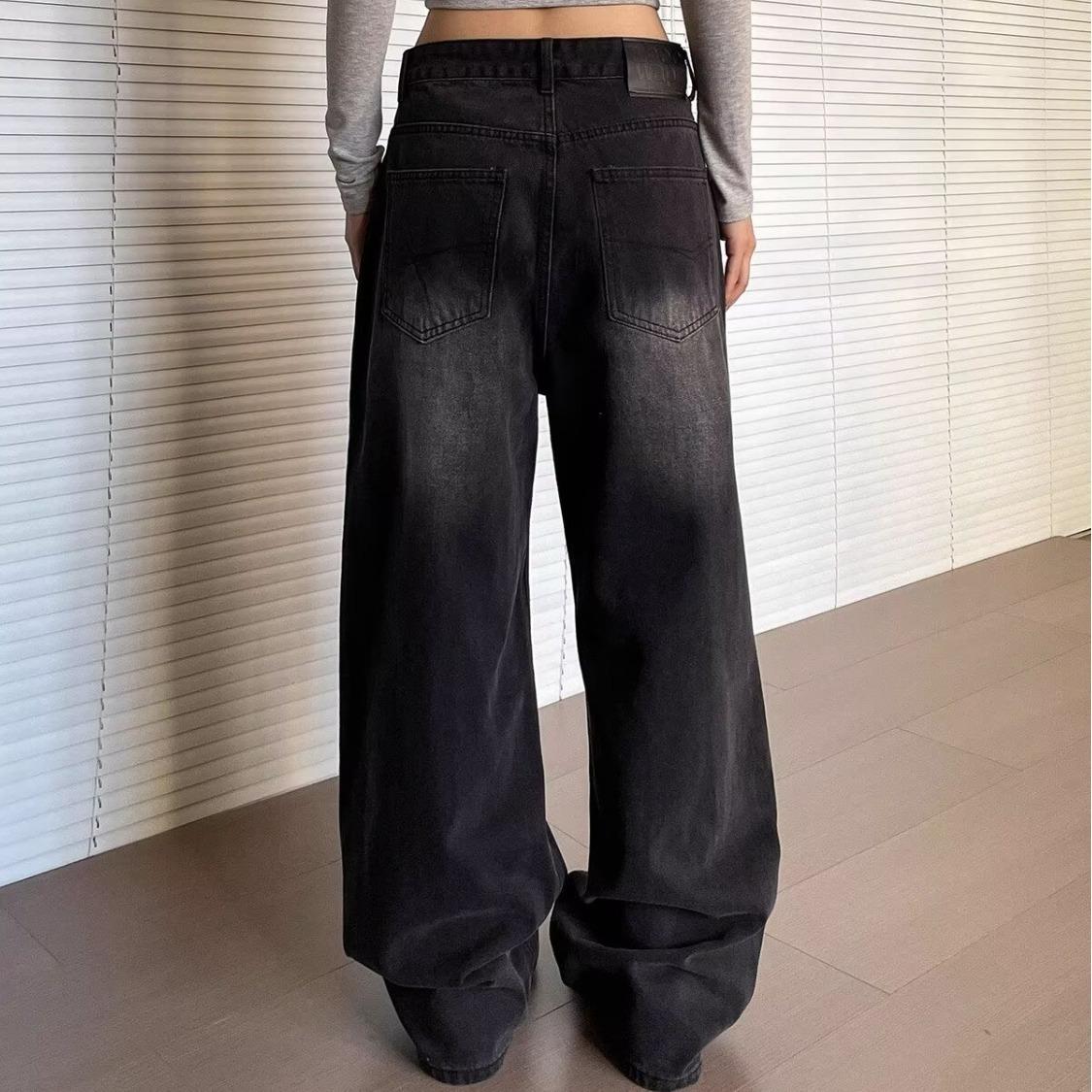 Jeans retro americanos desgastados para mujer versátiles holgados de corte slim de pierna ancha pantalones largos lavados adelgazantes de pierna recta para mujer