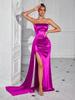 Nuevo Amazon Europeo y Americano Popular Ajustado Top de Tubo Color Puro Vestido de Noche Sexy Un Hombro Descubierto Vestido con Cinta