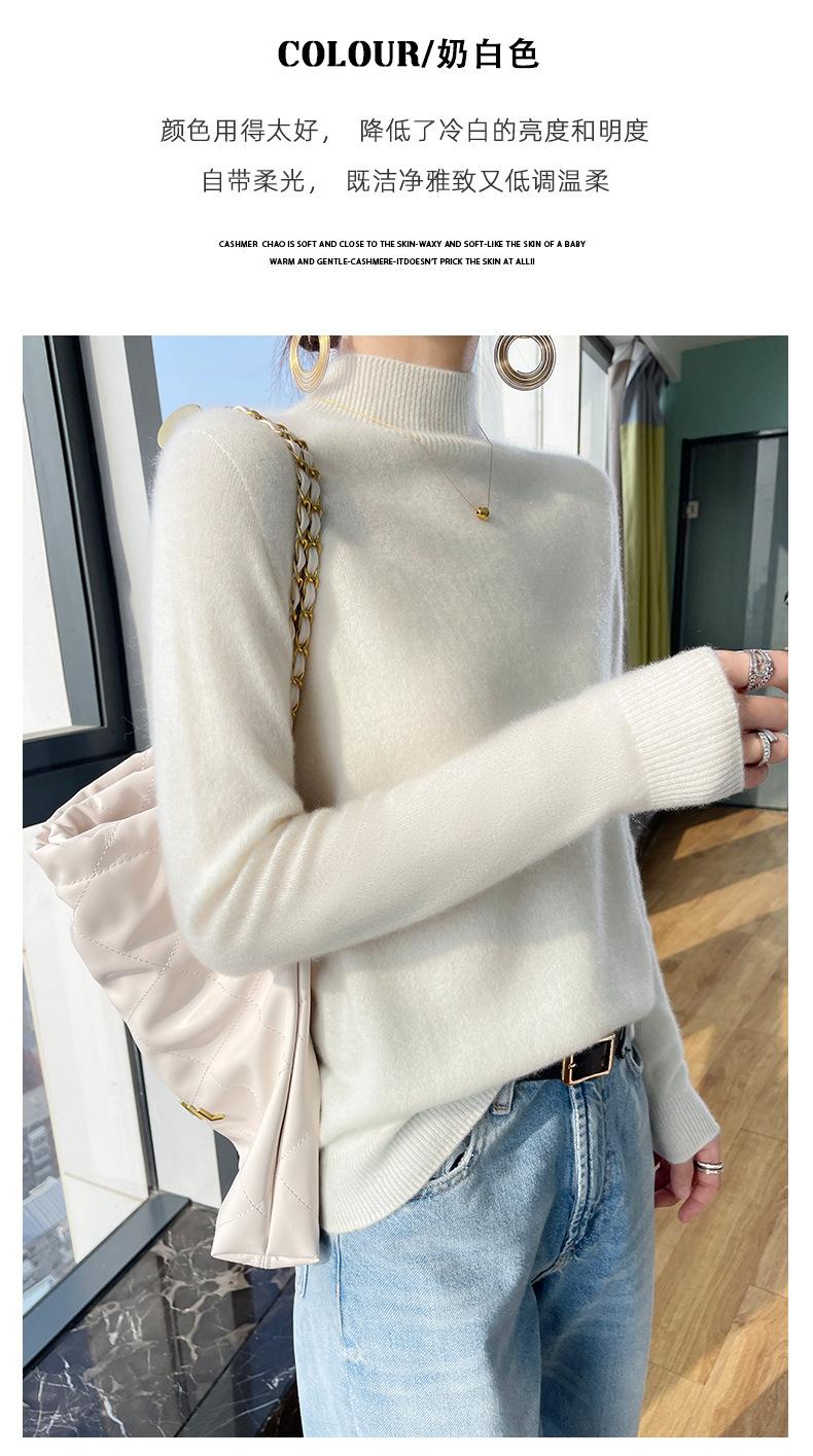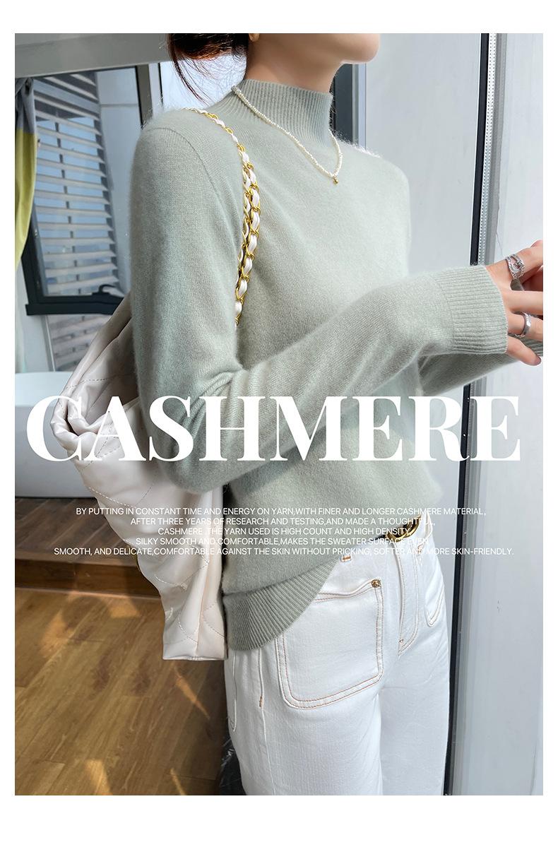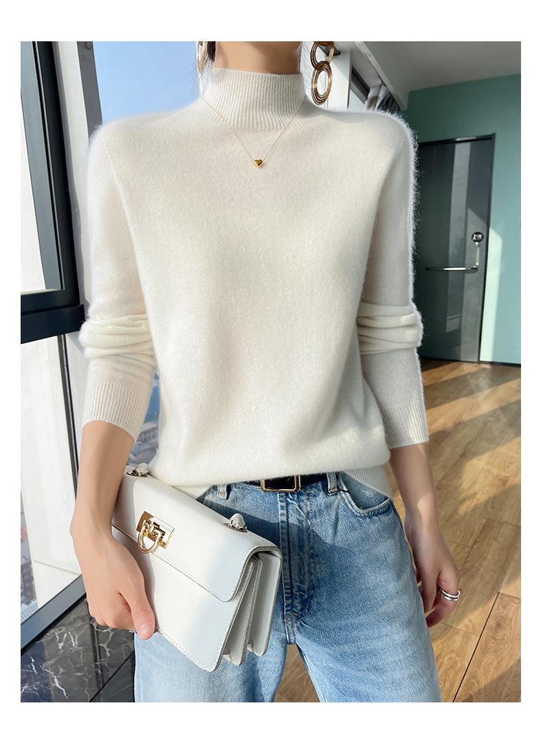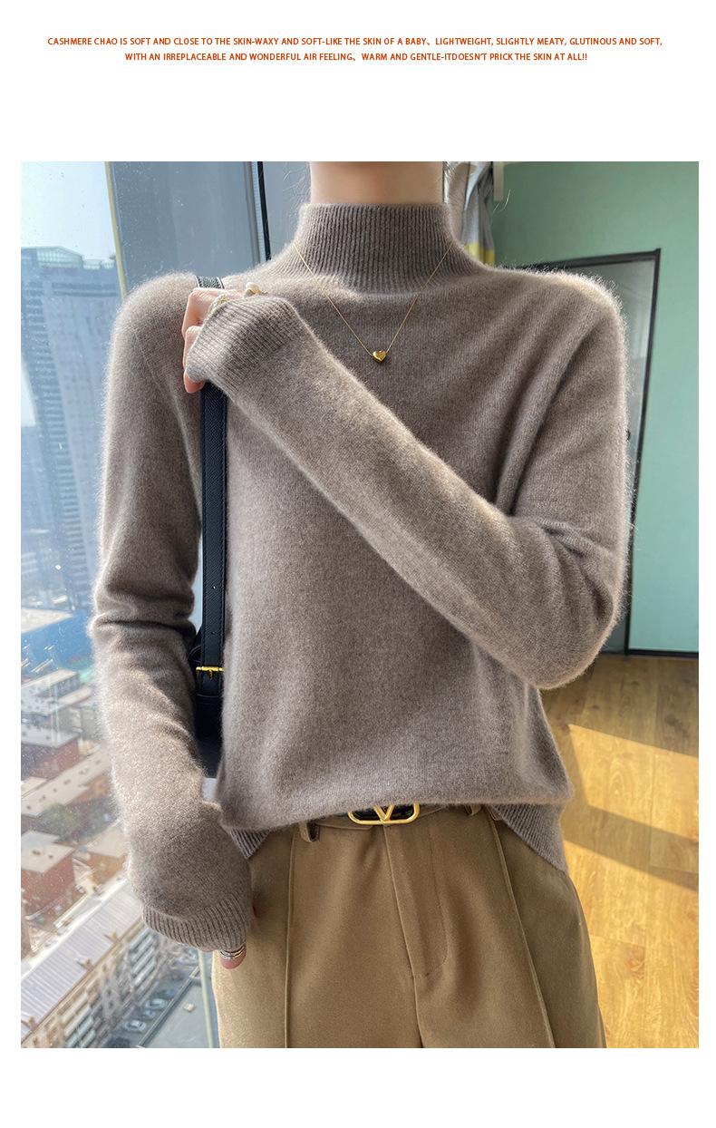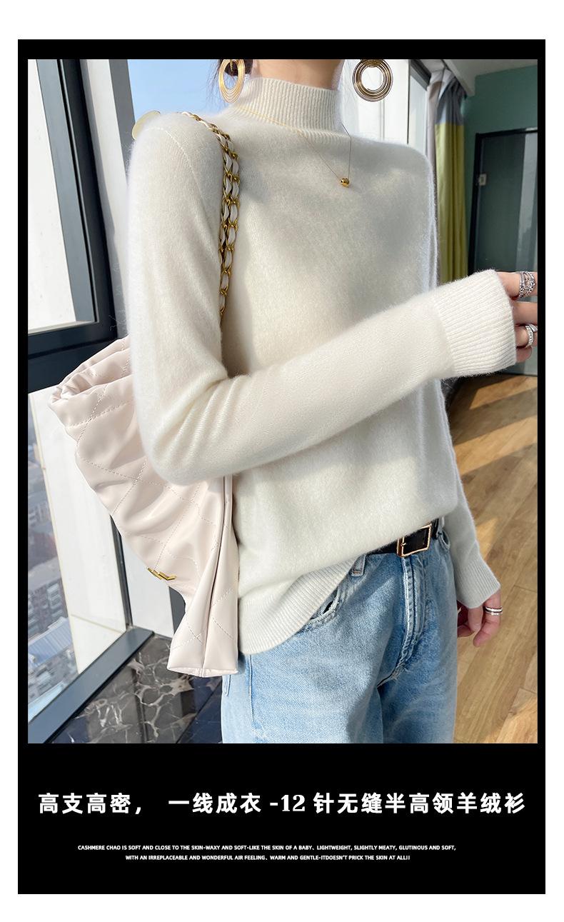 Nueva Capa Base de Punto de Cachemira Otoño/Invierno Moda Desplazamiento Versátil Suave Cómoda Holgada Cuello Semi Alto Manga Larga