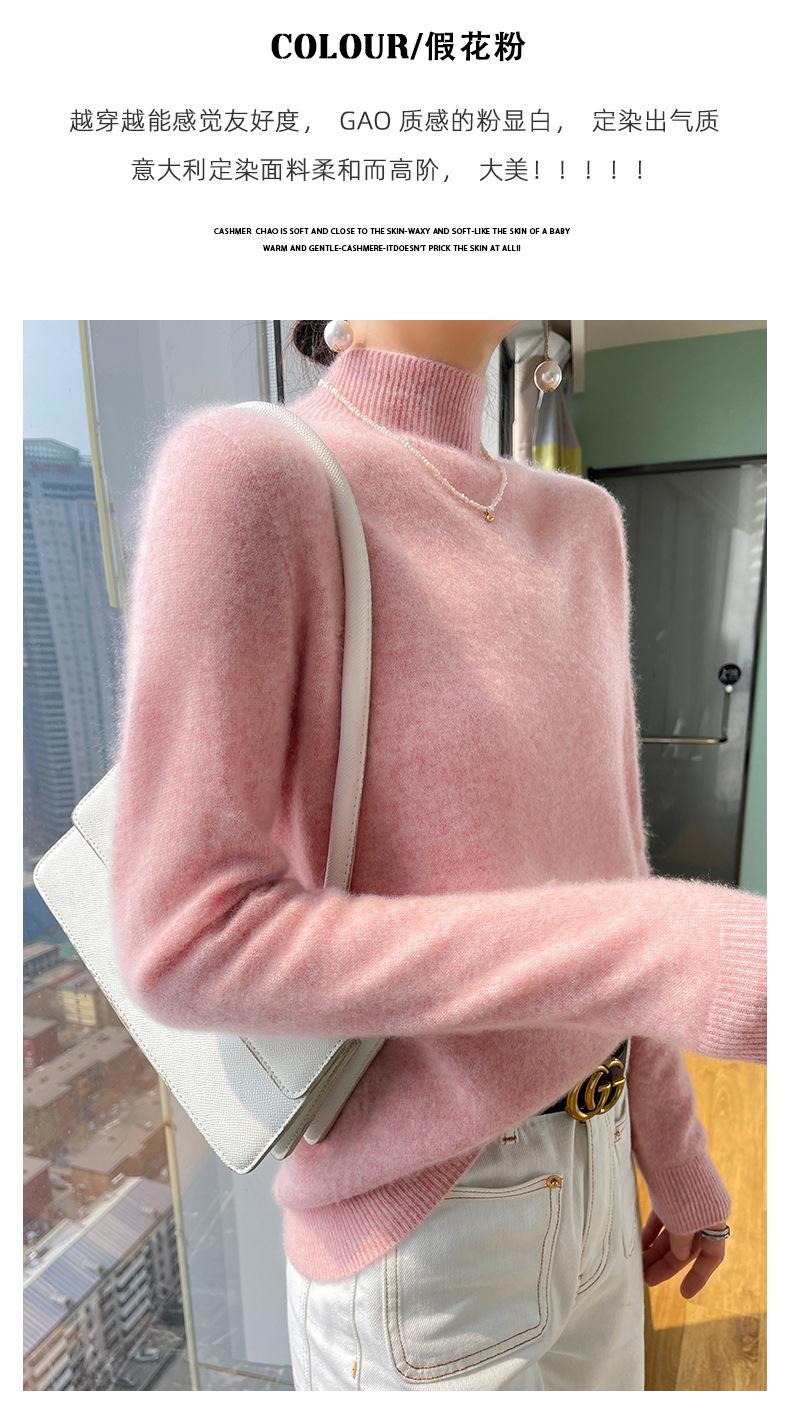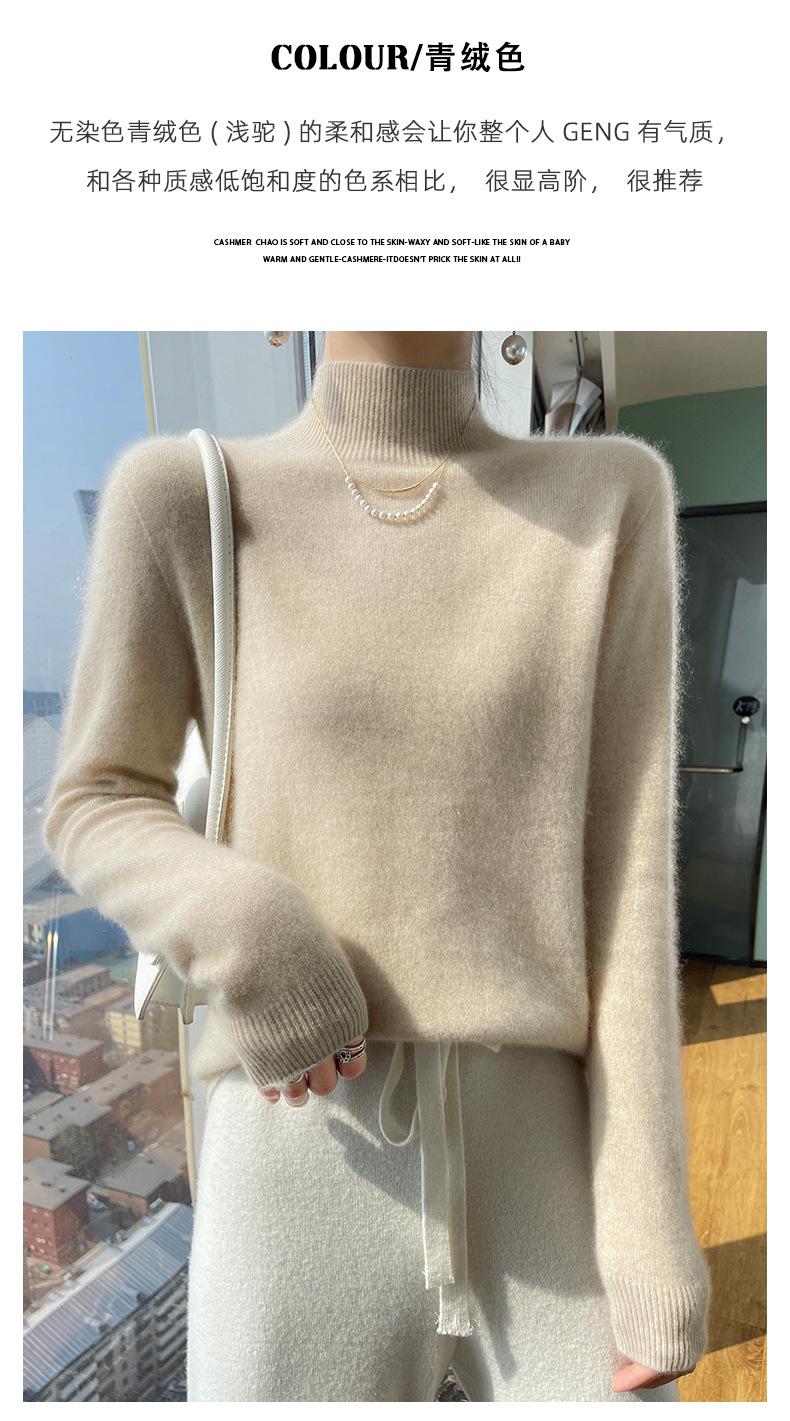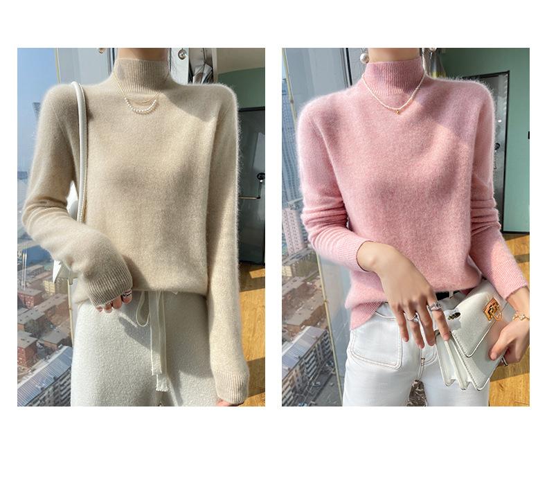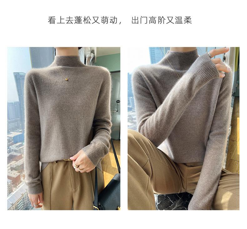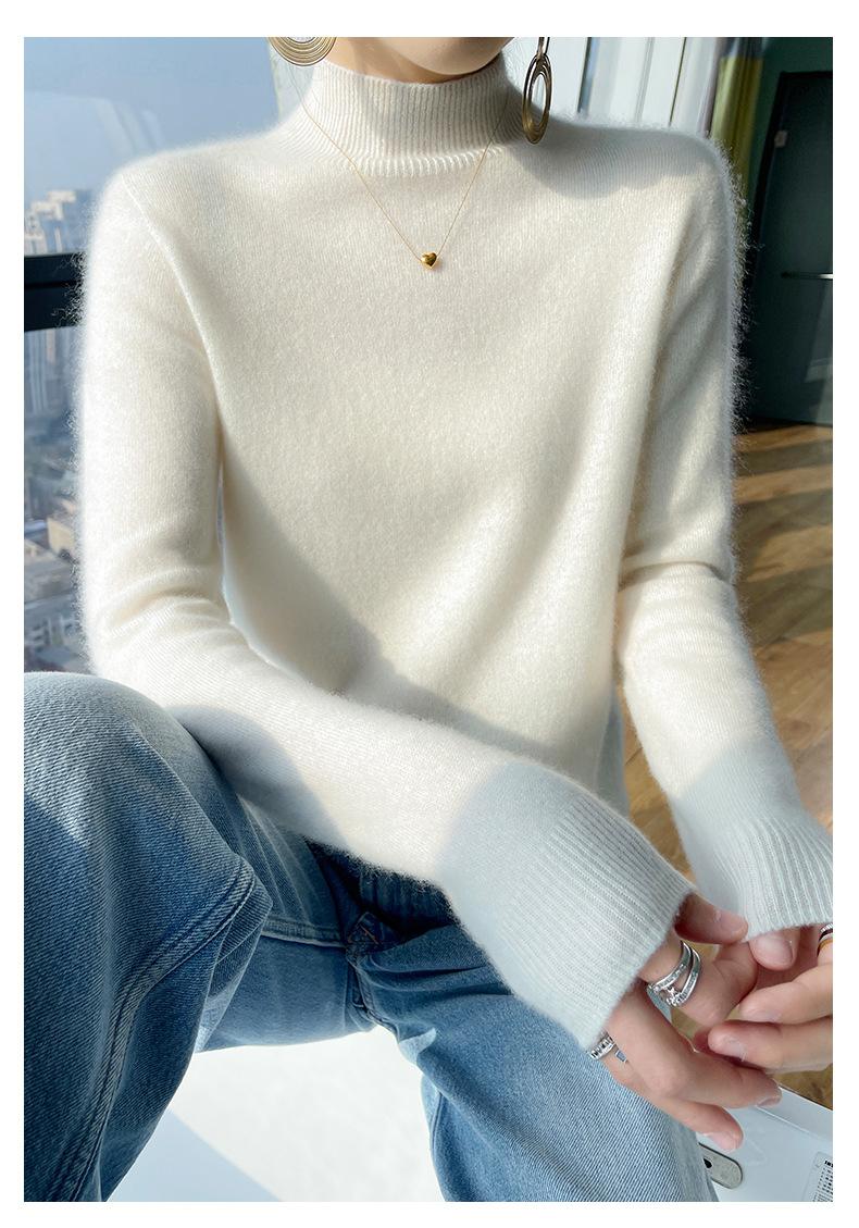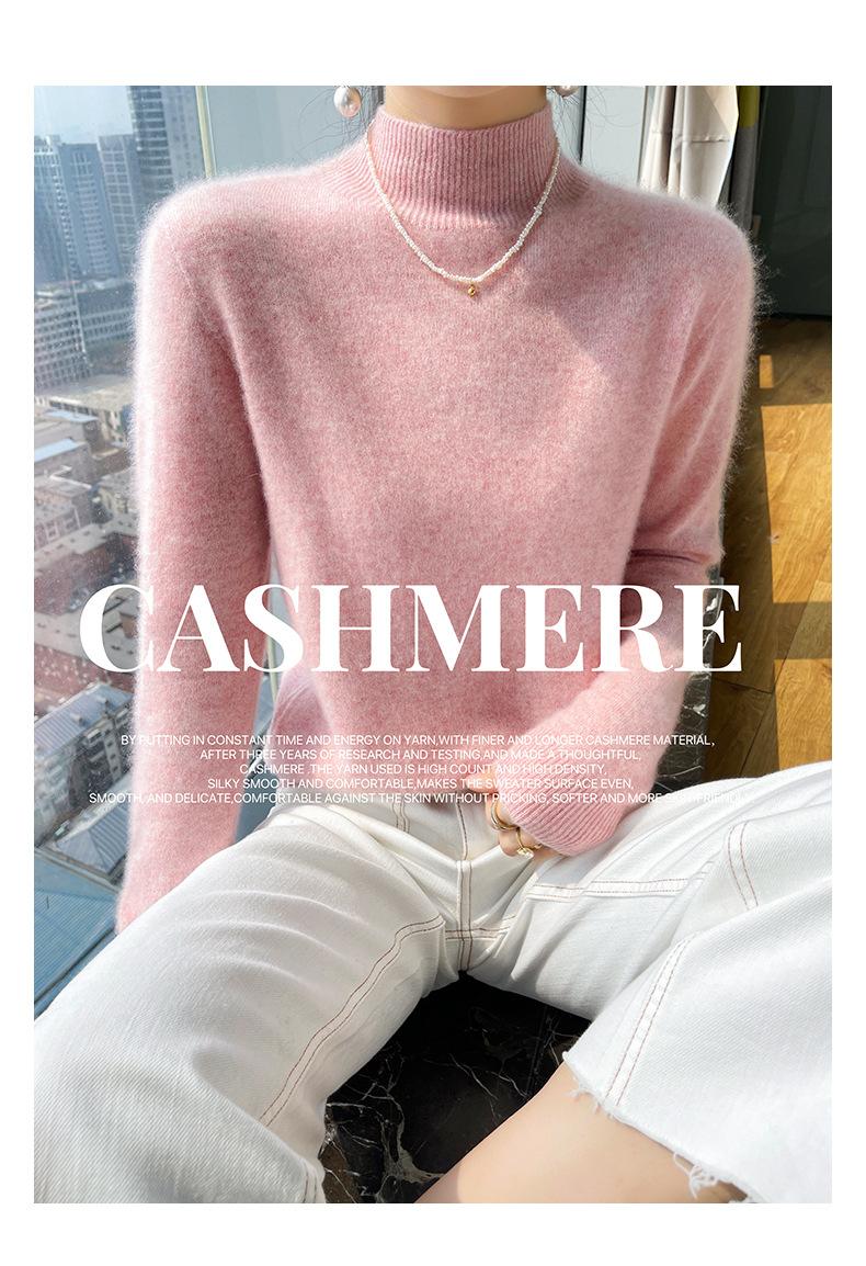 Nueva Capa Base de Punto de Cachemira Otoño/Invierno Moda Desplazamiento Versátil Suave Cómoda Holgada Cuello Semi Alto Manga Larga