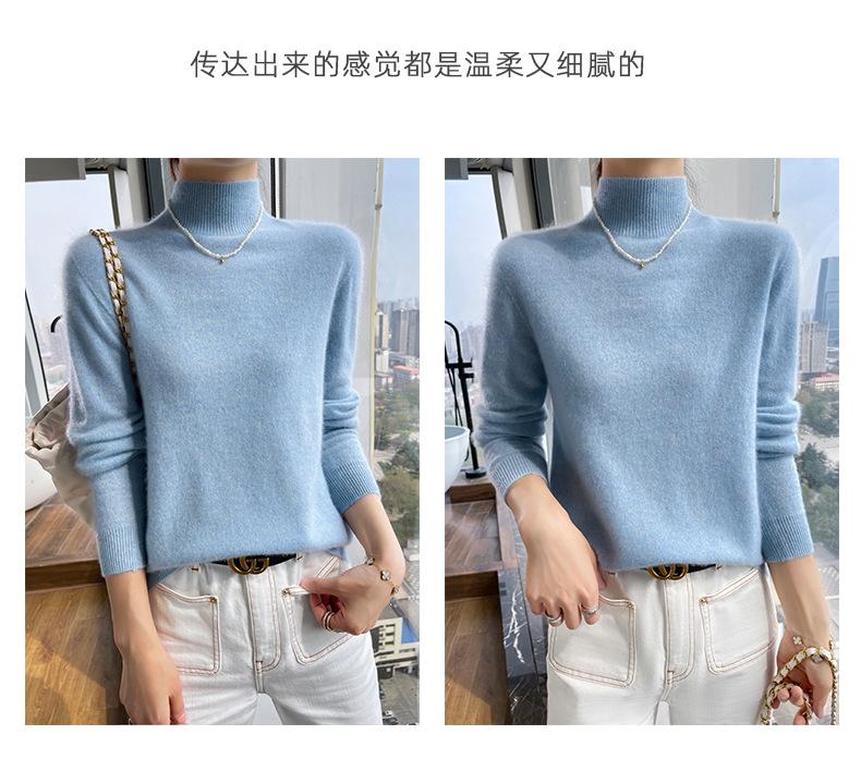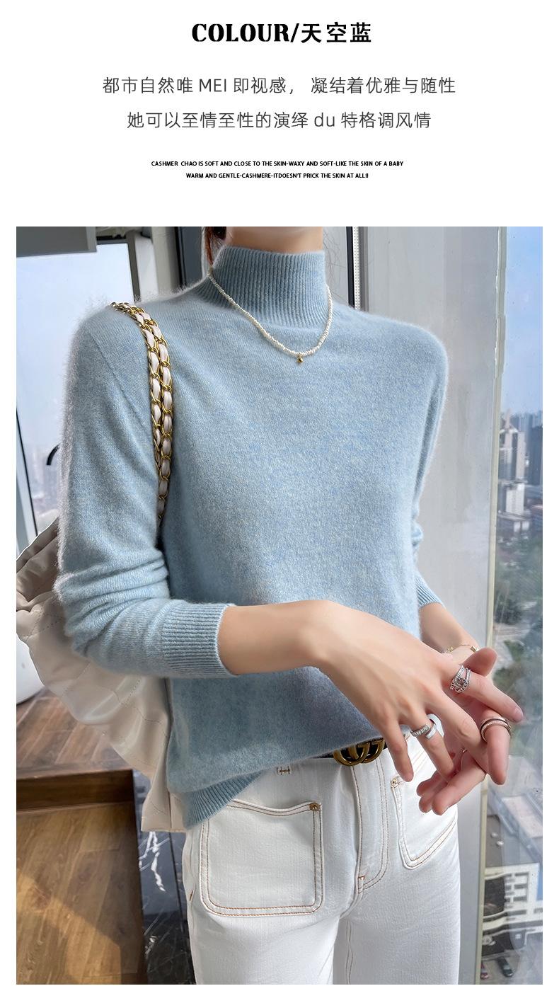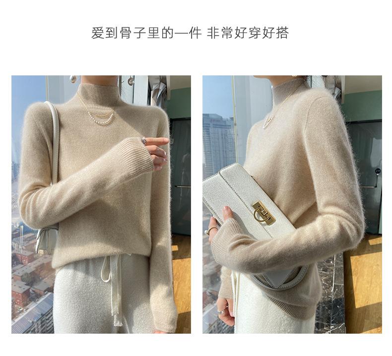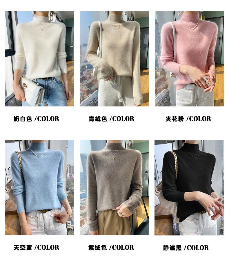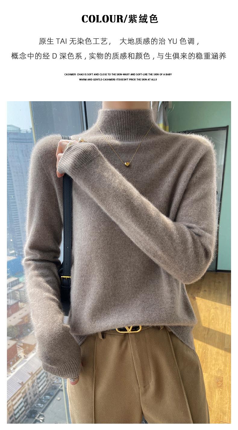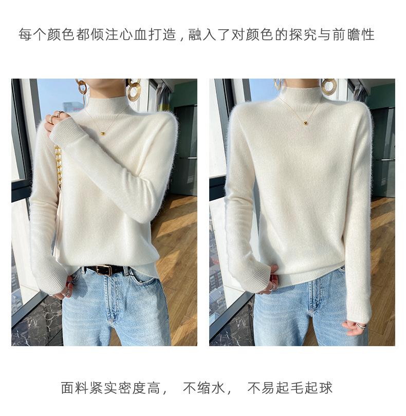Nueva Capa Base de Punto de Cachemira Otoño/Invierno Moda Desplazamiento Versátil Suave Cómoda Holgada Cuello Semi Alto Manga Larga