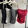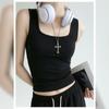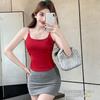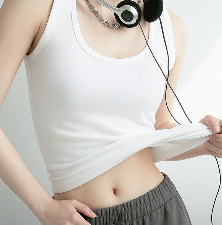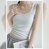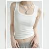 Camisola de Cuello Cuadrado para Mujer Verano Blanco Chica Picante Algodón de Hombro Ancho Anti-Luz Ropa Exterior Base Top Corto