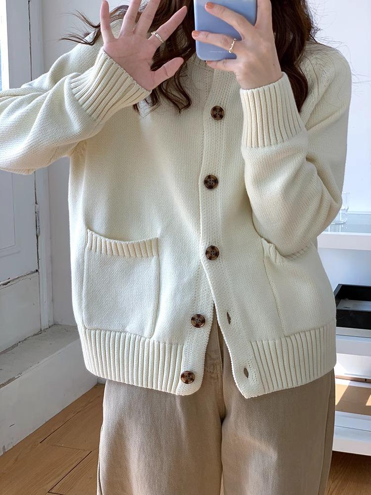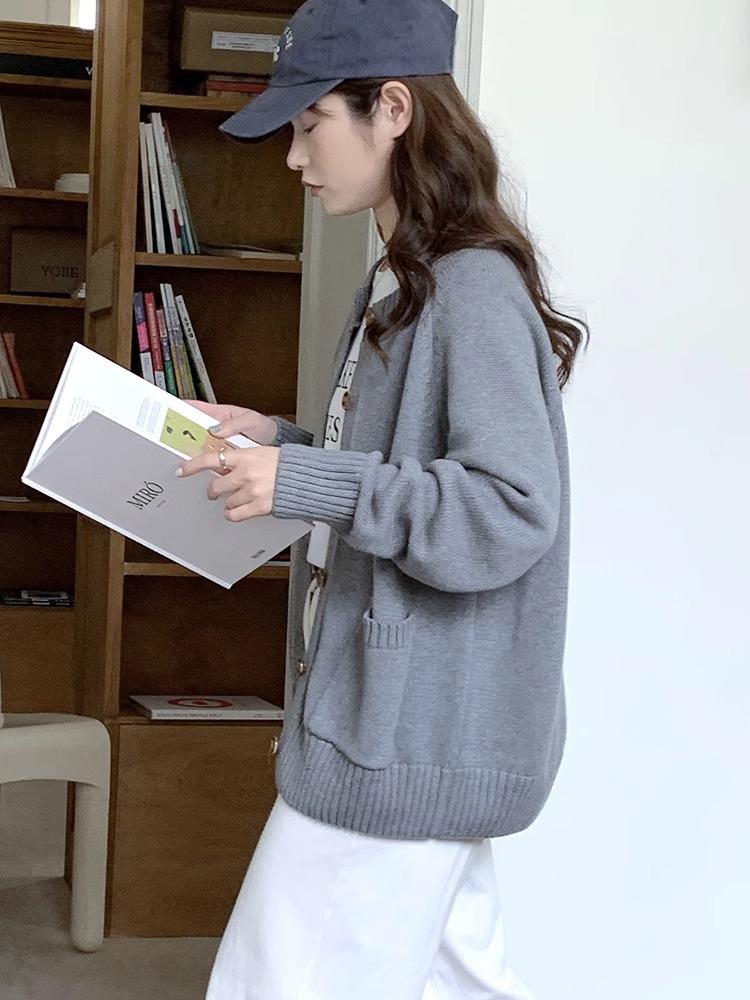 Cárdigan Suéter para Mujer Chaqueta 2025 Nuevo Otoño Ropa Exterior Top de Punto Suéter Holgado Chaqueta Pequeña con Bolsillos
