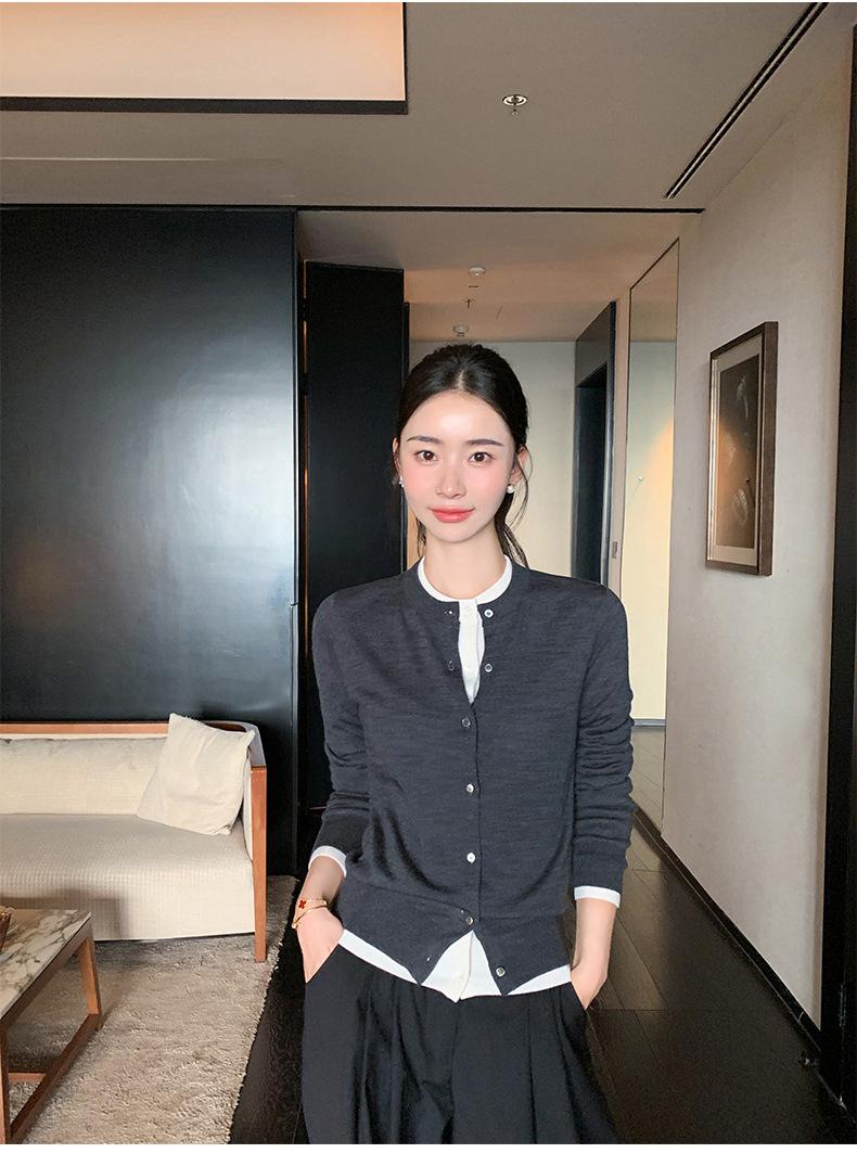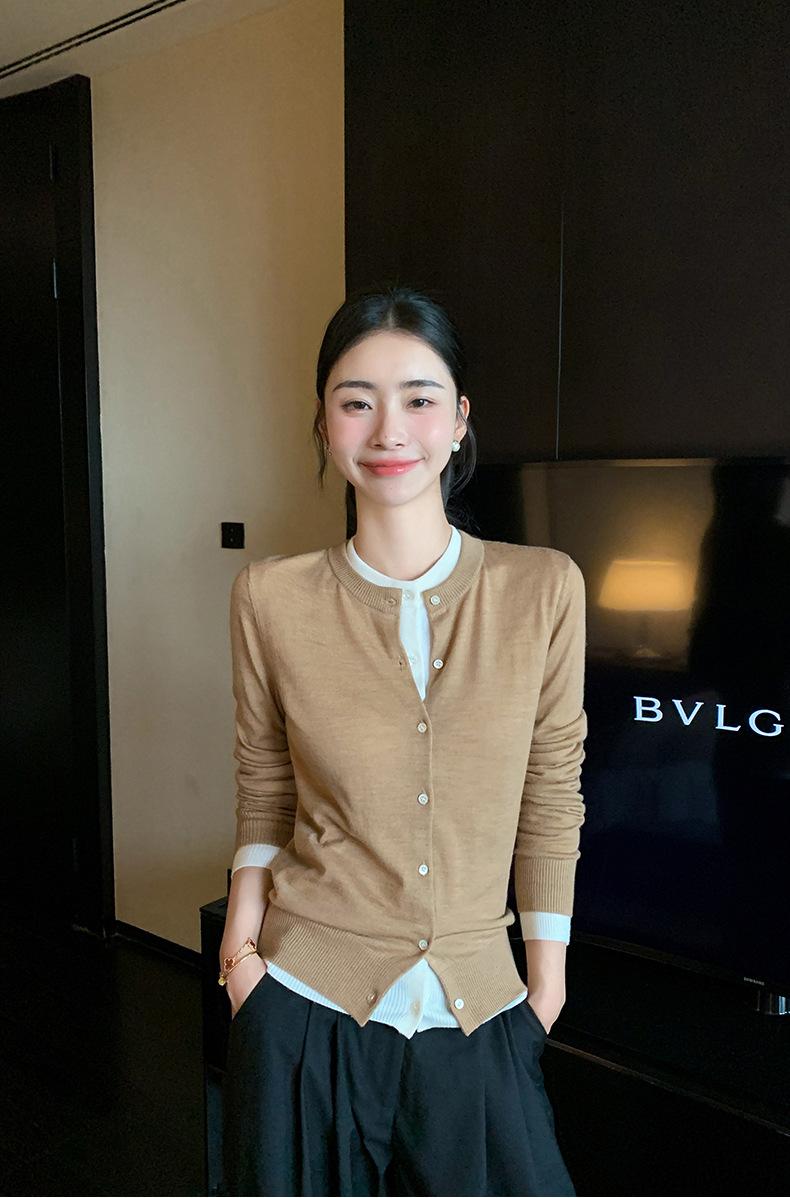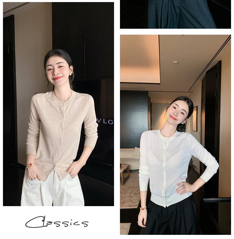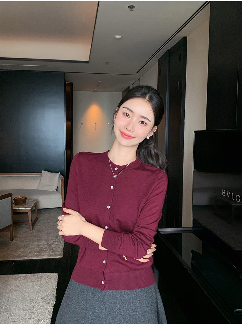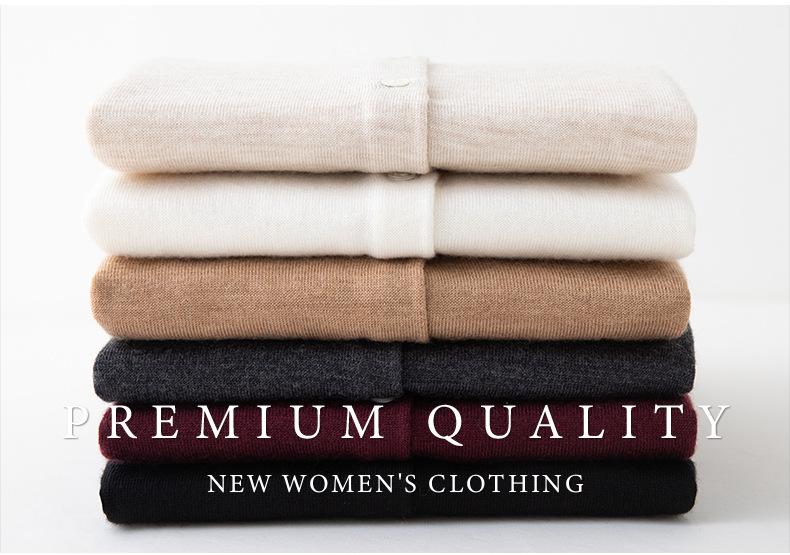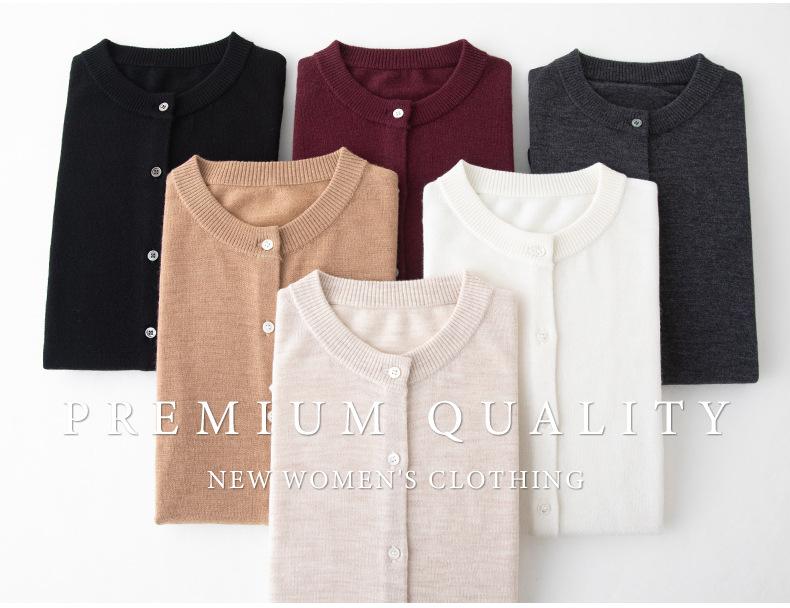 Cárdigan de Lana para Mujer 100% Lana Pura Hilo Alemán Yangtze Color Sólido Cuello Redondo Sencillo Abrigo Suéter Tejido